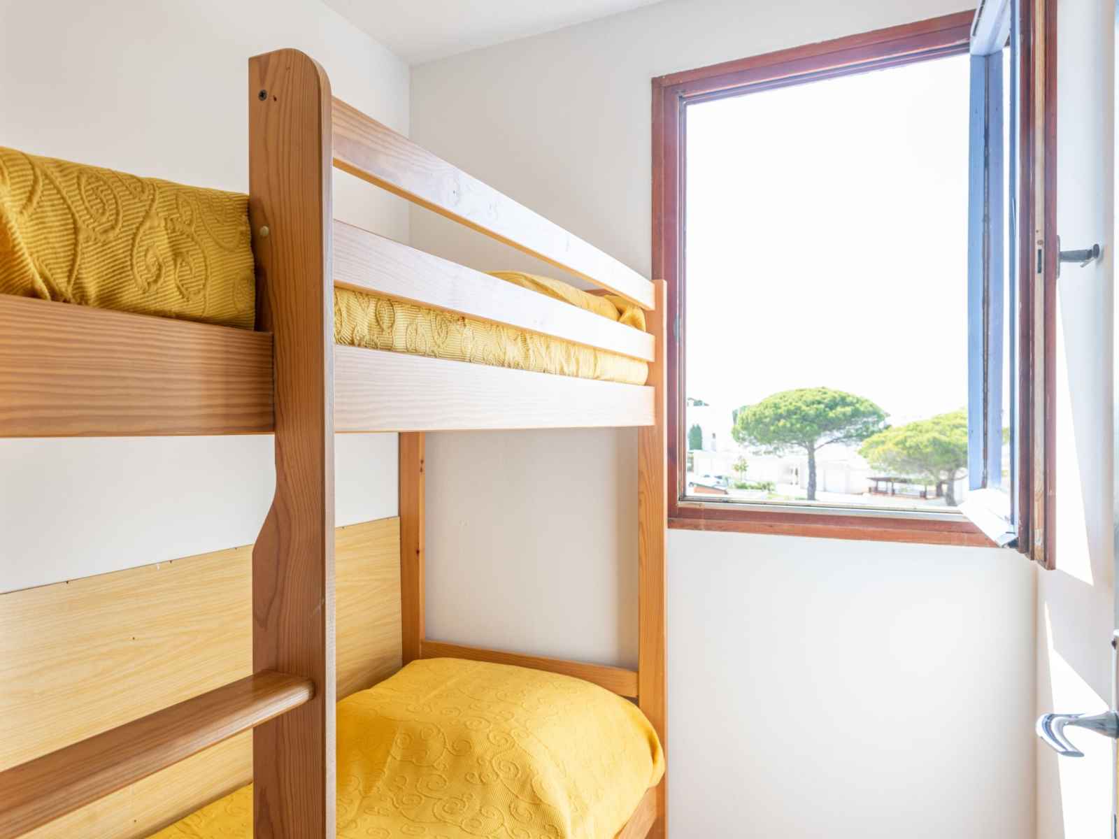Apt 2 pièces 45 m2 au 2ème étage. séjour/salle à manger avec 1 divan-lit double (140 cm, longueur 180 cm). 1 chambre avec 1 grand-lit (140 cm, longueur 190 cm). cabine avec 1 x 2 lits superposés (70 cm, longueur 180 cm). coin cuisine (4 plaques de cuisson, mini-four, lave-vaisselle, micro-ondes, congélateur). salle de bains, wc séparé.