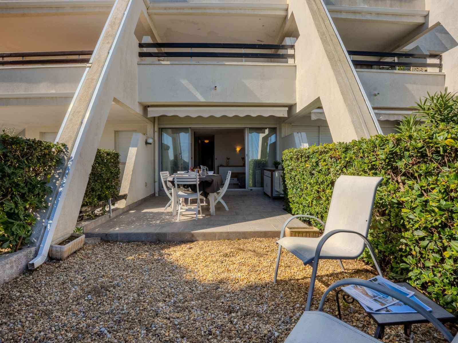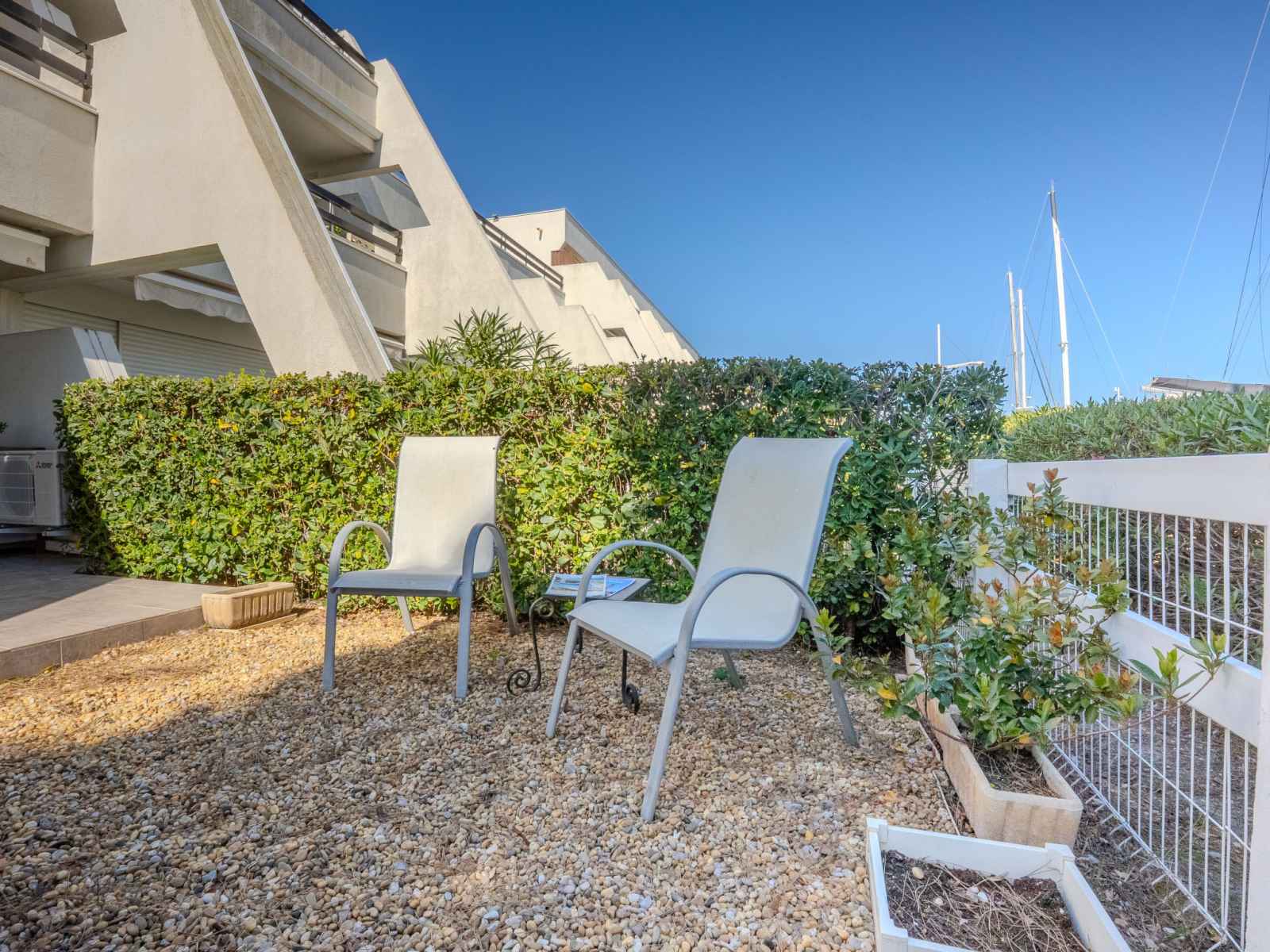 magasins, magasin d'alimentation, supermarché, centre commercial, restaurant 400 m, arrêt de bus "quai aux fleurs" 1.2 km, gare ferroviaire 4 km, plage de sable 50 m, centre thermal "thalazur les bains de camargue" 10 m. attractions à proximité: casino flamingo 2.5 km, seaquarium 2.5 km, les arènes du grau du roi 8 km, aigues-mortes 13 km, la grande-motte 37 km, nîmes 52 km. région de randonnées: réserve naturelle de camargue. veuillez noter: la remise des clés a lieu à l’agence port camargue. aéroport 25 km de la maison.