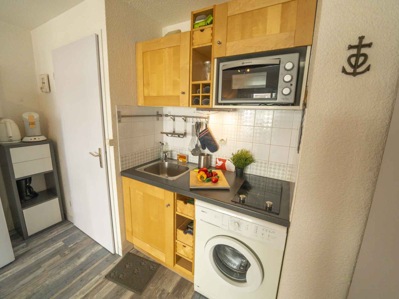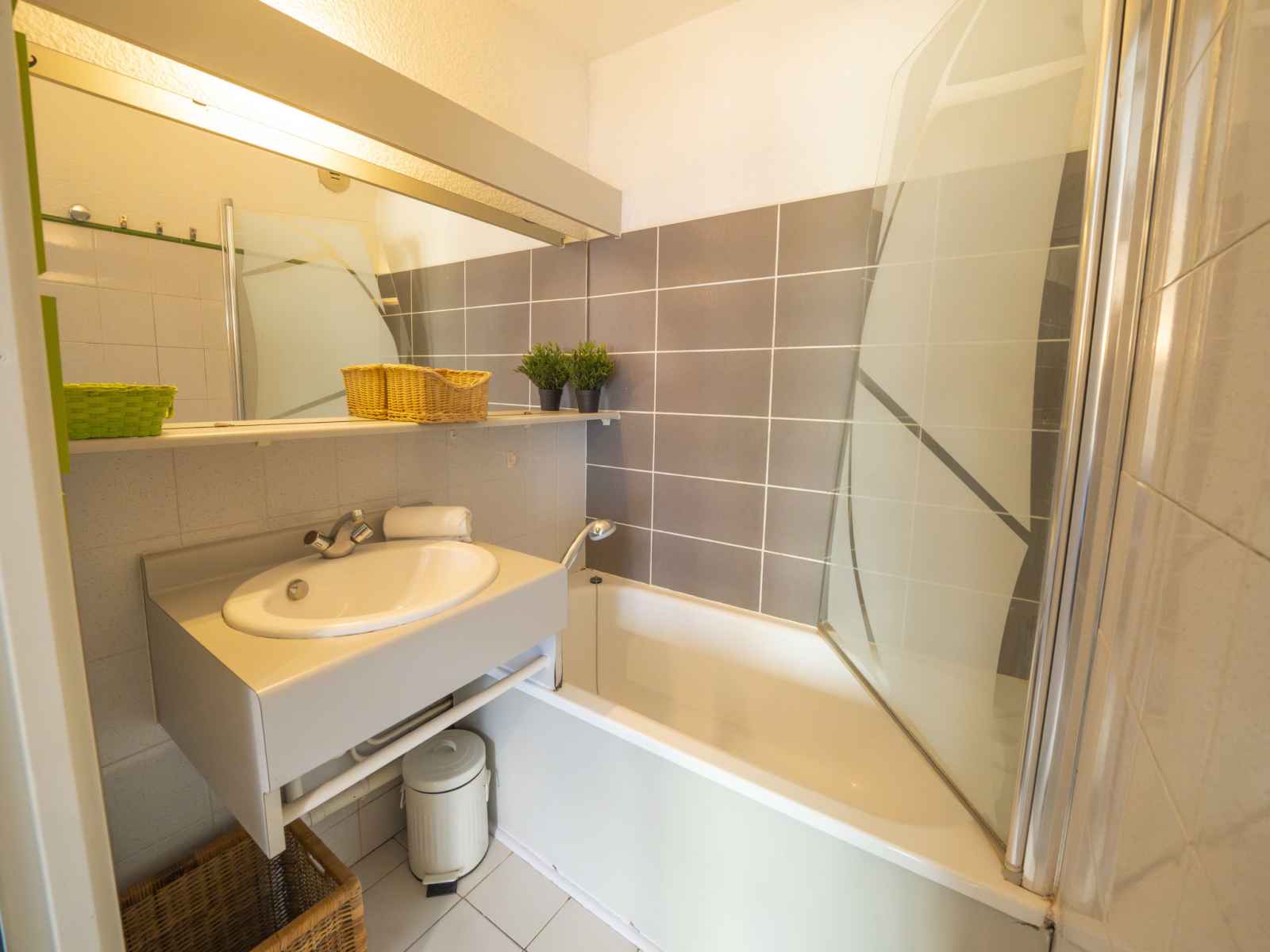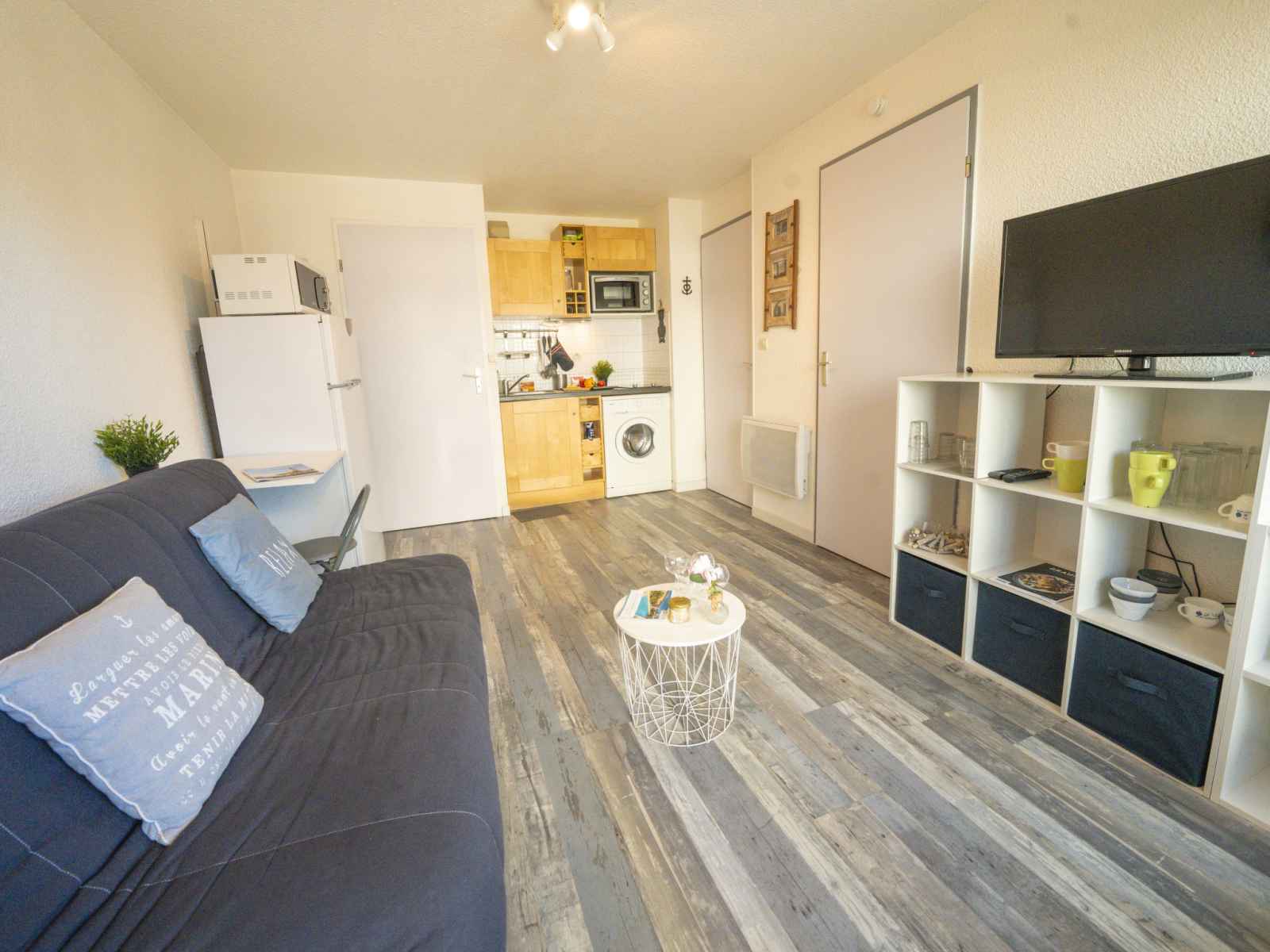 "les terrasses du lac", apt 2 pièces 28 m2 au 1er étage, situation nord-est. logement idéal pour 2 adultes + 2 enfants. clair, aménagement agréable: séjour/salle à manger avec coin-cuisine, bain/wc, wc séparés et tv (écran plat), radiateur électrique et ventilateur. sortie sur le balcon. 1 petite chambre 10 m2 avec 1 lit (140 cm,