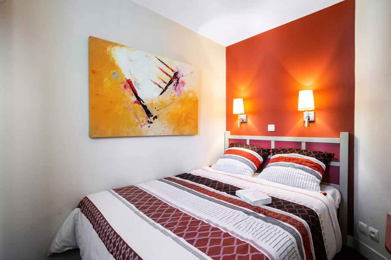 Composition de la chambre (avec climatiseur mobile) : lit double.