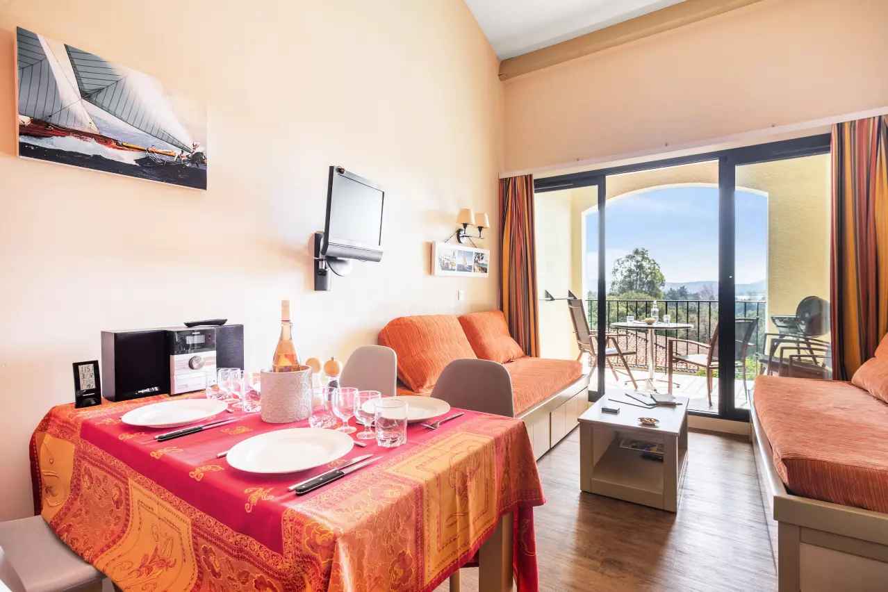 • A noter : Parking, Piscine commune, Vue village, Aire de jeux pour enfants Situé au sein de la résidence (toboggans, maisonette, balanciers...) - inclus., Kit d'entretien Inclus - contenu peut varier selon les résidences : éponge, lavette, flacon de produit multi-usages, flacon de produit liquide vaisselle main, tablette lave-vaisselle et torchon., Parking Parking découvert gratuit situé au sein de la résidence sous réserve de disponibilité, Piscine Inclus - Piscine extérieure de la résidence (ouverte d'avril à octobre). Horaires d'ouverture :