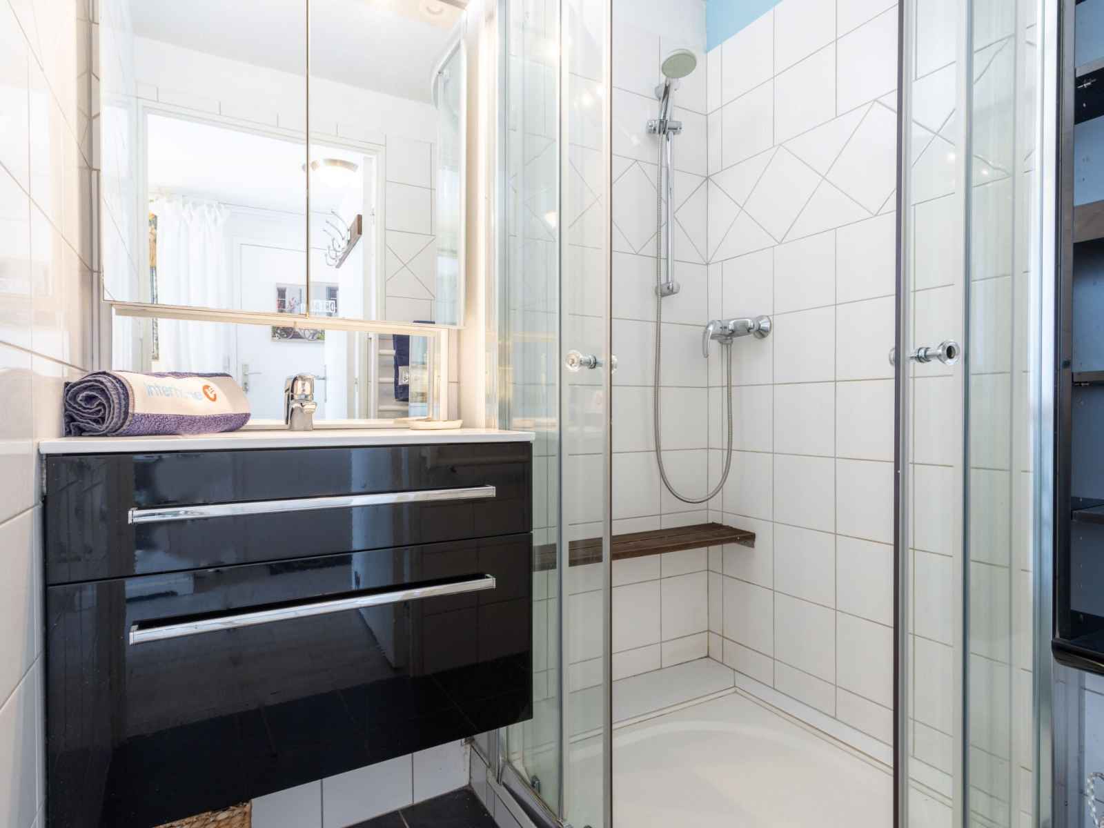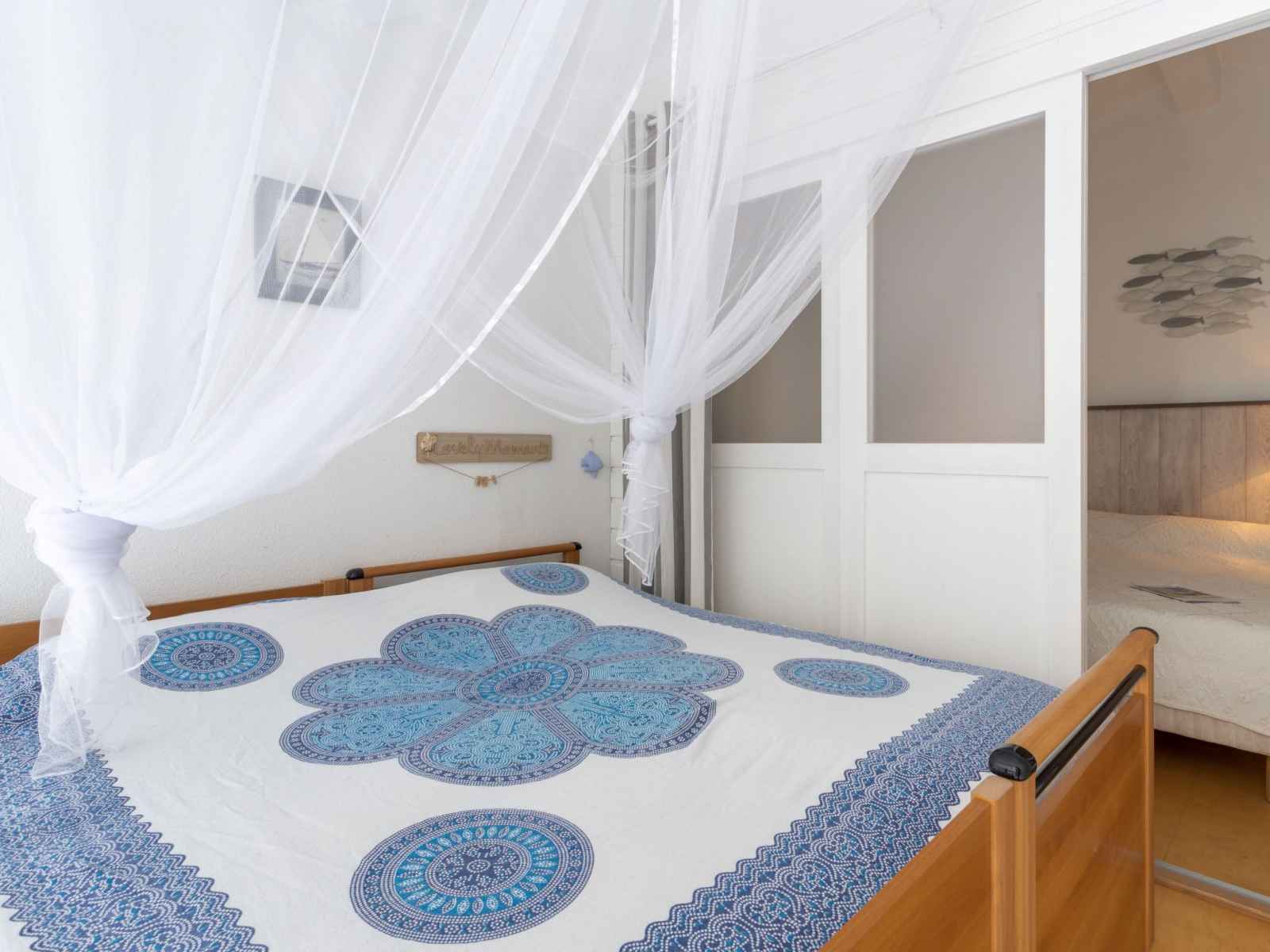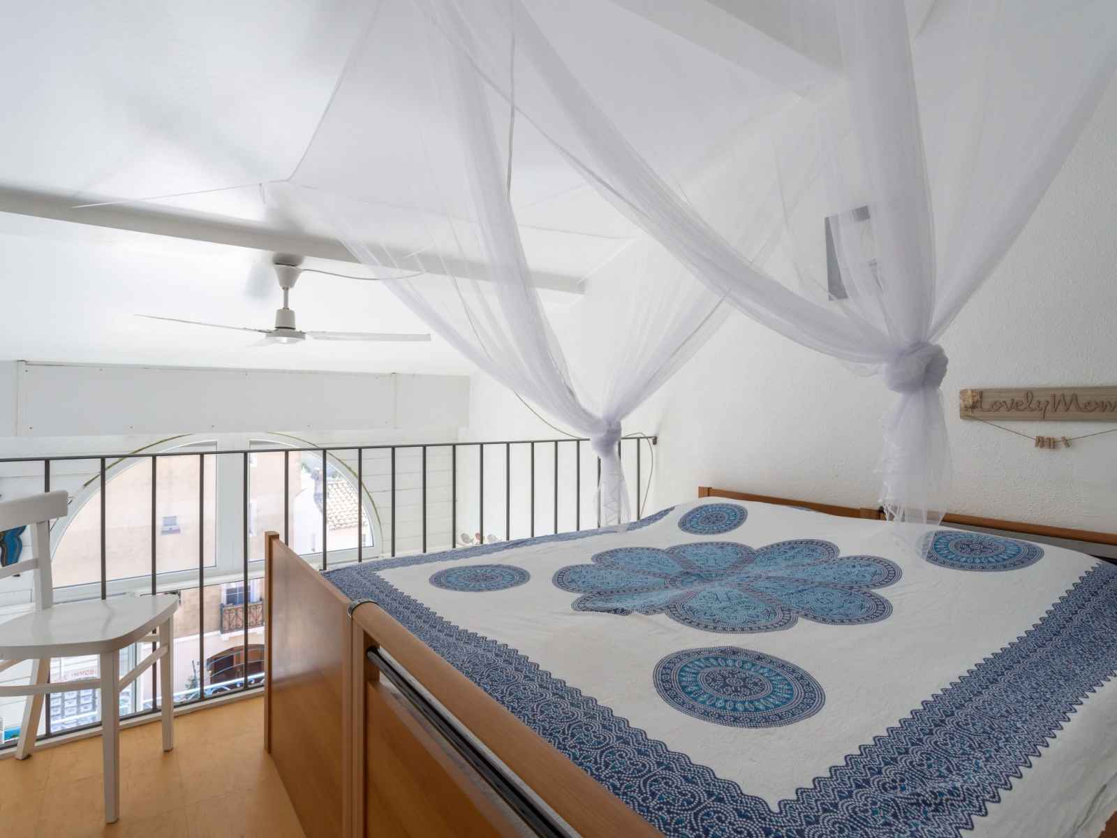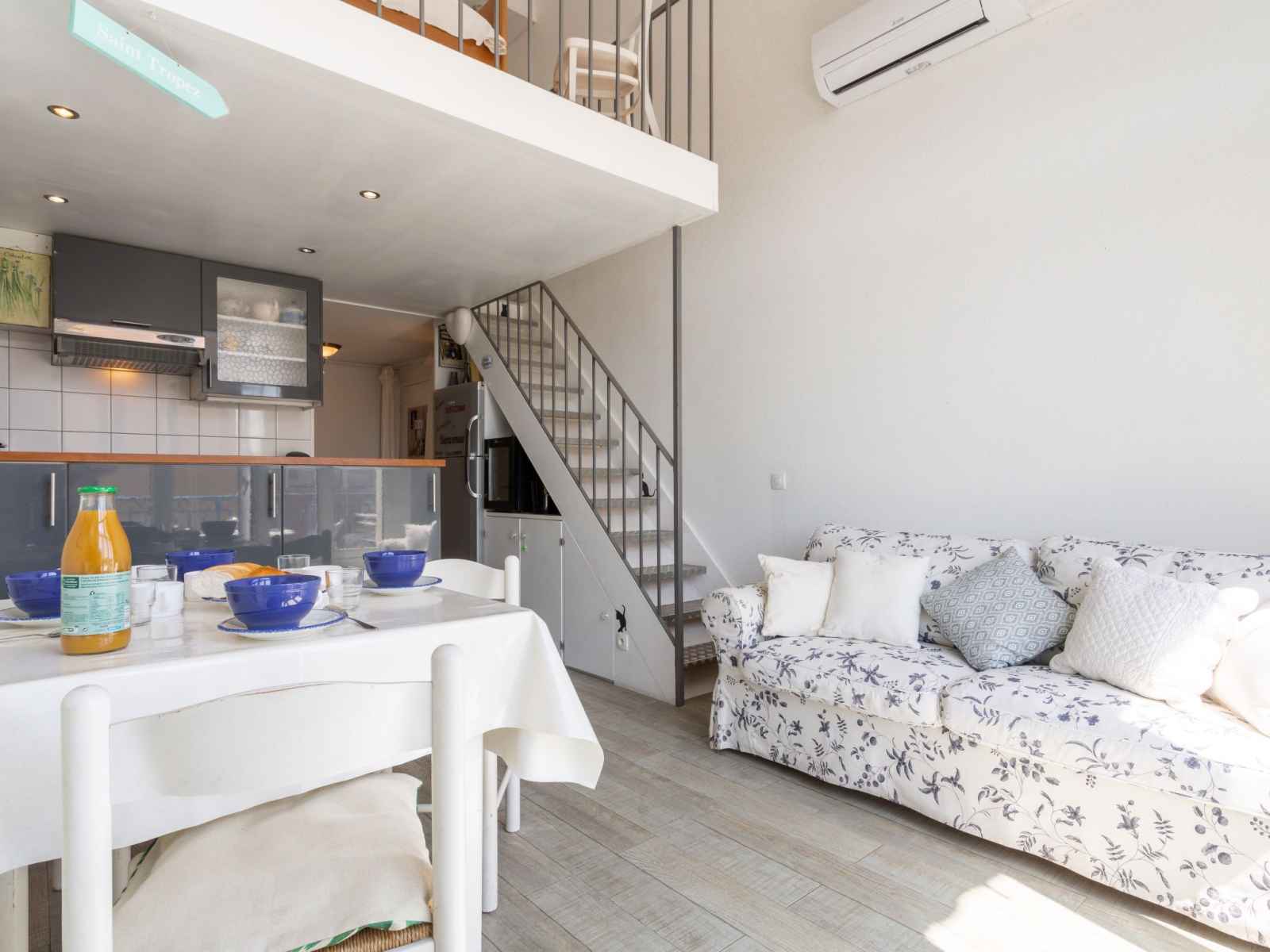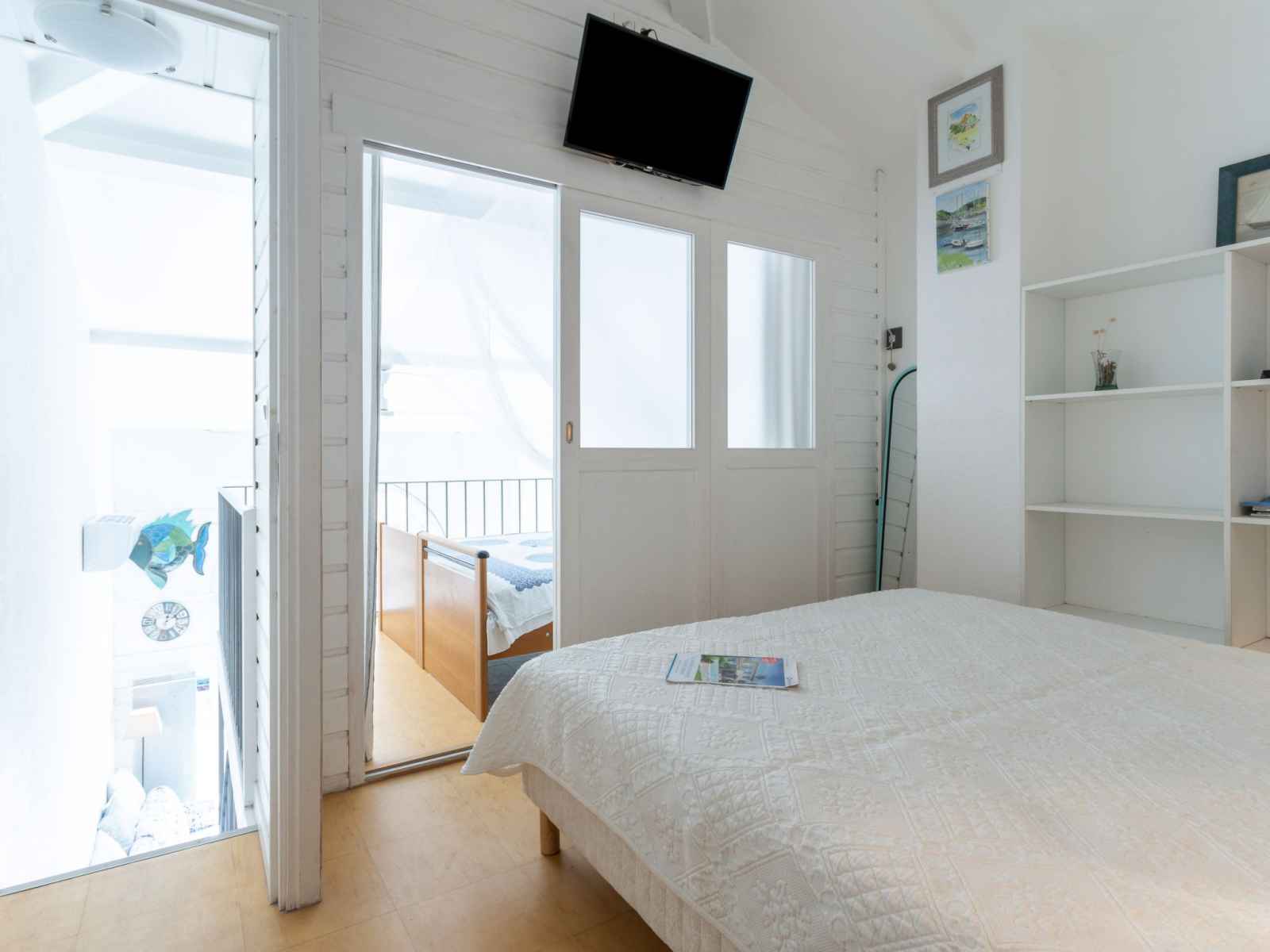 machine à café (Senseo) (NON INCLUSES)). Douche, WC séparé. À l'étage supérieur: (escalier raide) 1 petite chambre avec 1 lit double (2 x 80 cm, longueur 190 cm), TV (écran plat). Galerie ouverte avec 2 lits (80 cm, longueur 190 cm). Chauffage électrique, air-conditionné. Balcon 4 m2. Mobilier de balcon. A disposition: lave-linge. Internet (Connexion WIFI, gratuit). Place de parking No 873 P9. Veuillez noter: non recommandé pour des enfants en bas âge. Logement non-fumeur. Détecteur de fumée. Au lieu d'une chambre fermée, des espaces de couchage sont situés dans une zone ouverte (galerie, alcôve...). 8306800070646