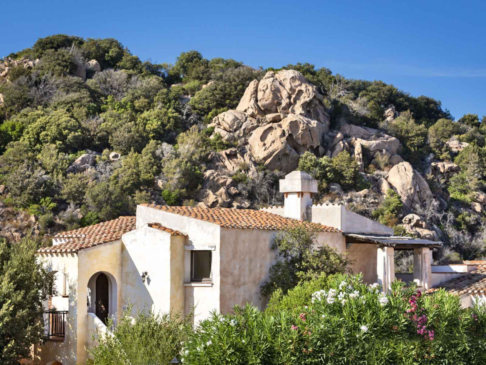 Complexe de vacances "il giardino degli oleandri", de 2 étages, environné par les arbres. 21 appartements dans la résidence. À 3 km du centre de porto cervo, à 3.7 km du centre de baia sardinia en-dehors de la localité, à 17 km du centre d'arzachena, sur une colline, à 750 m de la mer. en commun: beau jardin avec pelouse et plantes, 2