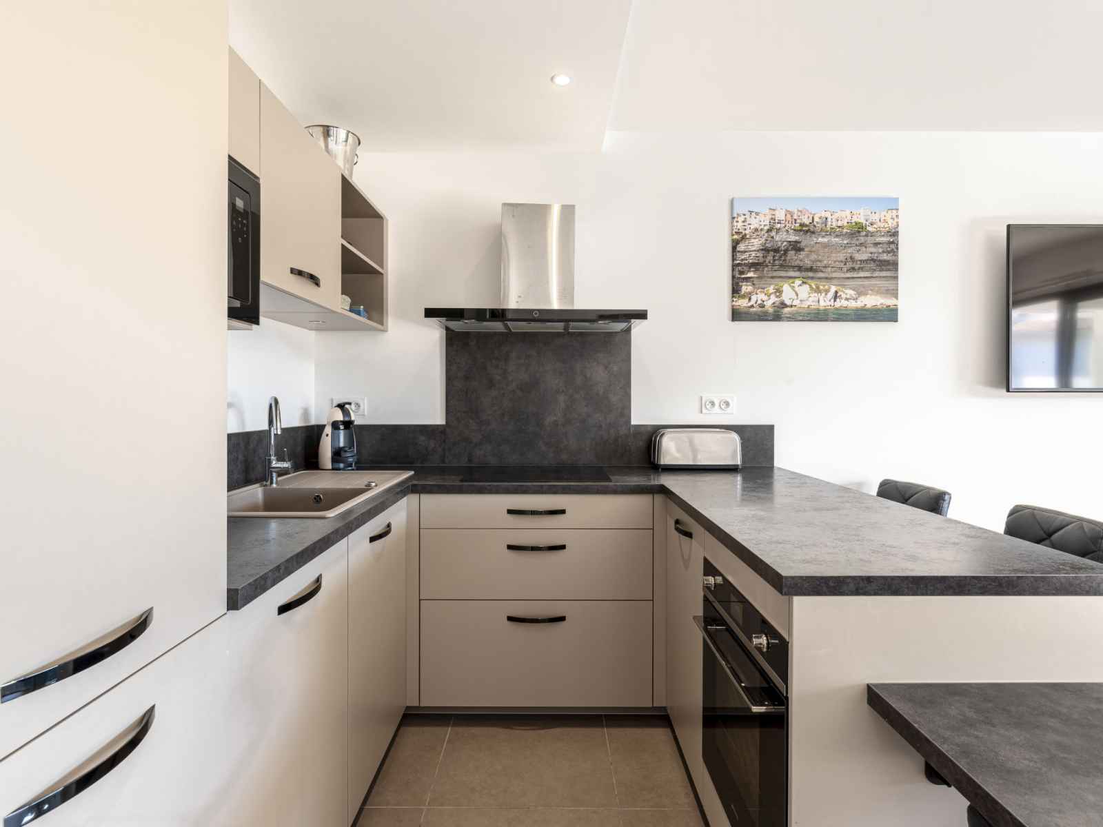 lave-vaisselle, 1 plaques à induction, 4 feux, bouilloire électrique, micro-ondes, cafetière électrique). Bain/WC. Chauffage électrique, air-conditionné. Terrasse 20 m2. Meubles de terrasse. A disposition: lave-linge. Internet (Connexion WIFI, gratuit). Place de parking. Veuillez noter: logement non-fumeur. Détecteur de fumée. 2A247000122EE