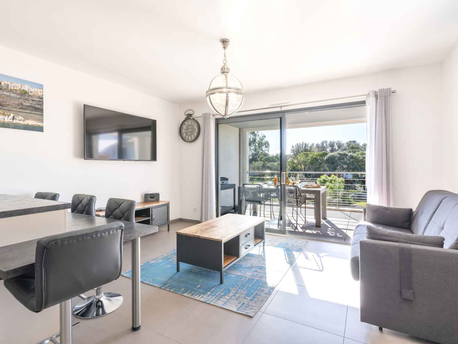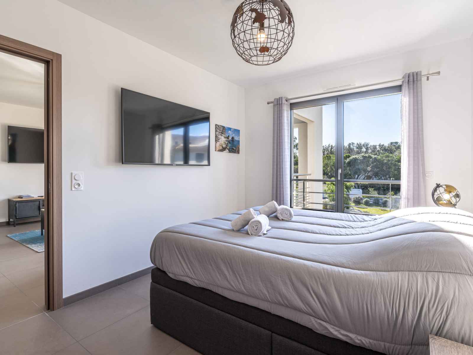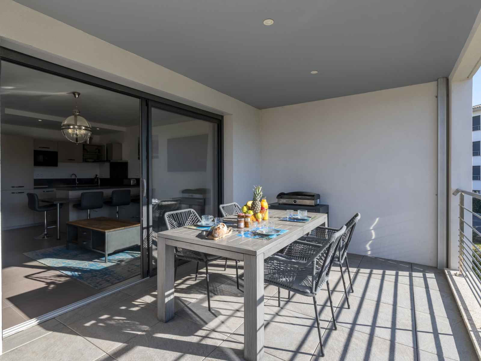"domaine d'arca g6", apt 2 pièces 51 m2 au 2ème étage. aménagement moderne: séjour/salle à manger avec baie vitrée avec 1 divan-lit double (140 cm, longueur 190 cm), tv (écran plat). sortie sur le balcon, sur la terrasse. 1 chambre avec baie vitrée avec 1 grand-lit (160 cm, longueur 200 cm). sortie sur la terrasse. cuisine ouverte (four,