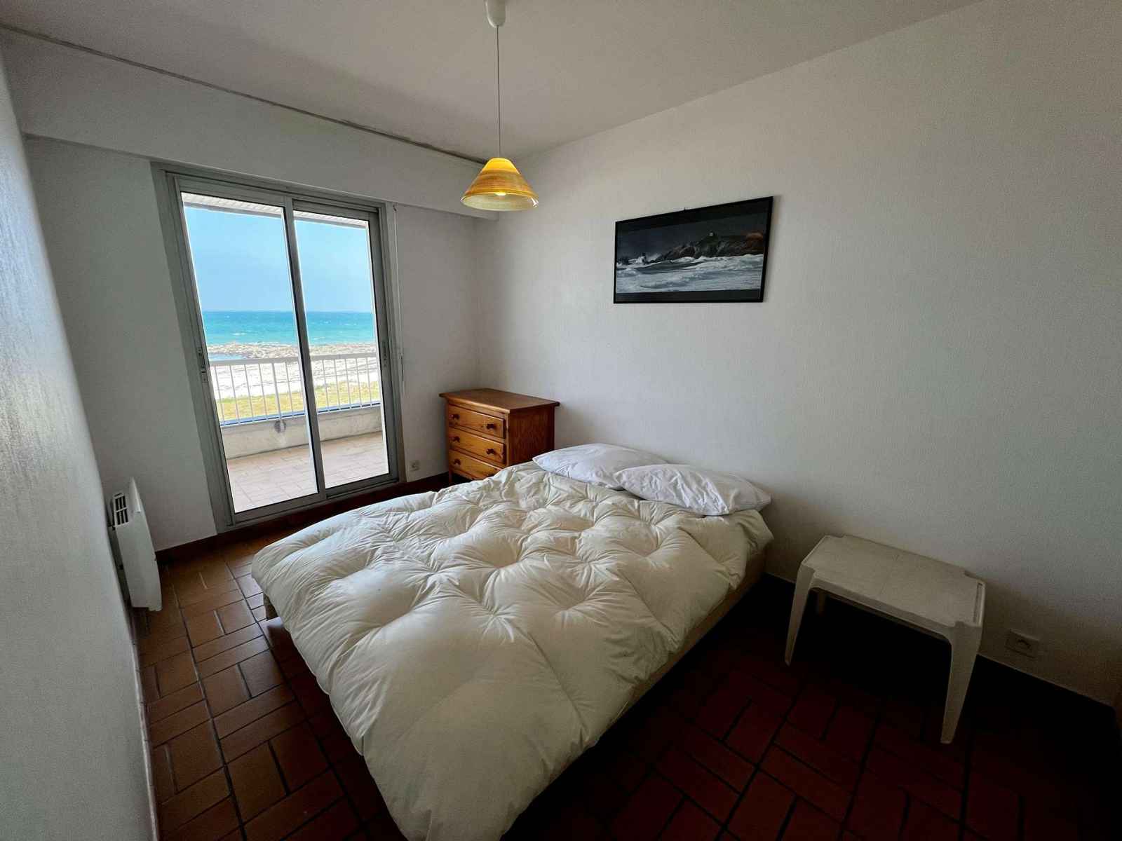 Grand balcon exposé Nord-Est vue mer avec mobilier. Local à vélo commun dans la résidence. Logement équipé de couettes. Parking n°9 dans la résidence. Animal non admis.