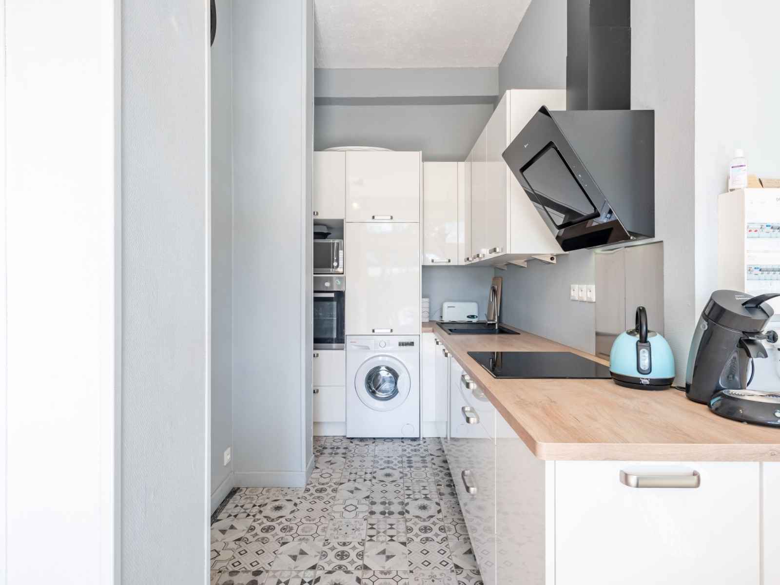 Apt 2 pièces 47 m2, au rez-de-chaussée. aménagement confortable: séjour/salle à manger avec baie vitrée avec 2 lits (90 cm, longueur 190 cm), tv (écran plat). 1 chambre avec 1 grand-lit (1 x 140 cm, longueur 190 cm). cuisine ouverte (four, lave-vaisselle, 4 plaques à induction, bouilloire électrique, micro-ondes, cafetière électrique).