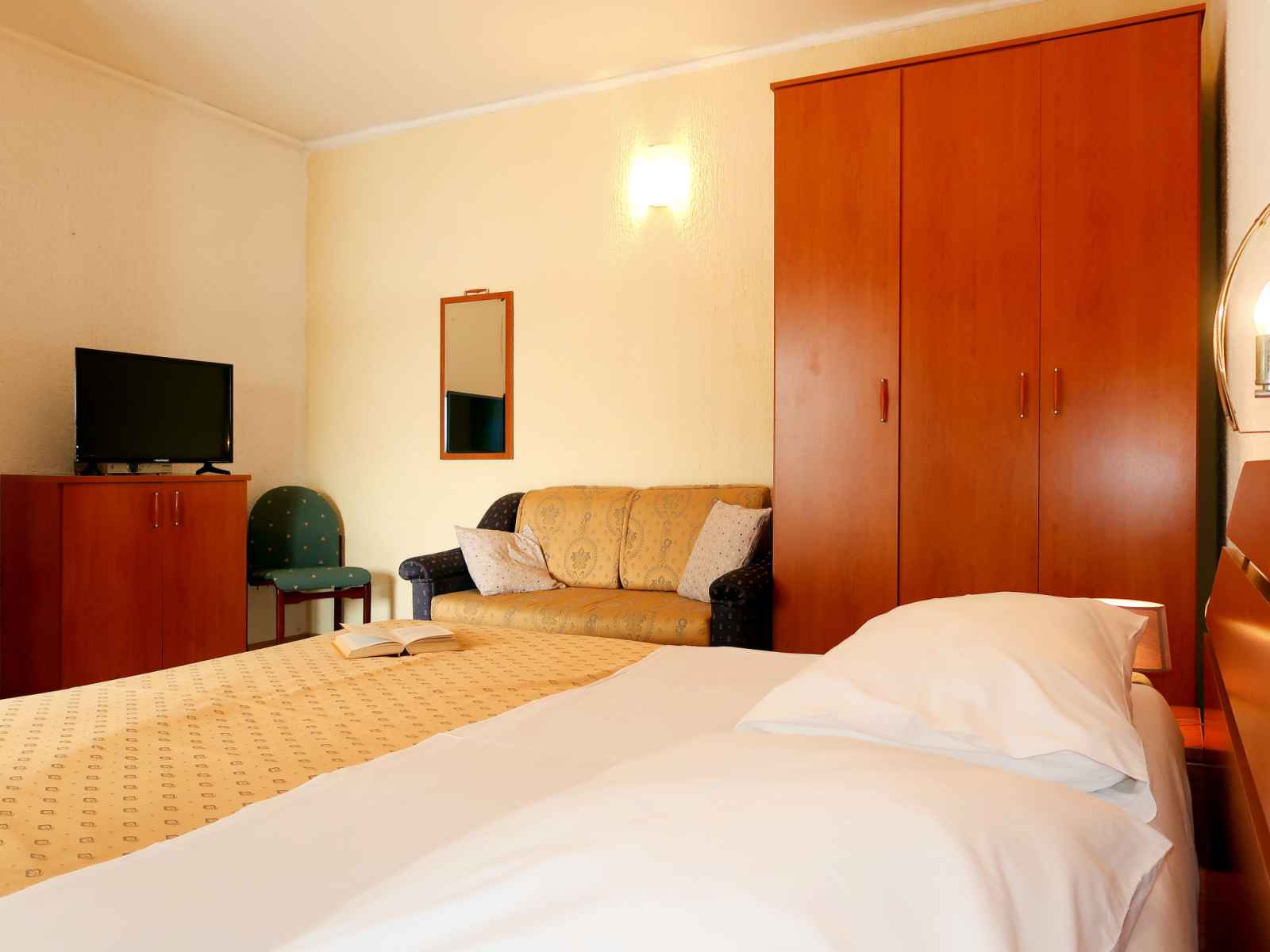 "ana", apt 2 pièces 50 m2, sous le toit. 1 chambre avec 1 grand-lit (180 cm, longueur 200 cm). 1 chambre avec 1 lit double (2 x 100 cm, longueur 220 cm), tv (satellite) et air-conditionné. sortie sur le balcon. cuisine/séjour (2 plaques de cuisson, grille-pain, bouilloire électrique, micro-ondes, congélateur, cafetière électrique) avec