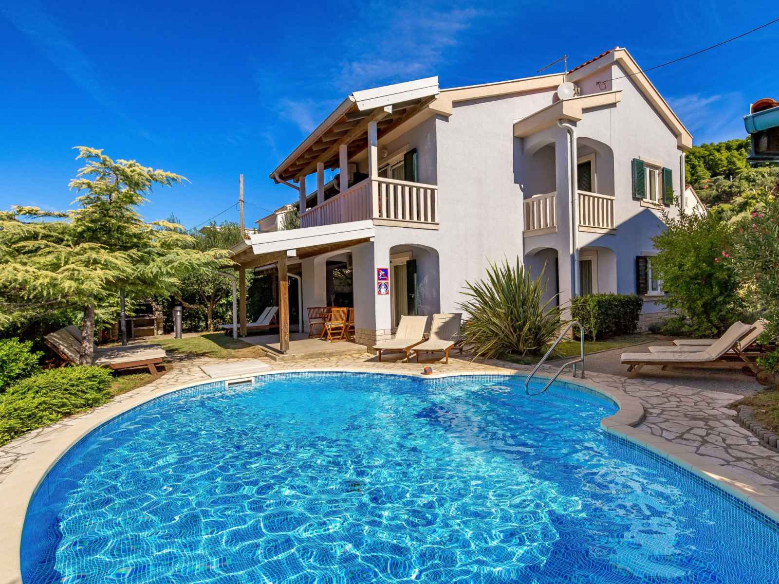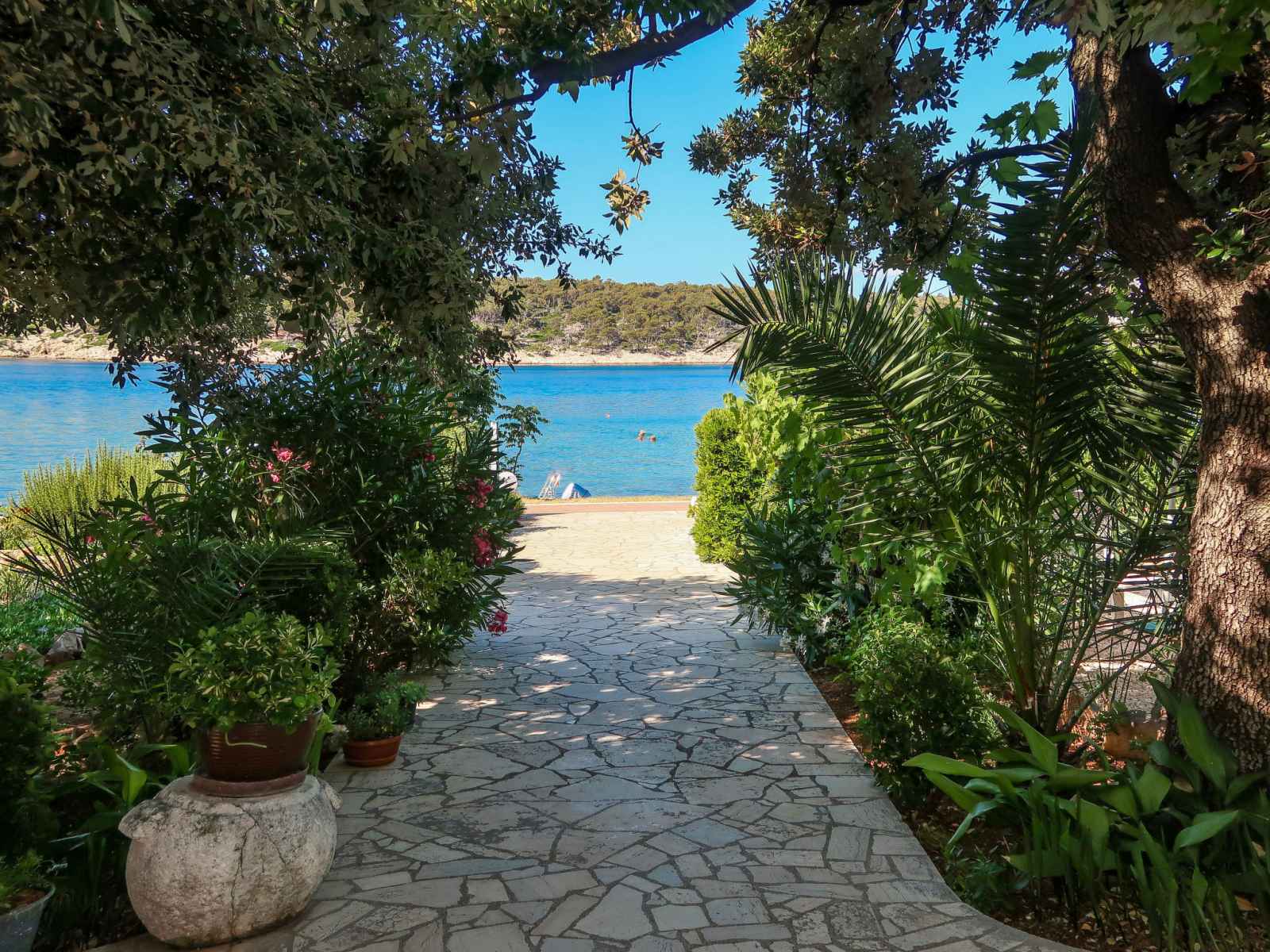 Immeuble "noa". À 1.9 km du centre de barbat, à 6.5 km du centre de rab, à 17 km du centre de lopar, à 20 m de la mer, à 20 m de la plage. en commun: terrain 1'500 m2, arbres. terrasse, meubles de jardin, barbecue. infrastructures de la maison: accès internet, lave-linge (en commun, en sus). place de parking sur le terrain. magasins 1.6 km,