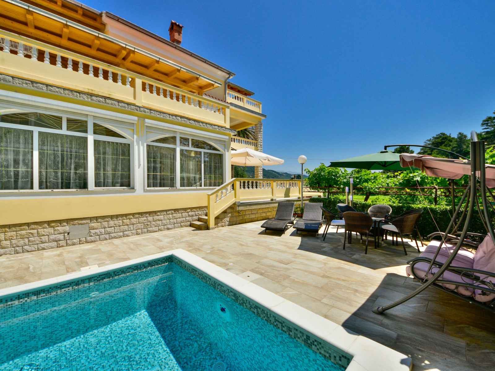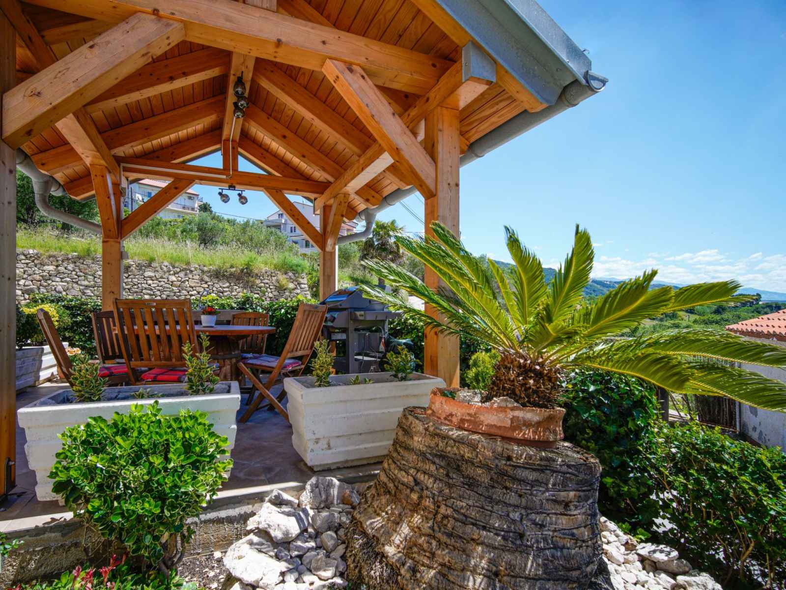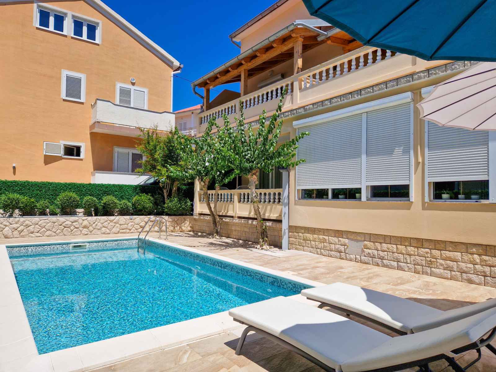 Belle petite résidence "olga". dans le quartier de banjol, 1 km du centre, à 450 m de la mer, à 450 m de la plage. en commun: piscine rectangulaire (7 x 3 m, 25 m2, profondeur 155 cm, disponibilité saisonnière: 01.mai. - 01.oct.) avec systeme d'électolyseur au sel. douche extérieure, barbecue. infrastructures de la maison: accès internet.