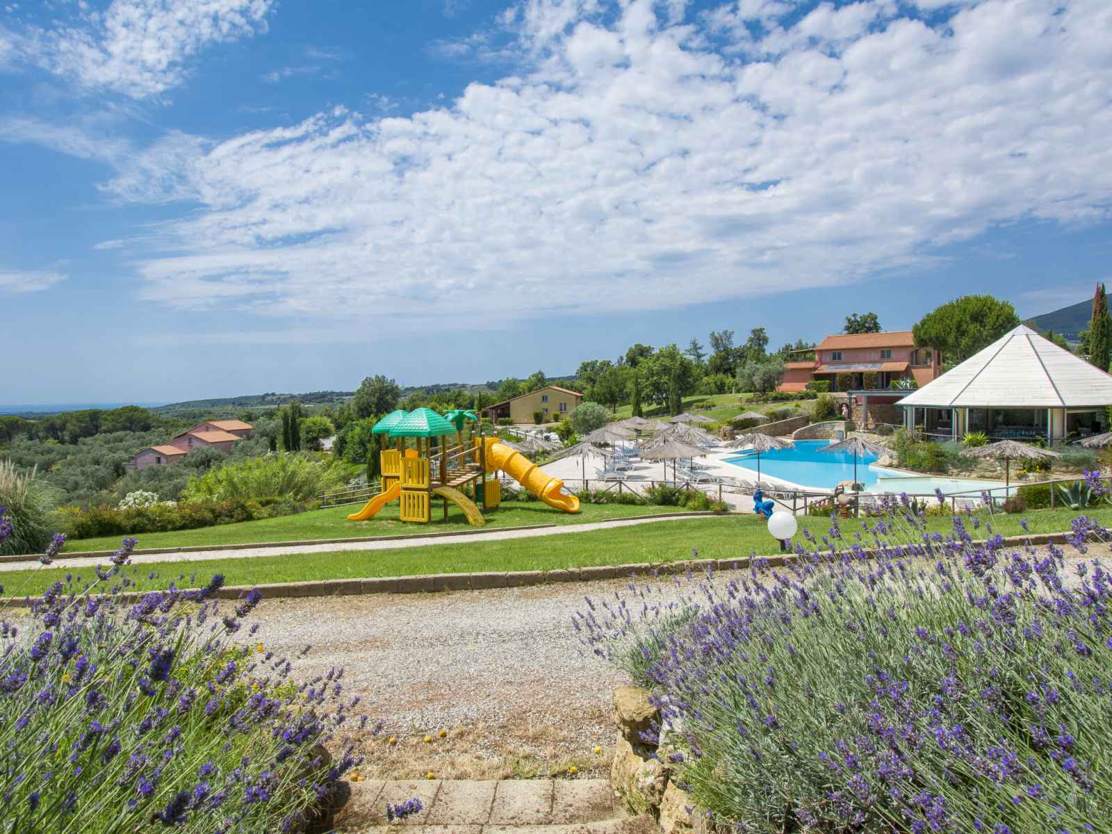 En position surélevée avec de très belles vues sur la mer et les collines environnantes. complexe de vacances accueillant pour les enfants "il felciaione", environné par les arbres, prés et champs. 8 maisons dans le même complexe de vacances. 55 appartements dans la résidence. À 3.5 km du centre de riparbella, situation ensoleillée sur un