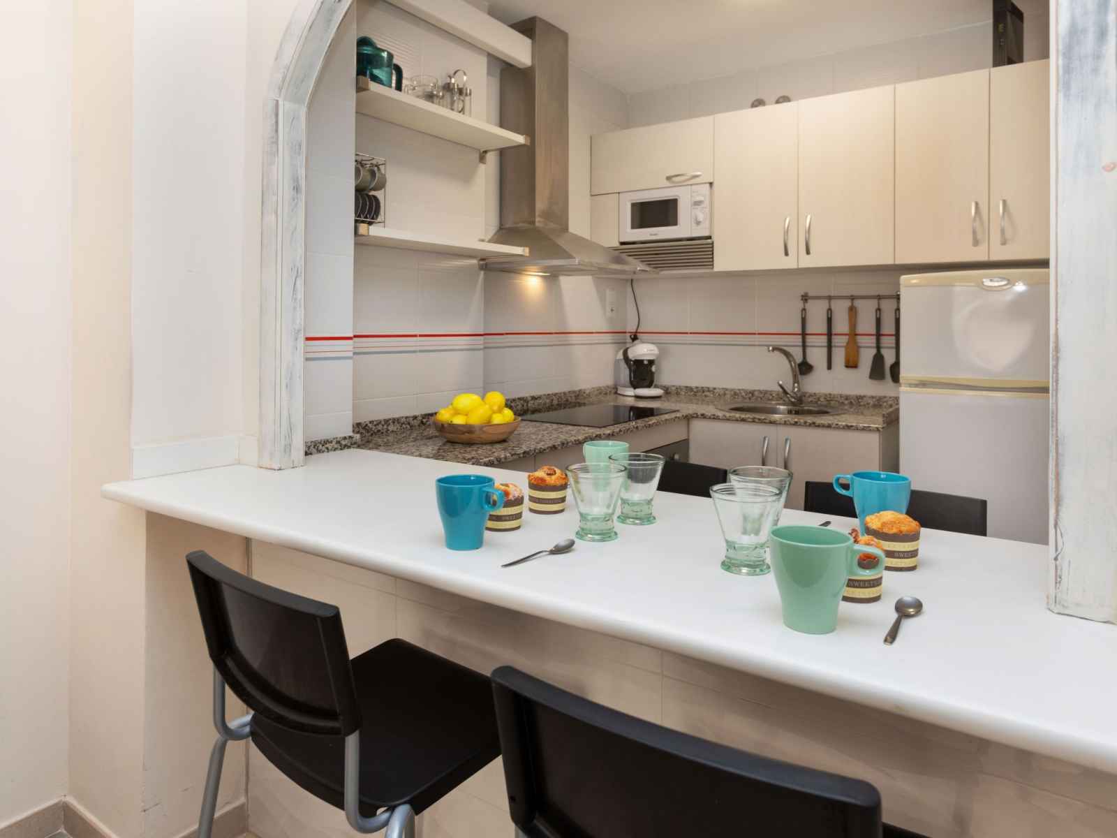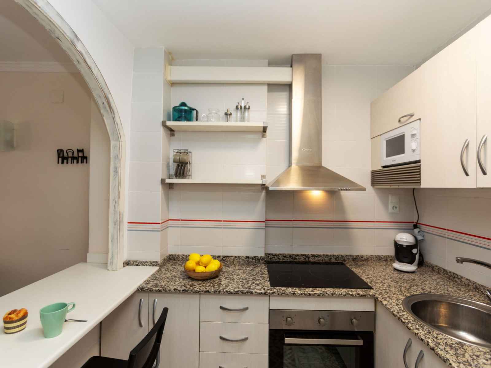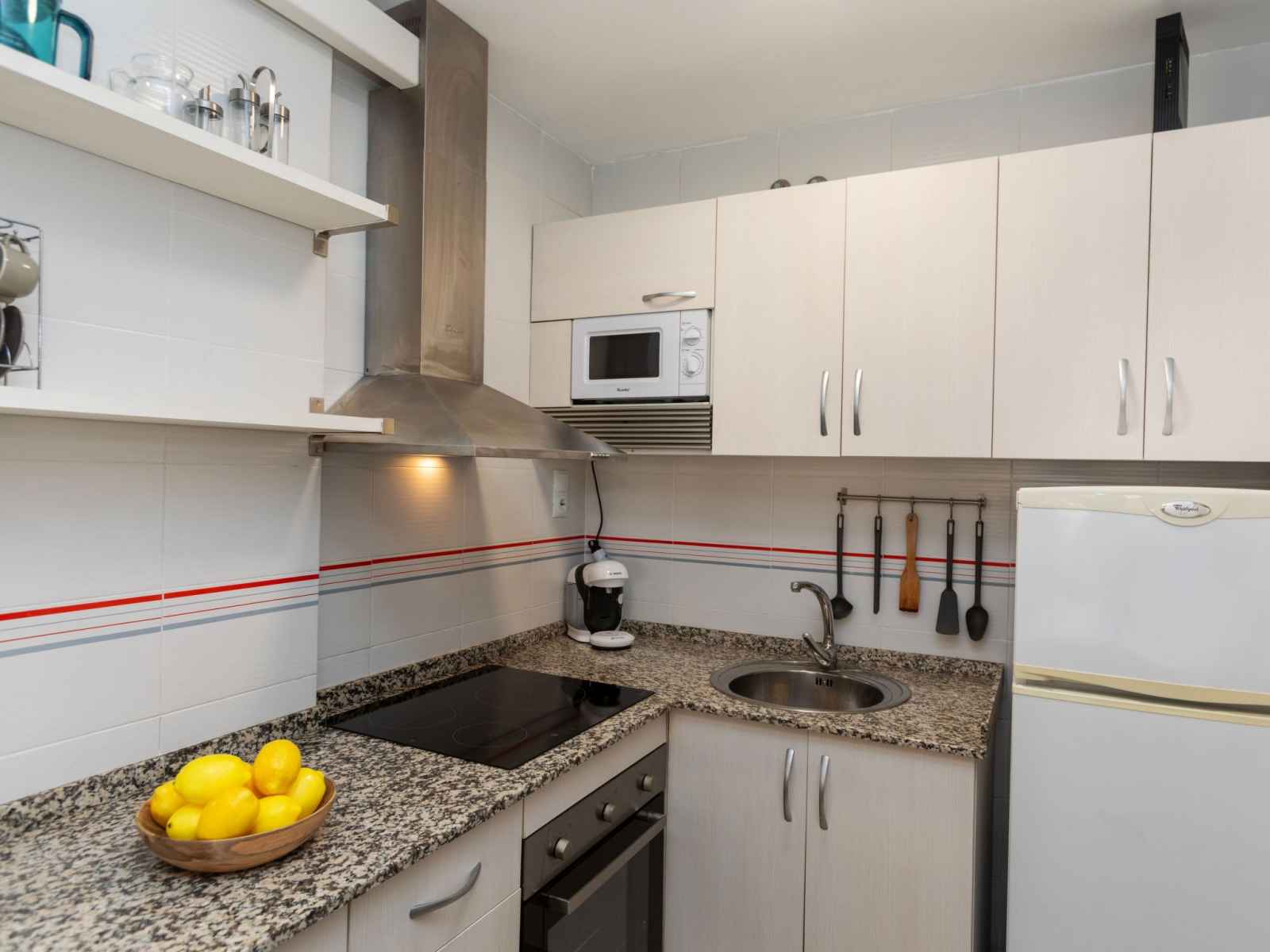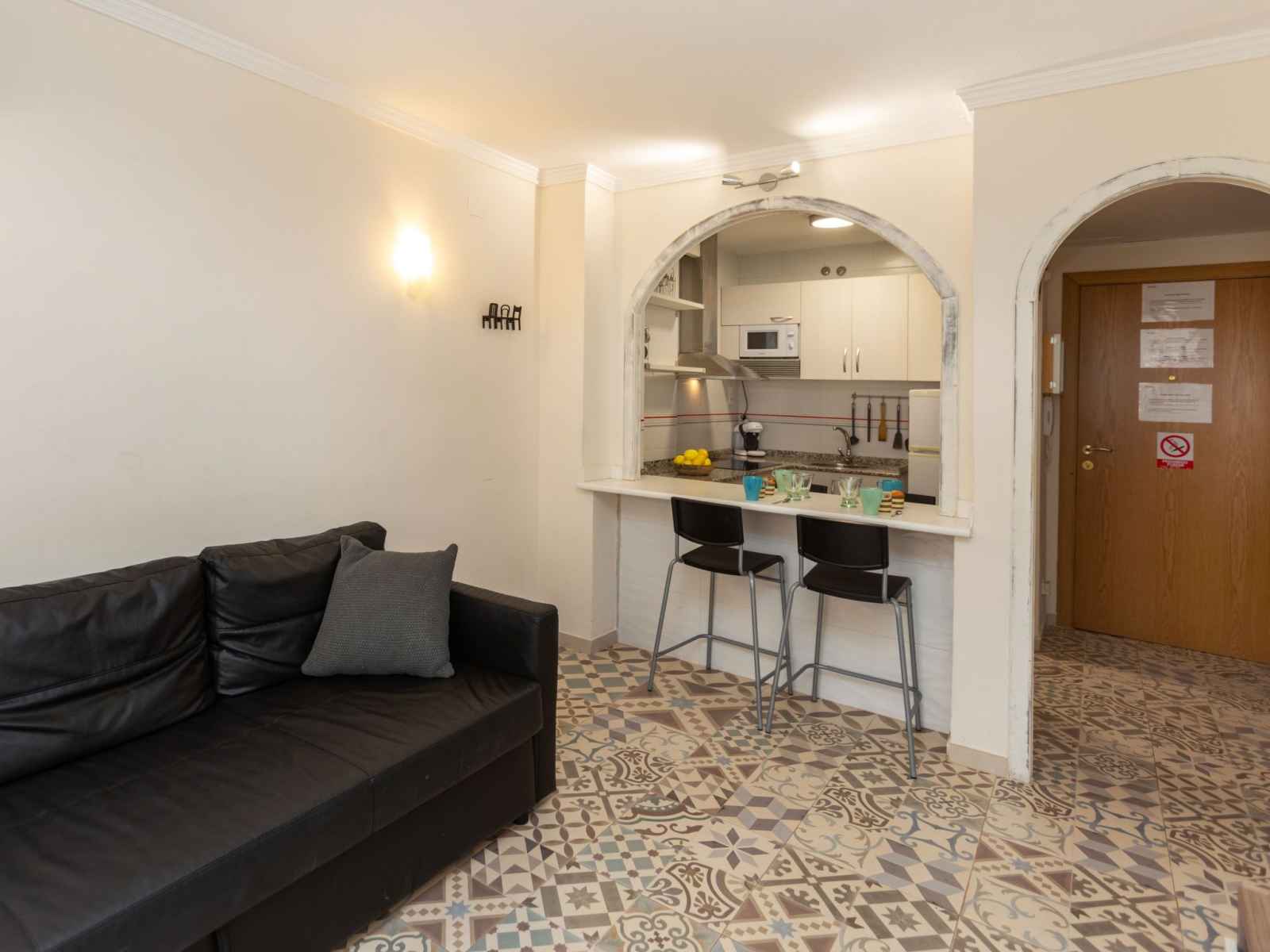 "jerez", apt 2 pièces 53 m2. aménagement fonctionnel et agréable: séjour/salle à manger 53 m2 avec 1 divan-lit (135 cm, longueur 190 cm), tv (écran plat), air-conditionné et chauffage à air chaud. 1 chambre avec 1 grand-lit (135 cm, longueur 190 cm). sortie sur la terrasse. cuisine ouverte (four, 3 plaques vitrocéramiques, grille-pain,