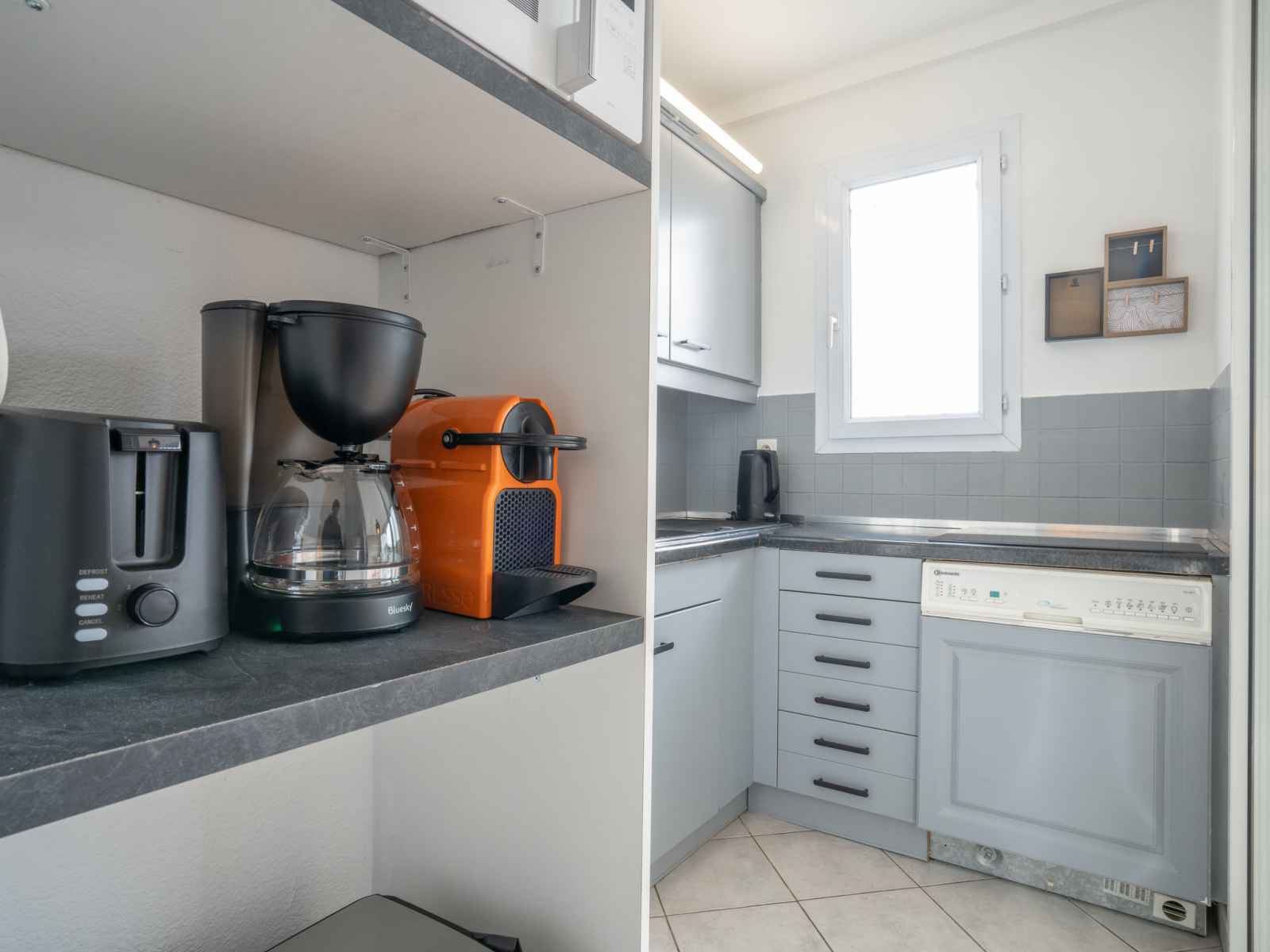 volet roulant électrique. Sortie sur le balcon. Cuisine (2 plaques de cuisson, four, lave-vaisselle, grille-pain, bouilloire électrique, micro-ondes, cafetière électrique, Capsules pour machine à café (Nespresso) (NON INCLUSES)) avec volet roulant électrique. Sortie sur le balcon. Douche, WC séparé. Chauffage électrique. Grande terrasse 16 m2, couverte, situation sud. Mobilier de balcon, loggia, place pour s'asseoir. Belle vue sur la mer. A disposition: lave-linge, fer à repasser, sèche-cheveux. Internet (Connexion WIFI, gratuit). Garage (1 Voiture), hauteur 190 cm, largeur 240 cm. Veuillez noter: logement non-fumeur. Maximum 1 animal/ chien autorisé. Détecteur de fumée. Annonce d'un particulier (art 155, IV du CGI). P8TLNU