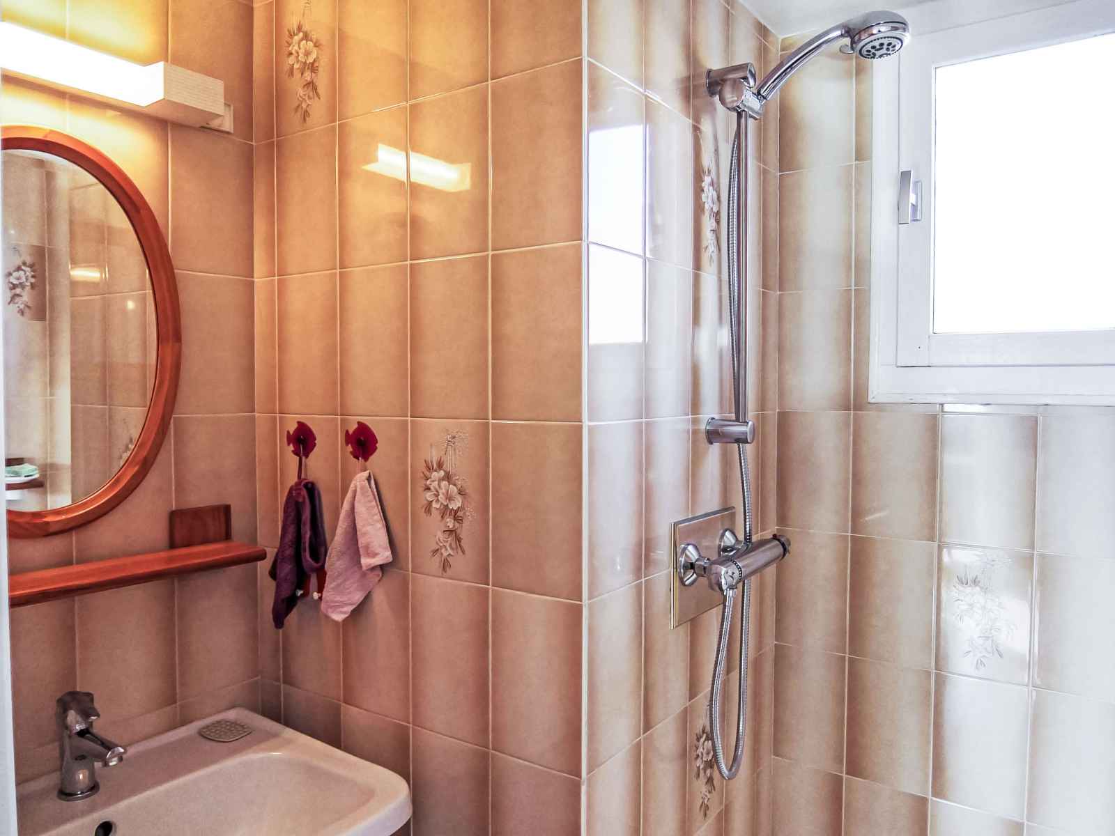 Apt 2 pièces 40 m2 sur 2 niveaux au 2ème étage. séjour/salle à manger avec tv (écran plat). sortie sur la loggia. 1 petite chambre avec 1 grand-lit (140 cm, longueur 190 cm). coin cuisine (mini-four, 3 plaques à induction, micro-ondes, congélateur, cafetière électrique). douche, wc séparé. À l'étage supérieur: (escalier raide)