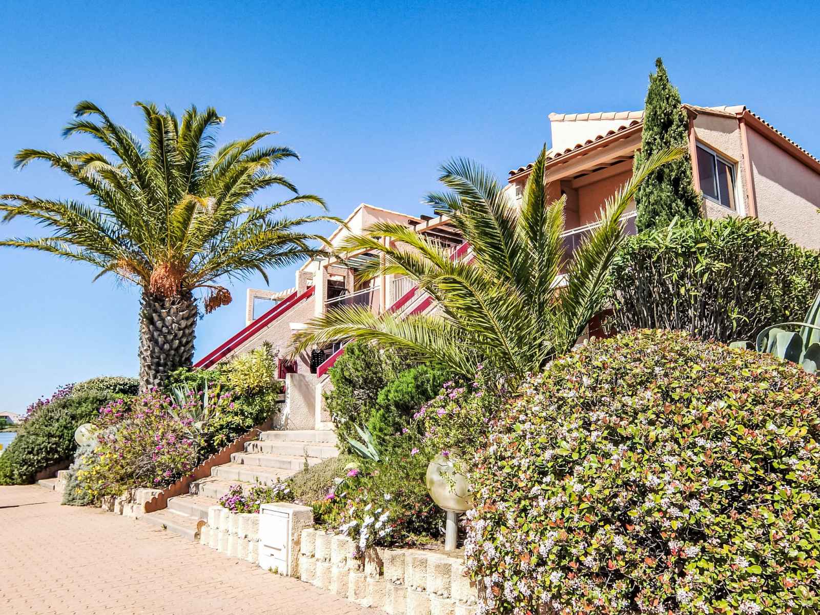 Résidence "marinas du ponant", de 2 étages. dans le quartier de la lagune, à 150 m de la mer, accès direct à la lagune. parking public possible dans la rue. magasins 2 km, magasin d'alimentation 200 m, supermarché 3.2 km, restaurant 350 m, arrêt de bus 100 m, gare ferroviaire "elne" 8.2 km, plage de graviers 150 m. port plaisance 4 km,