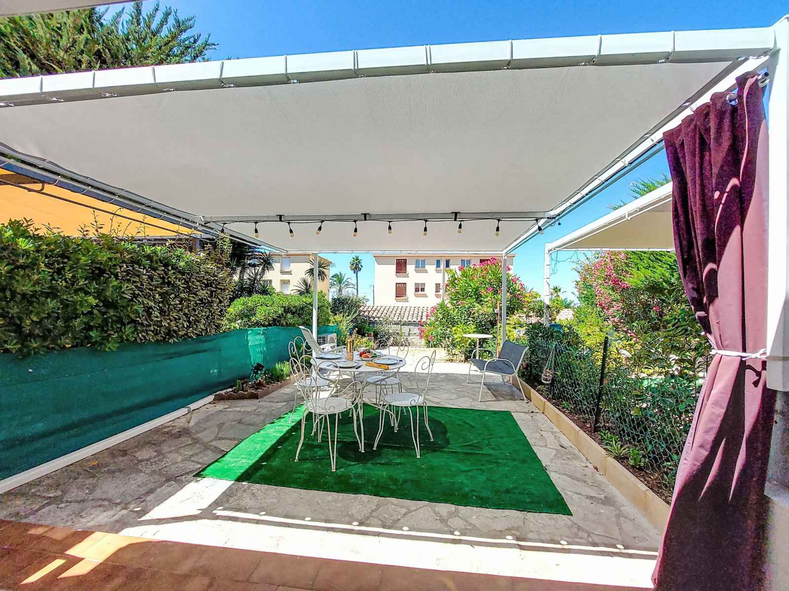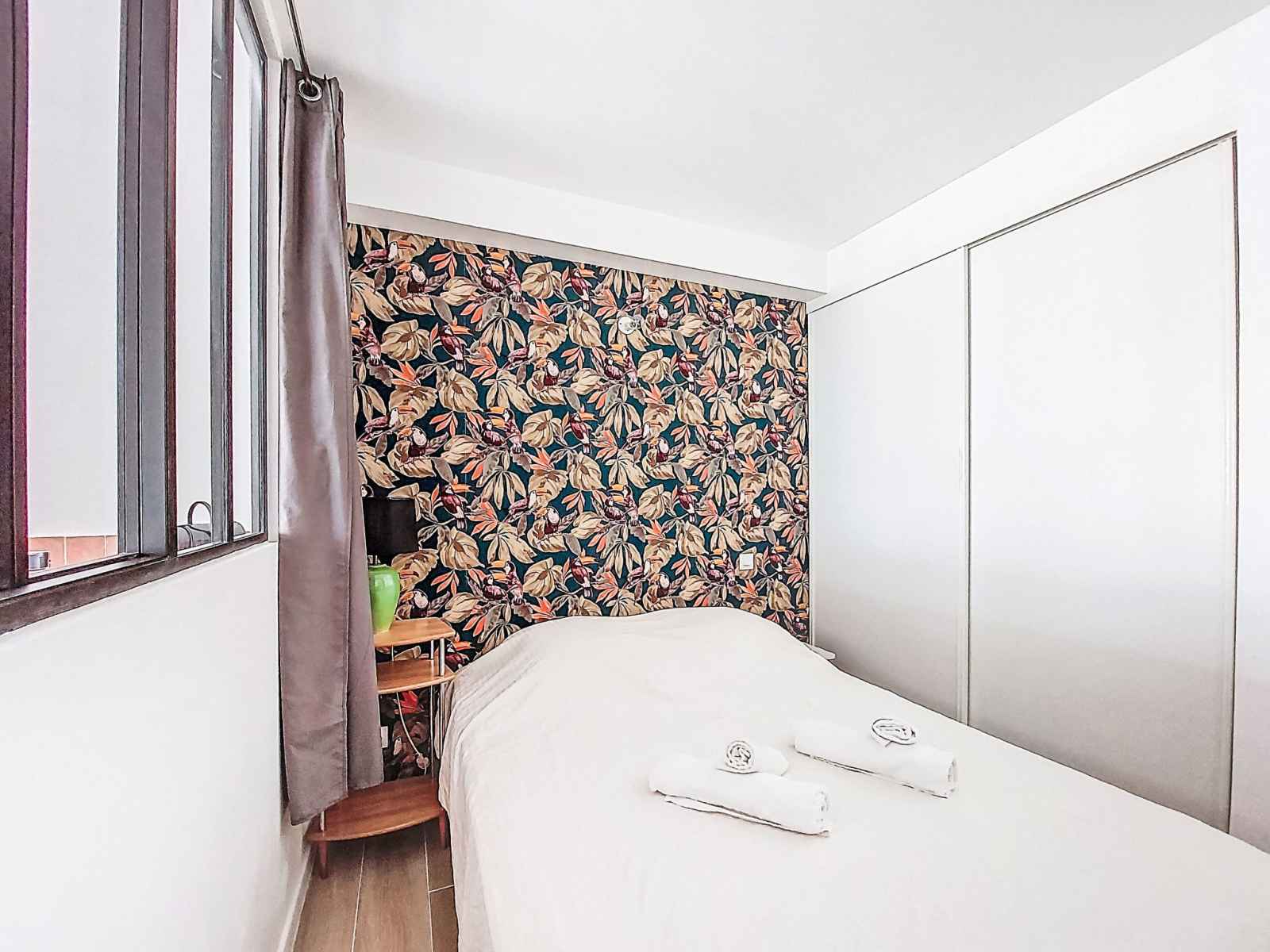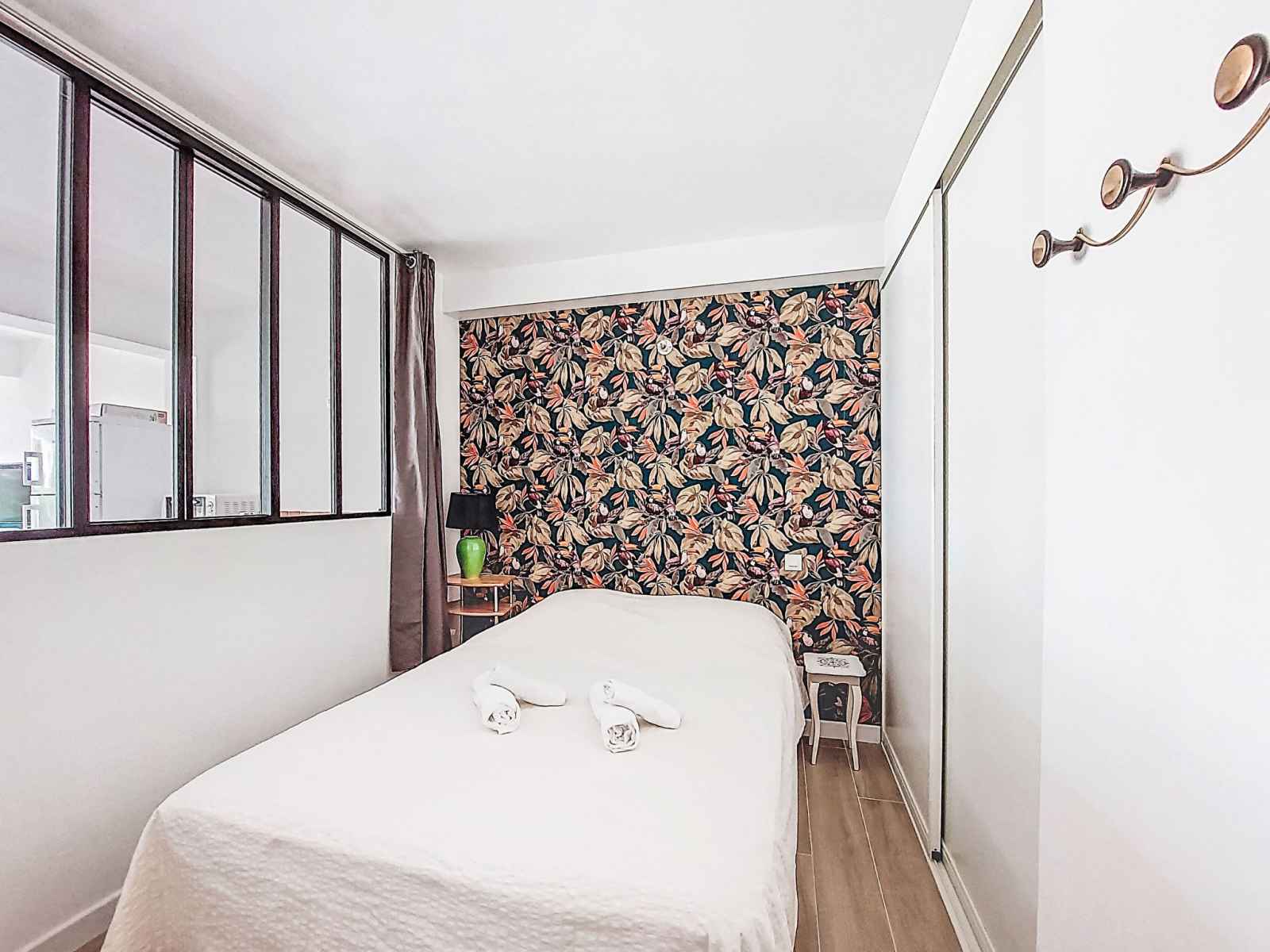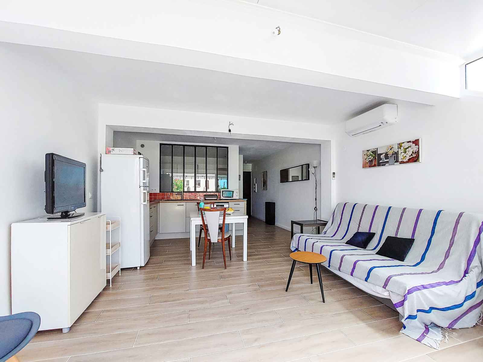 Apt 2 pièces 35 m2, au rez-de-chaussée. clair, aménagement confortable et agréable: séjour/salle à manger avec 1 divan-lit double (140 cm, longueur 200 cm), tv (écran plat), air-conditionné. sortie sur la terrasse. 1 chambre avec 1 grand-lit (140 cm, longueur 190 cm). coin cuisine (mini-four, lave-vaisselle, 3 plaques à induction,