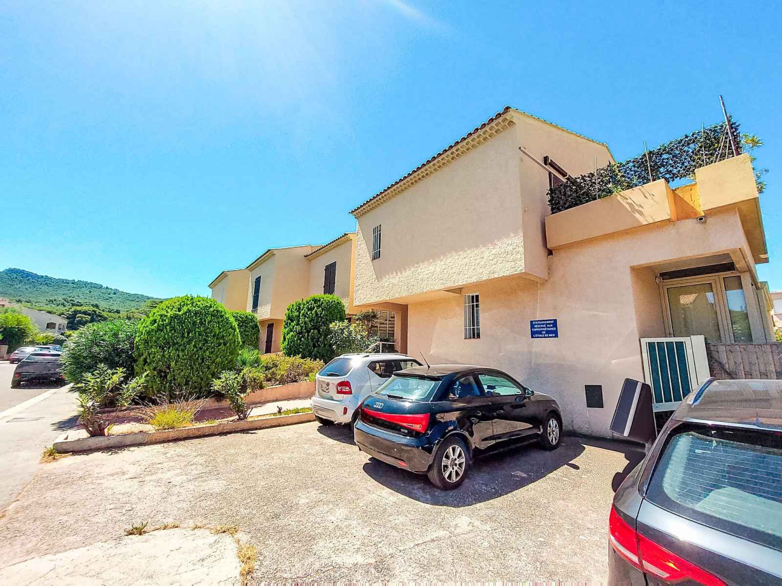 Petite résidence "l'étoile de la mer", environnée par les arbres. dans la localité, à 600 m du centre de st cyr les lecques, situation tranquille dans un quartier résidentiel, à 100 m de la mer, à 100 m de la plage. place de parking. magasins 300 m, supermarché 1.5 km, restaurant 300 m, arrêt de bus "zone d activite des pradeaux" 1.3 km,
