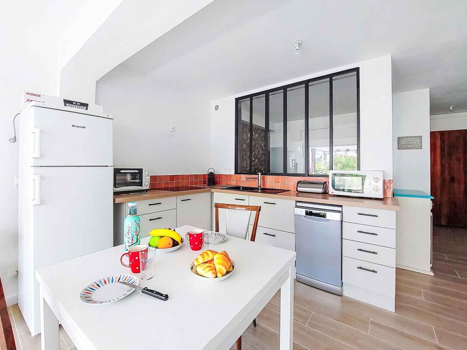grille-pain, bouilloire électrique, micro-ondes, cafetière électrique). Douche/WC. Chauffage électrique. Terrasse 25 m2, situation sud-est. Meubles de terrasse, barbecue électrique. A disposition: lave-linge. Internet (Connexion WIFI, en sus). Veuillez noter: logement non-fumeur. 1 animal/ chien de petite taille autorisé. TV seulement FR. Détecteur de fumée. Annonce d'un particulier (art 155, IV du CGI). 83112001795QC
