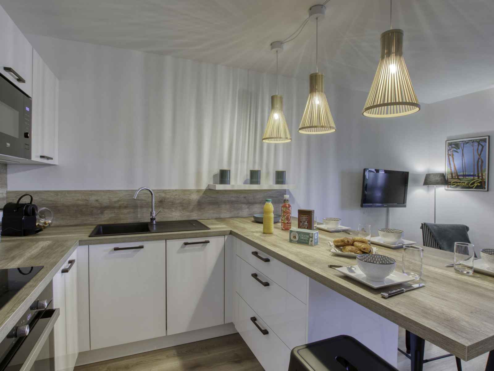 vitrocéramiques, grille-pain, bouilloire électrique, micro-ondes, cafetière électrique, Capsules pour machine à café (Nespresso + Filtre) (NON INCLUSES)). Douche, WC séparé. Chauffage à air chaud. Terrasse 7 m2, couverte, situation sud-est. Meubles de terrasse, barbecue électrique. A disposition: lave-linge, chaise haute pour enfant, lit bébé jusqu'à 2 ans. Internet (Connexion WIFI, en sus). Place de parking près de la maison. Veuillez noter: TV seulement FR. Détecteur de fumée. Annonce d'un particulier (art 155, IV du CGI). 83112000662FU