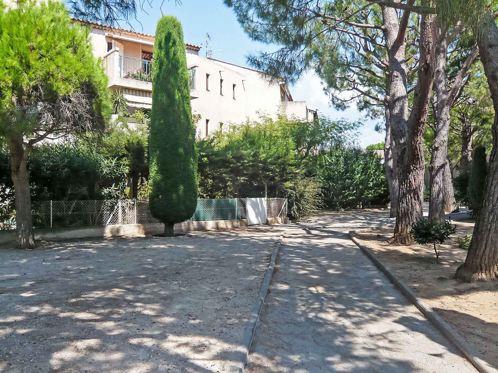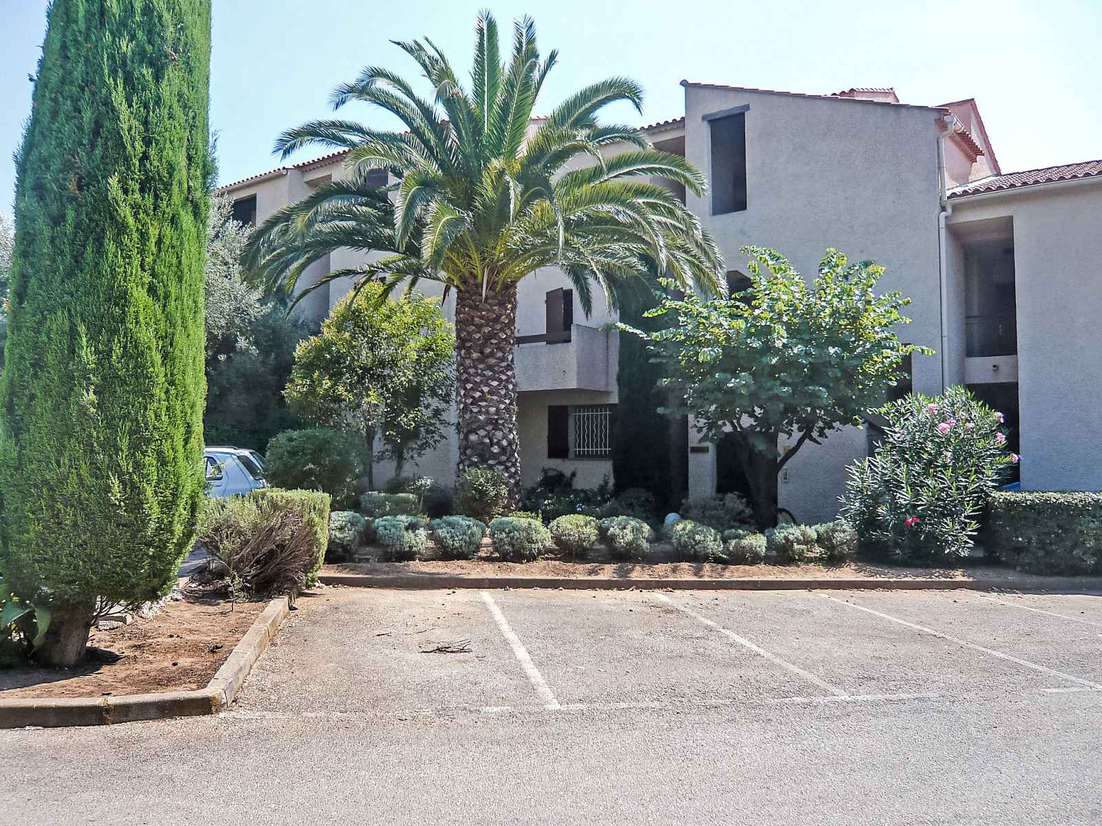 Les lecques à 2 km de saint cyr sur mer: résidence "l'ile heureuse", de 2 étages, environnée par les arbres. À 800 m de la mer, dans une impasse. magasins, supermarché 400 m, restaurant 800 m, arrêt de bus "zone d activite des pradeaux" 600 m, gare ferroviaire "saint cyr les lecques-la cadière" 1.4 km, plage de sable "les lecques" 800 m.