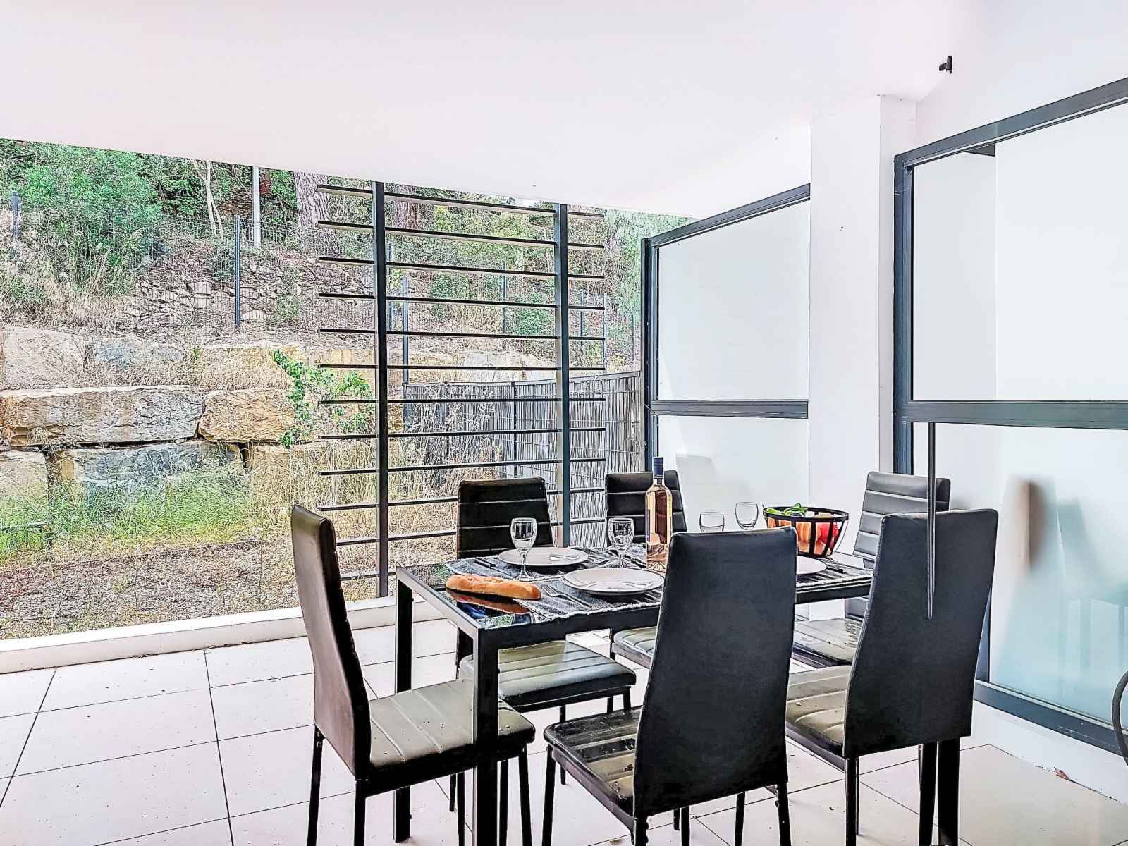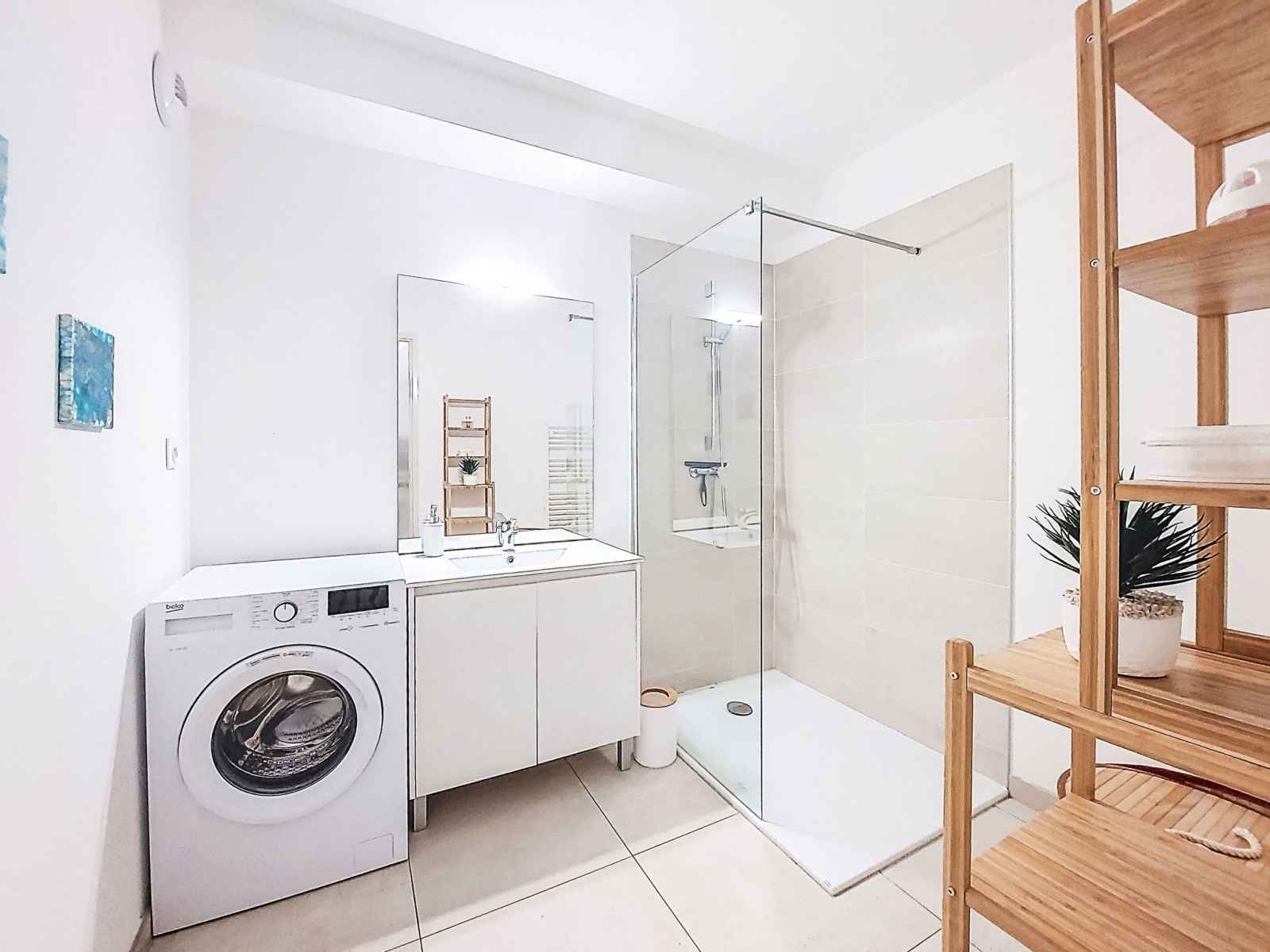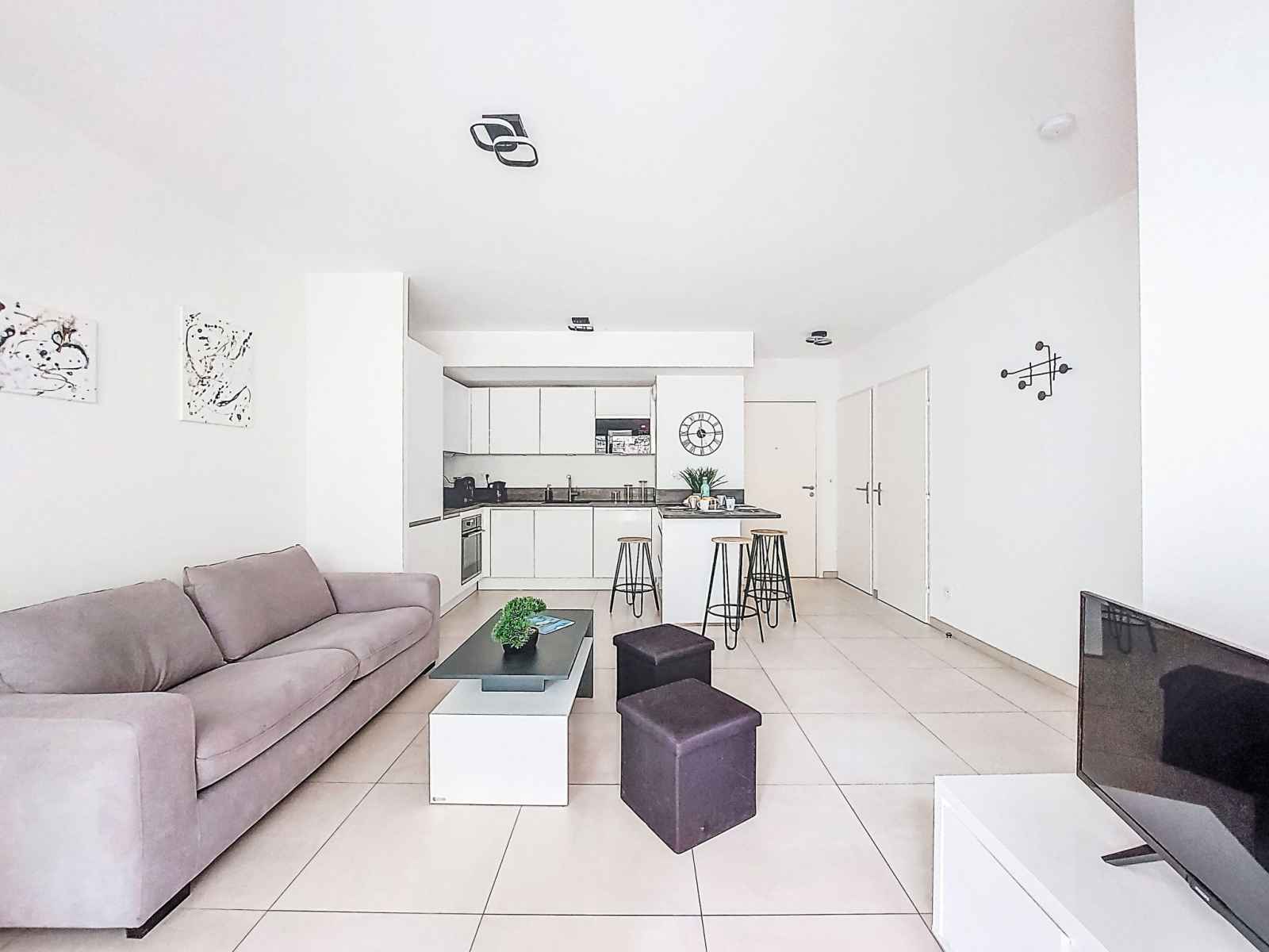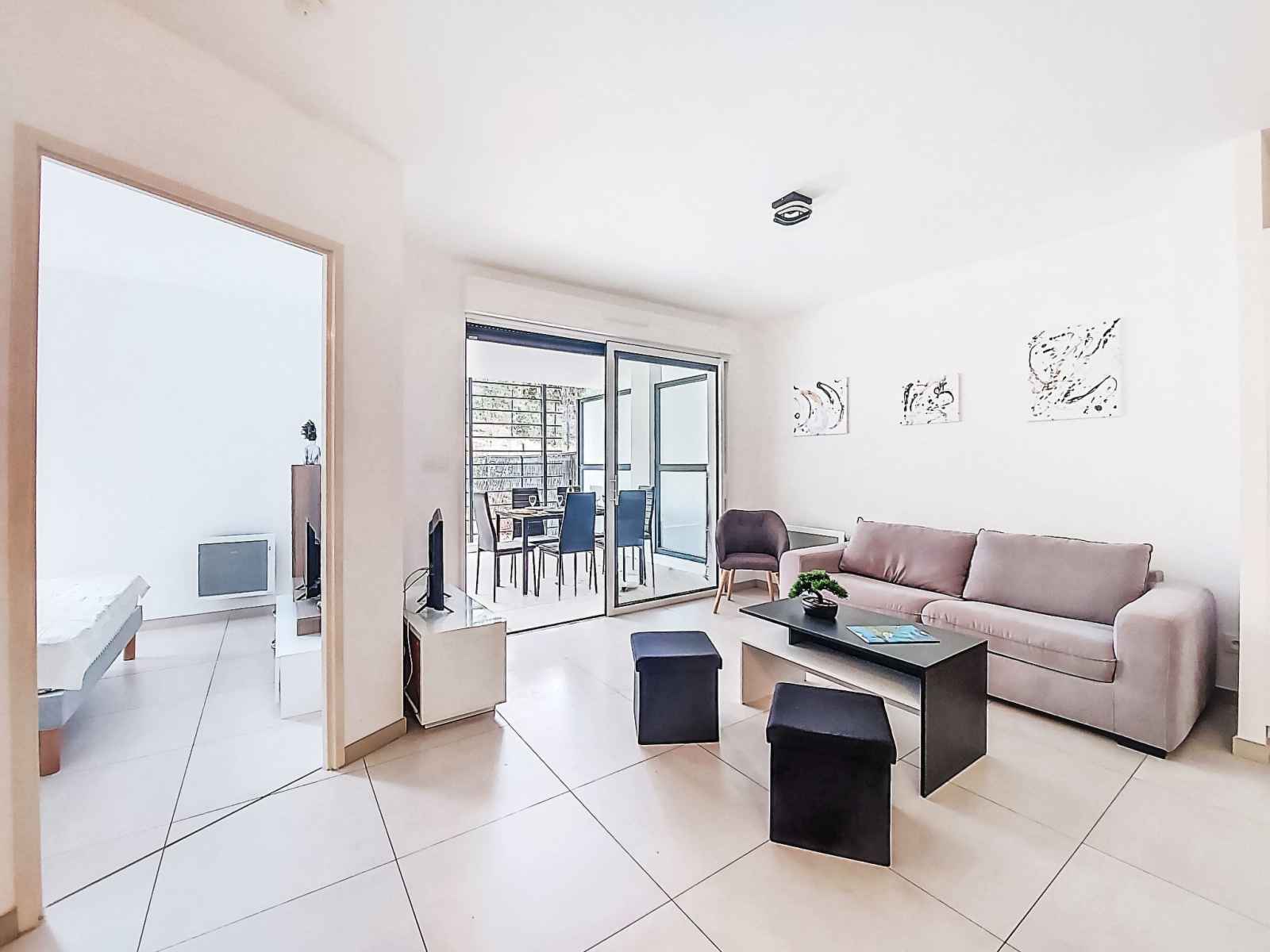 Apt 2 pièces 41 m2, rez-de-chaussée surélevé. clair, aménagement confortable et agréable: séjour/salle à manger avec 1 divan-lit (140 cm, longueur 190 cm), tv (écran plat). sortie sur la terrasse. 1 chambre avec 1 grand-lit (140 cm, longueur 200 cm), tv. sortie sur le jardin. cuisine ouverte (four, lave-vaisselle, 3 plaques à induction,