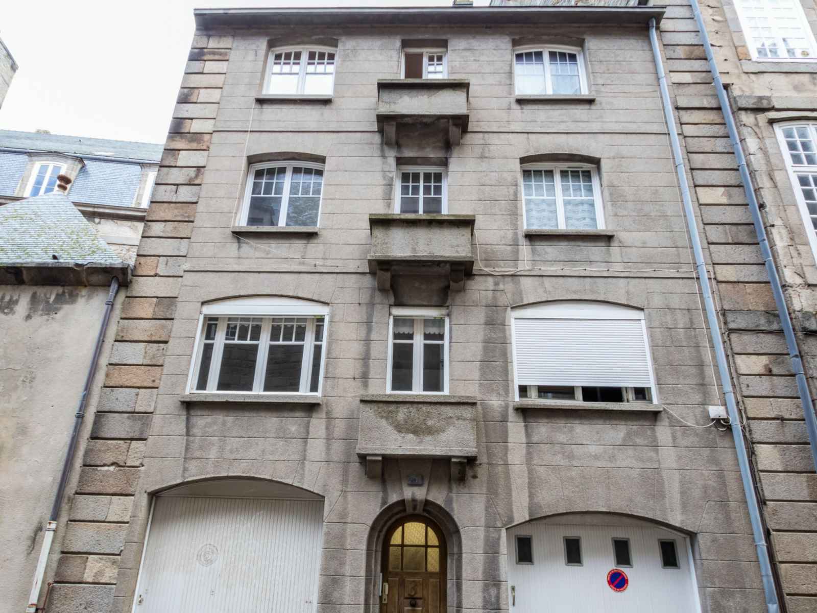 Petit immeuble de 3 étages. dans le quartier d'intramuros, situation centrale, tranquille, à 50 m de la mer, à 500 m de la plage. infrastructures de la maison: réduit pour bicyclettes. parking public possible dans la rue. zone bleue (payant). magasin d'alimentation 100 m, restaurant 50 m, bar, boulangerie 100 m, arrêt de bus "saint malo