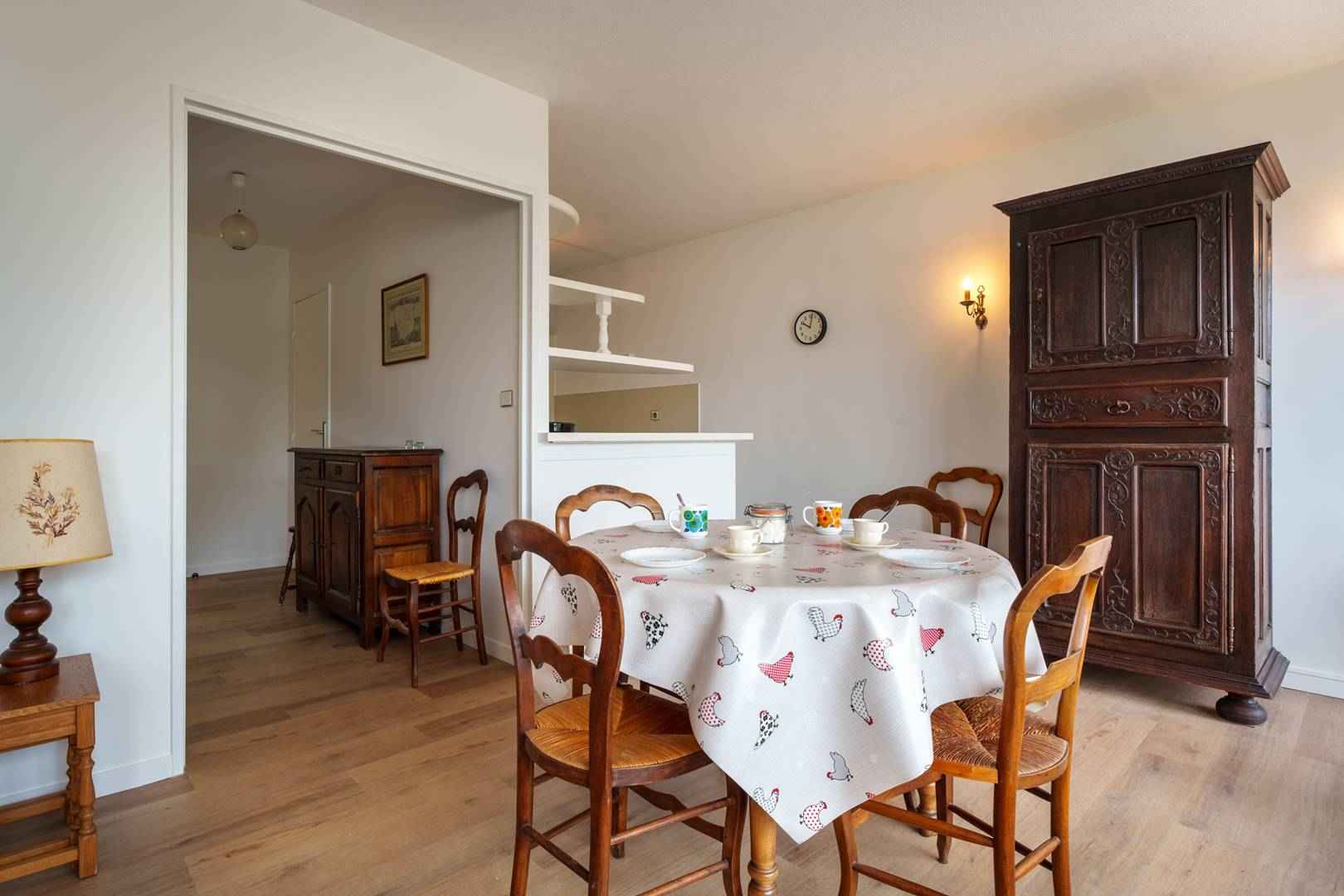 - cuisine séparée et équipée (plaque vitrocéramique 4 feux, four, micro-ondes,