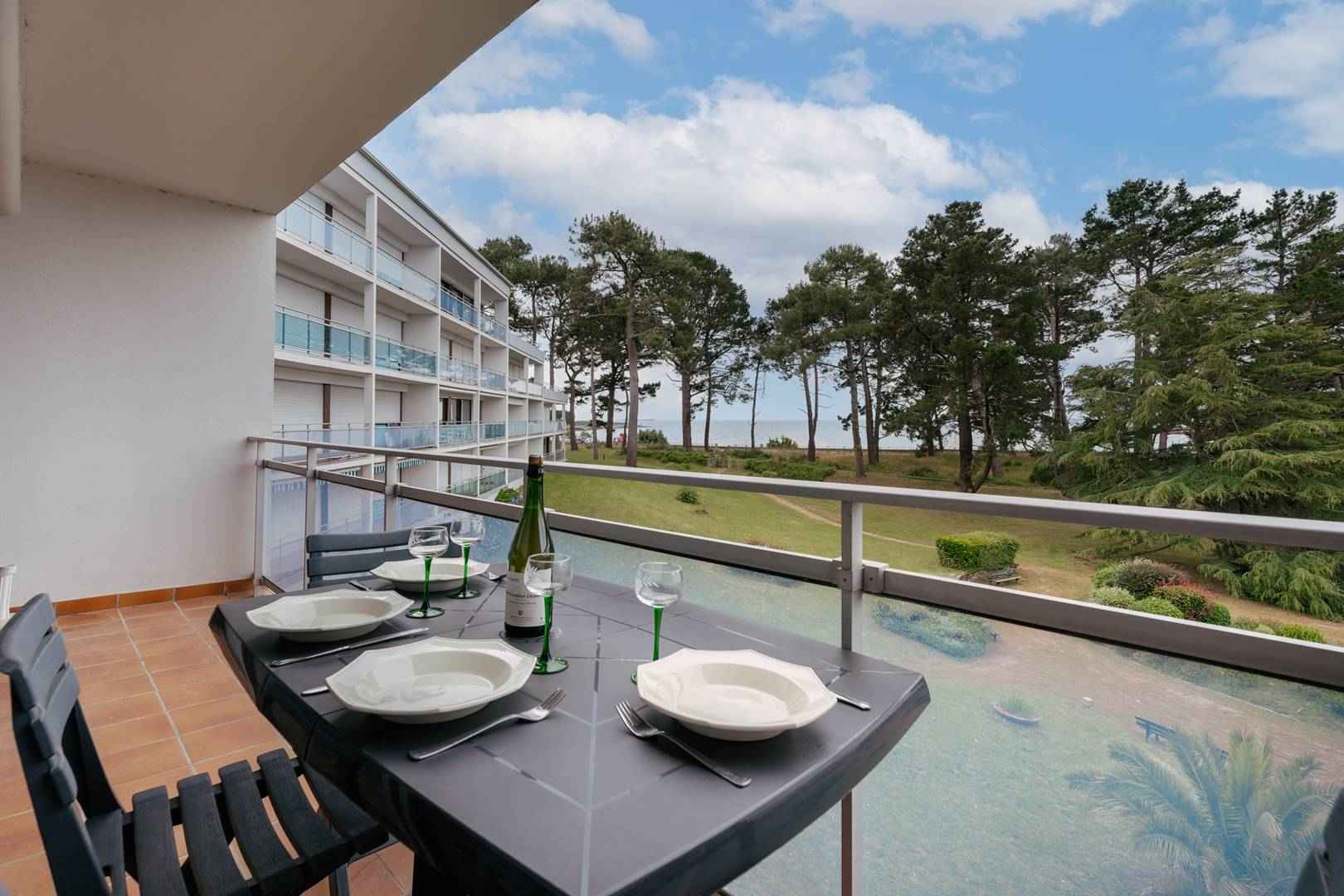 • Equipements : Animaux refusés, Ascenseur, Bouilloire, Cafetière, Chauffage, Four, Four micro-ondes, Grille pain, Lave-vaisselle, Mobilier de jardin, Parking, plaque de cuisson vitrocéramique, Proximité plage, Réfrigérateur, Télévision, Terrasse ou balcon, Vue Mer, WC séparés