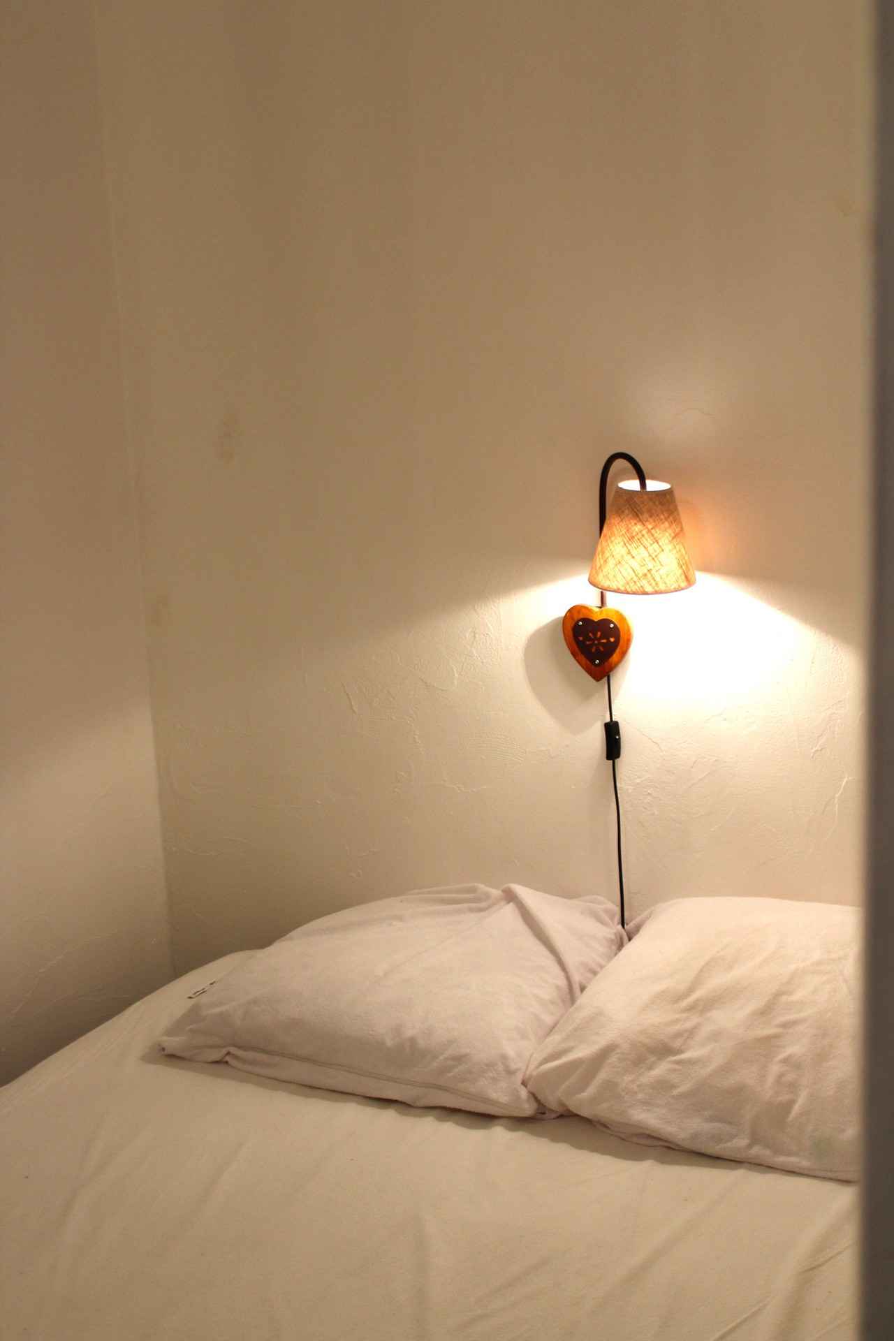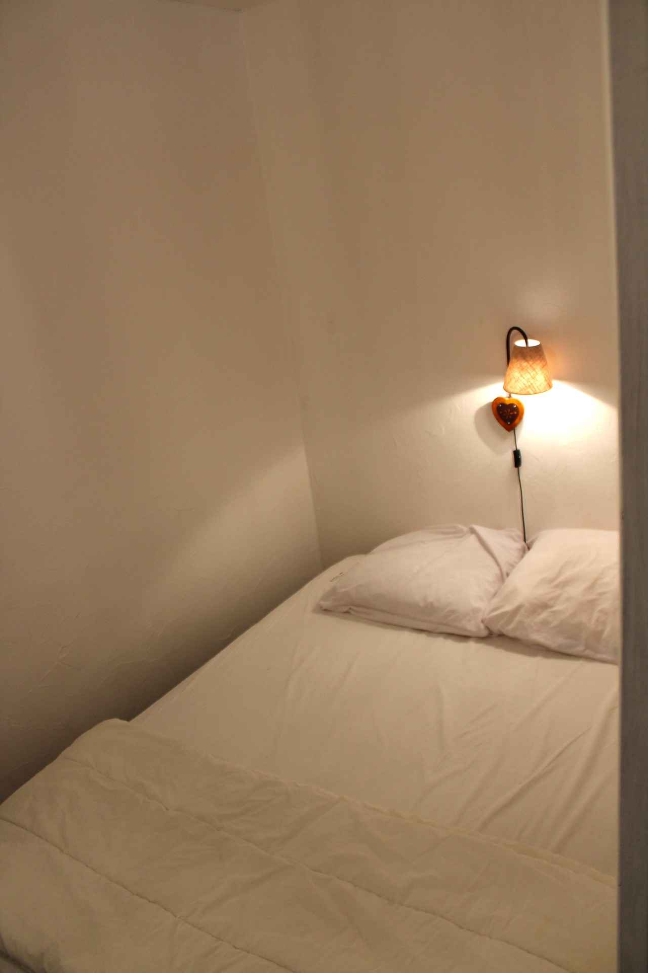 chambre avec lit double (séparée par une cloison du coin repas mais non fermée).