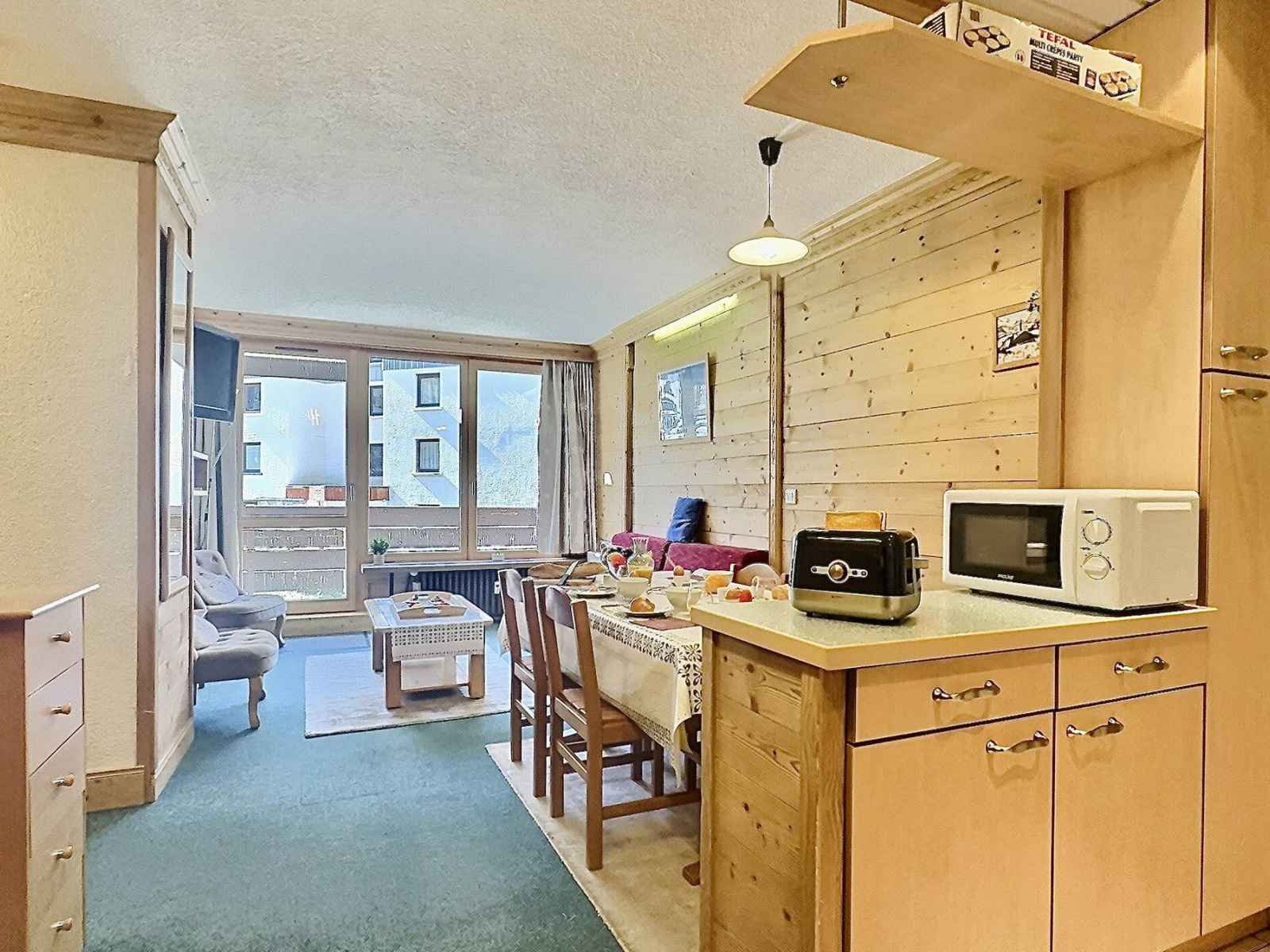 a l'occasion de vos prochaines vacances aux sports d'hiver ou pour un été à la montagne, réservez ce charmant 2 pièces situé à tignes val claret disposant d'un balcon exposé sud est avec une jolie vue sur la grand motte et la station.