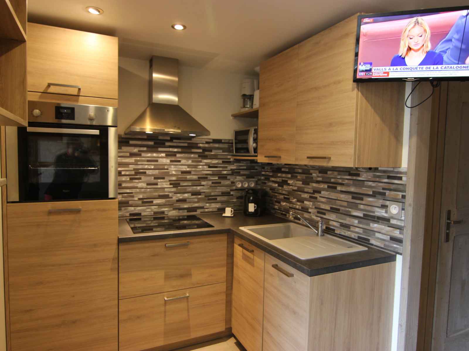 cuisine: plaques induction, réfrigérateur, four, micro-onde et lave-vaisselle.