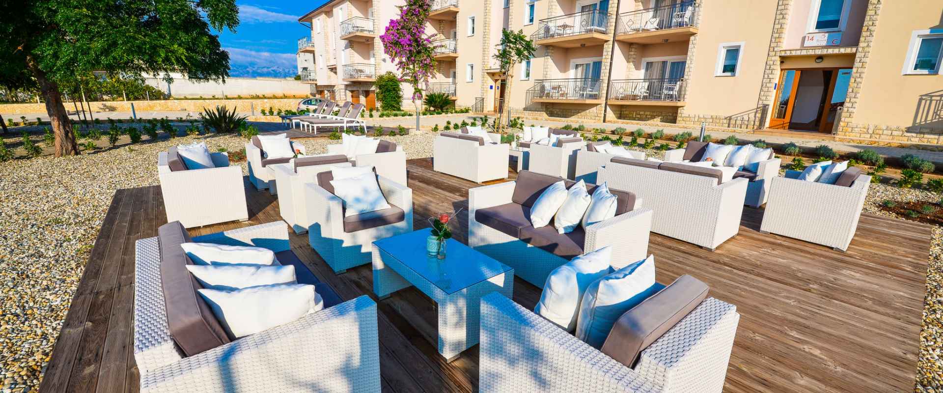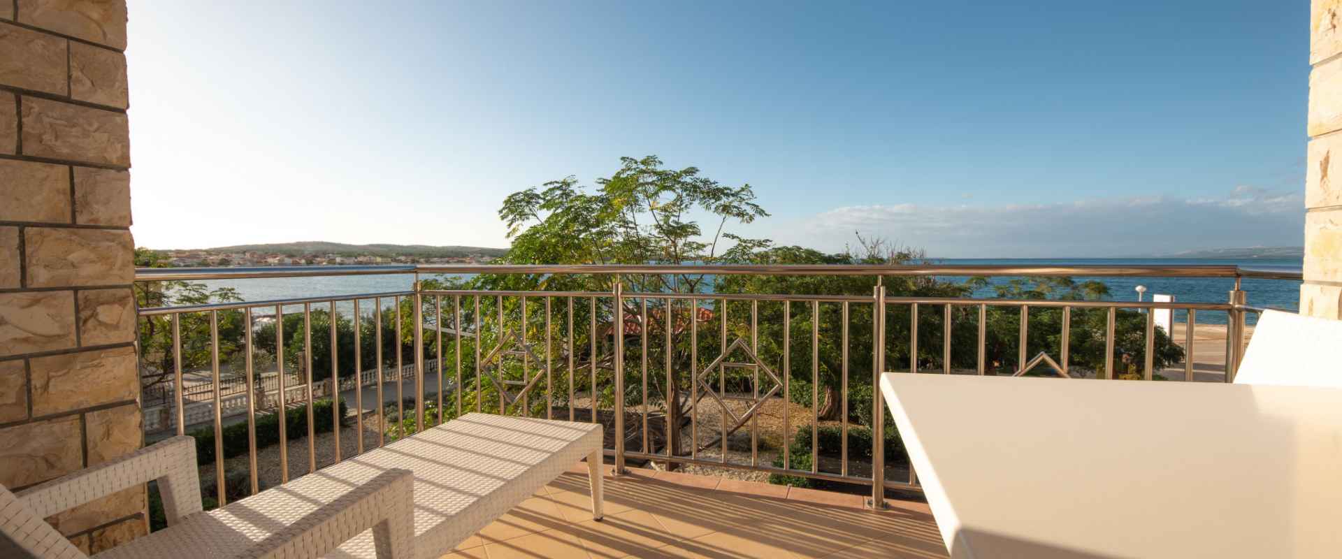 Petite résidence moderne "sunset". À 2 km du centre de vir, situation ensoleillée, à 10 m de la mer, à 10 m de la plage, route à traverser. en commun: terrain 1'000 m2 (clôturé). meubles de jardin, espace de jeux pour les enfants (toboggan, balançoire). infrastructures de la maison: accès internet. place de parking près de la maison sur