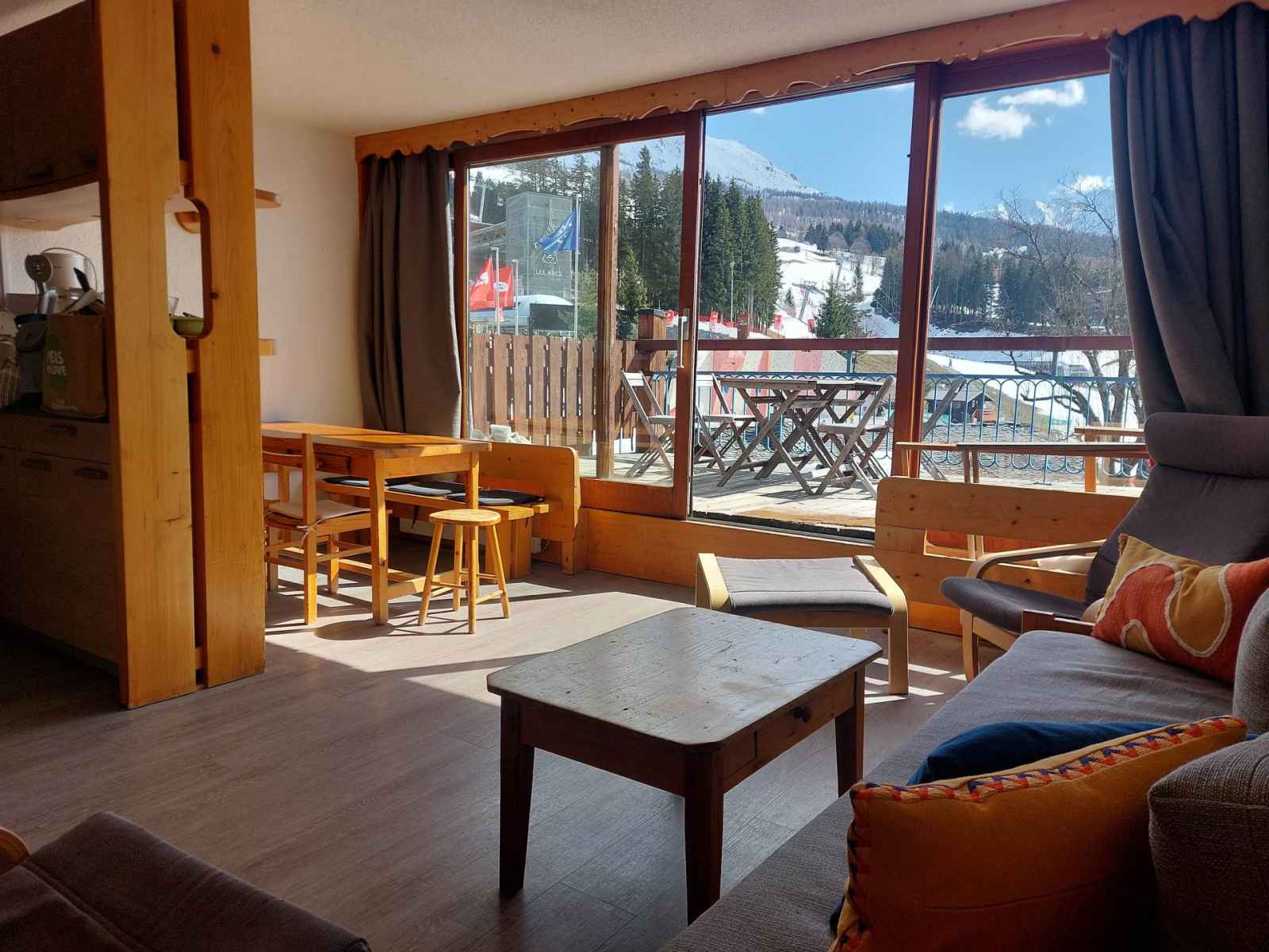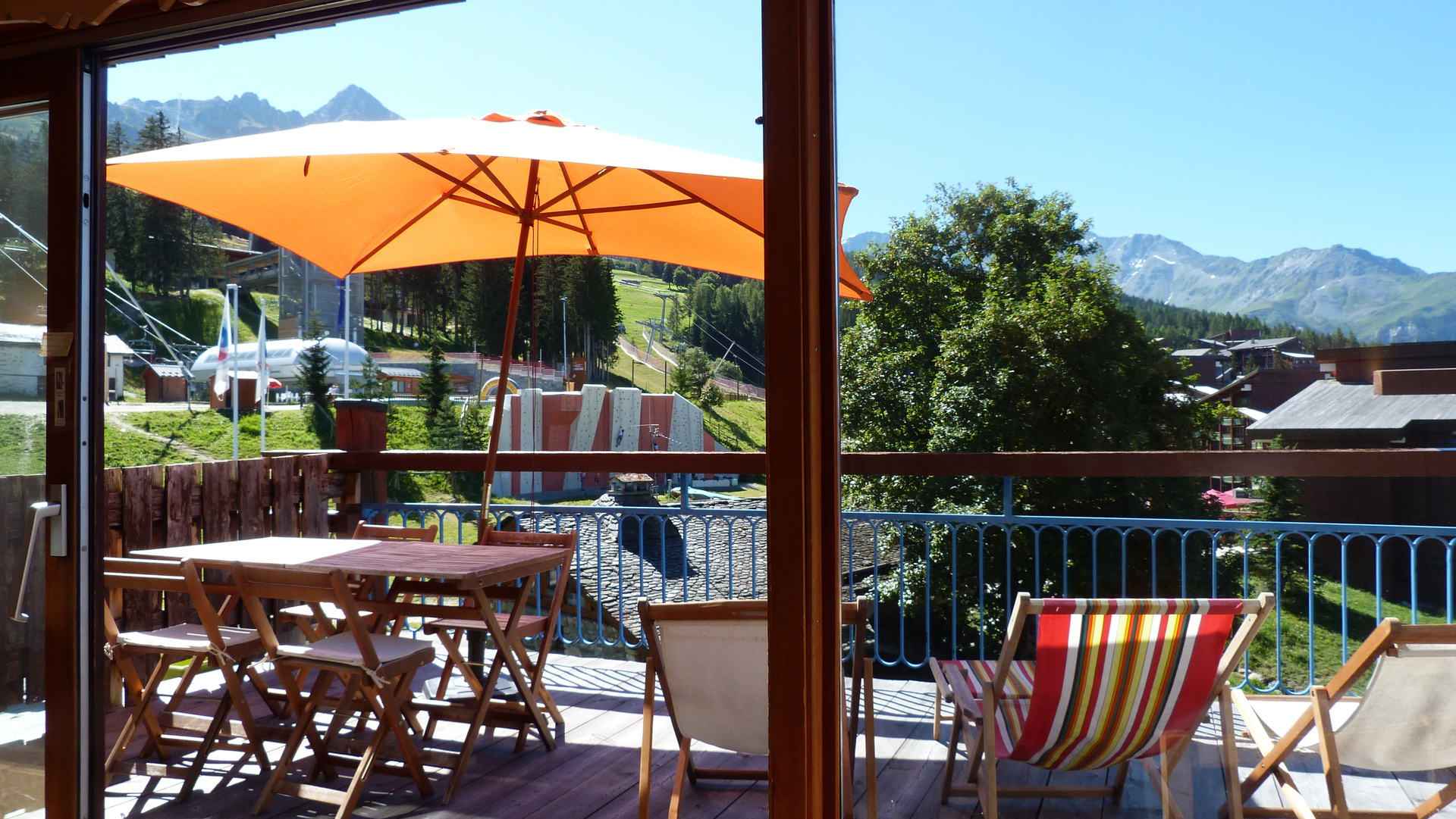 pour vos vacances au ski ou vos vacances d'été aux arcs 1800, réservez cet appartement 3 pièces qui bénéficie d'une magnifique terrasse exposée sud-ouest, vous offrant une vue dégagée sur la station, les sommets et la vallée.