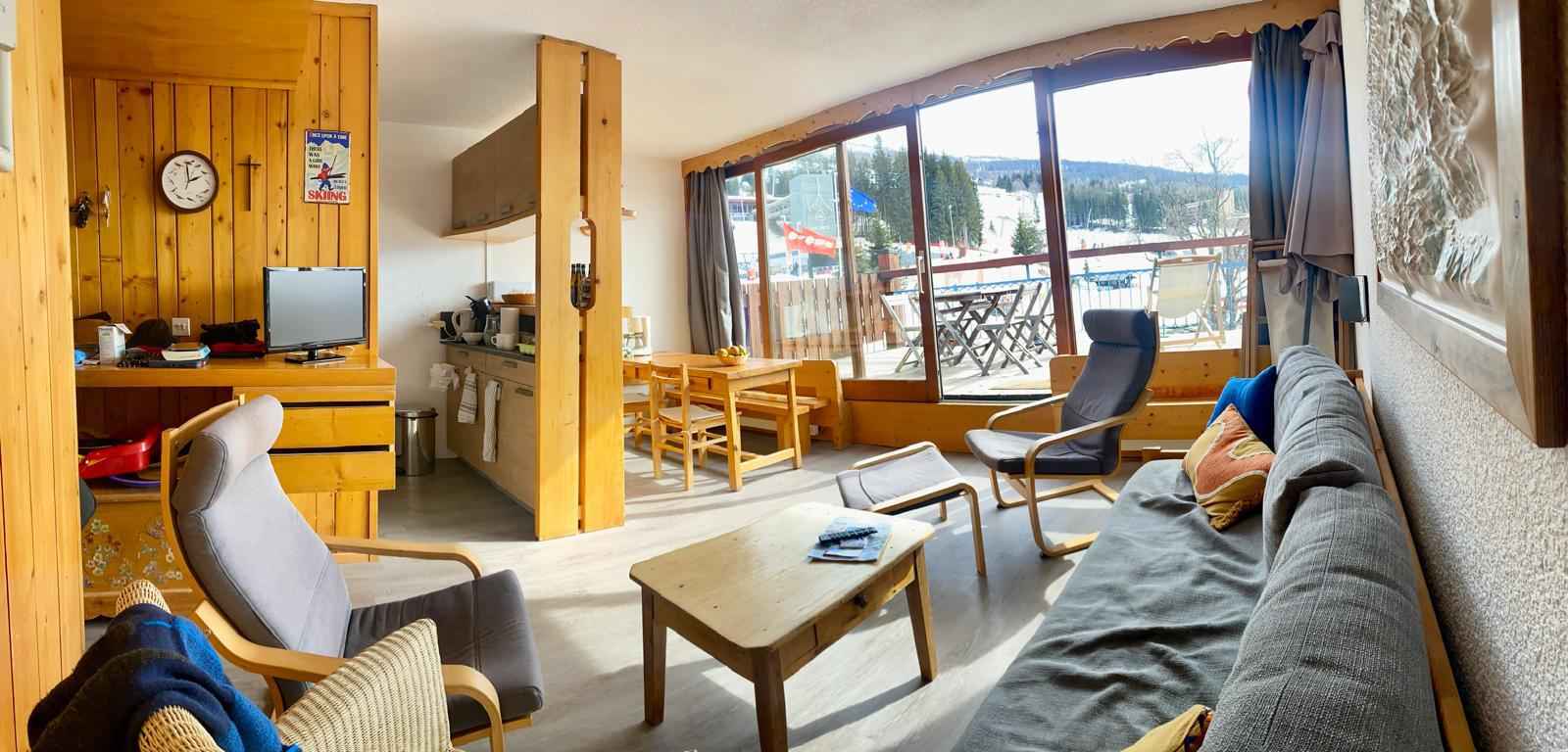 De part la conception du quartier (résidences entourant une place commerçante), les hébergements peuvent subir des nuisances sonores (circulation piétonne, après ski festif, livraisons le matins...). Non recommandé aux vacanciers recherchant une situation parfaitement calme.