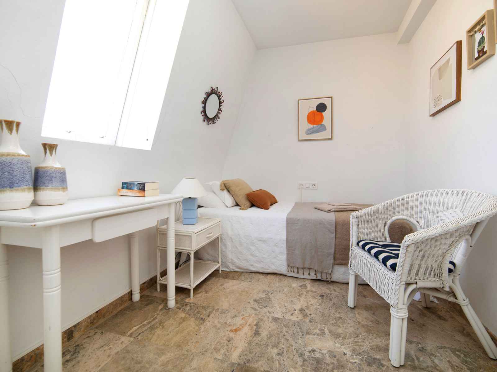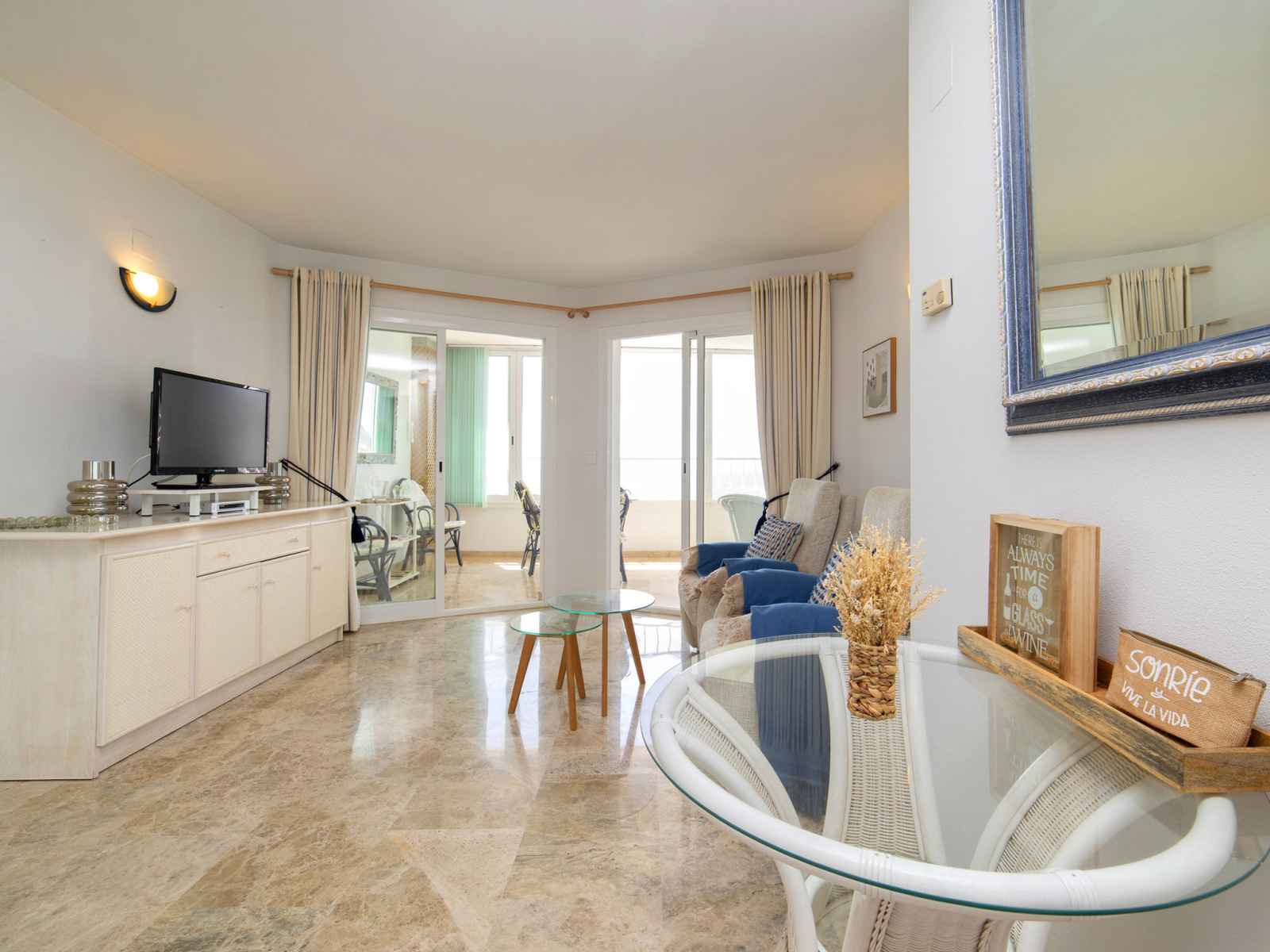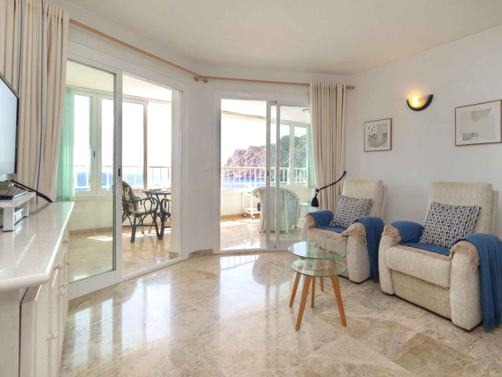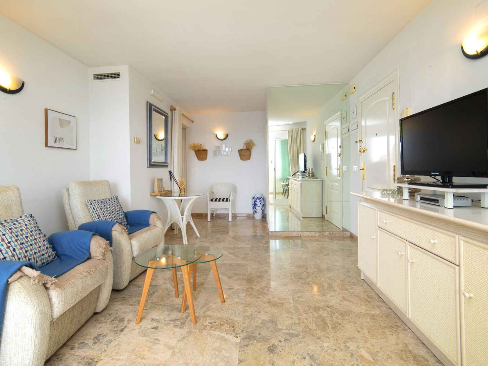cm), air-conditionné et chauffage à air chaud. 1 chambre avec 1 lit (90 cm, longueur 190 cm), air-conditionné et chauffage à air chaud. Cuisine (lave-vaisselle, 3 plaques vitrocéramiques, grille-pain, bouilloire électrique, micro-ondes, congélateur, cafetière électrique). Douche/WC. Grande terrasse. Meubles de terrasse. Vue panoramique sur la mer. A disposition: lave-linge, fer à repasser, chaise haute pour enfant, lit bébé jusqu'à 2 ans, sèche-cheveux. Internet (Connexion WIFI, gratuit). Place de parking No 2 (couvert). Veuillez noter: parking pour 1 petite voiture. Maximum 1 animal/ chien de petite taille autorisé. VT-488091-A // Reg. Nr.: ESFCTU00000302900046695800000000000000000VT-488091-A7