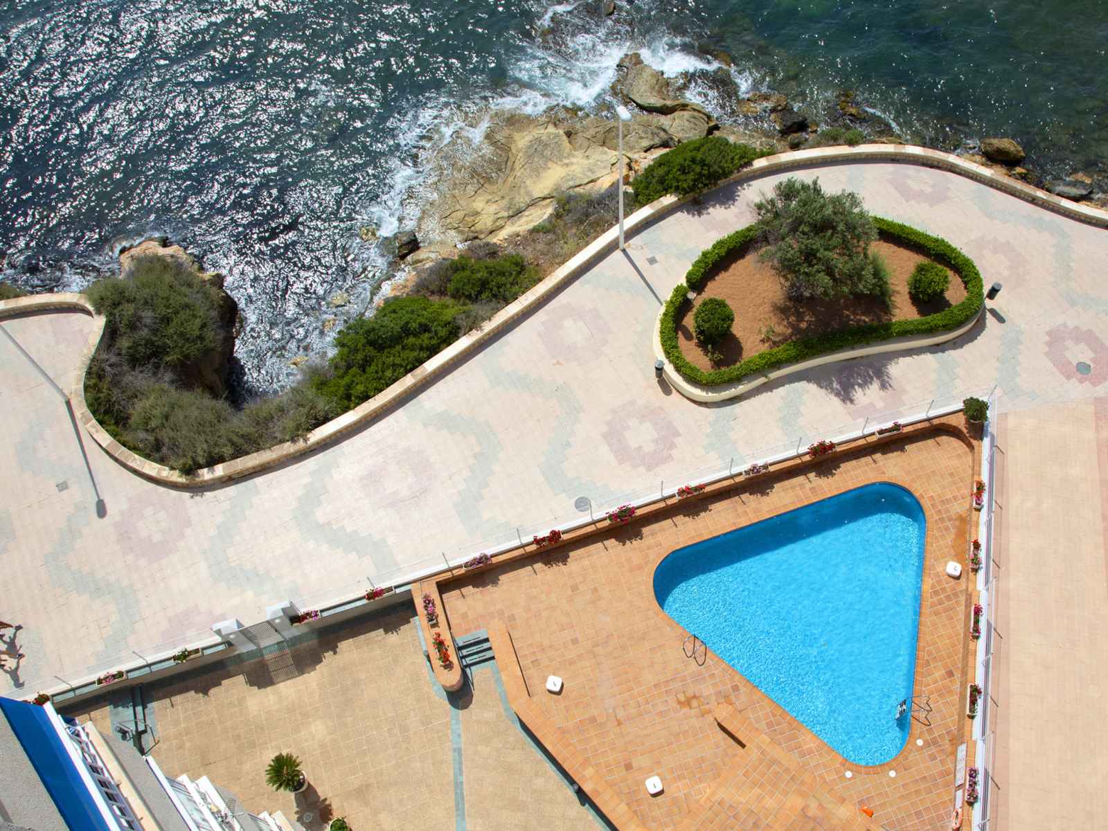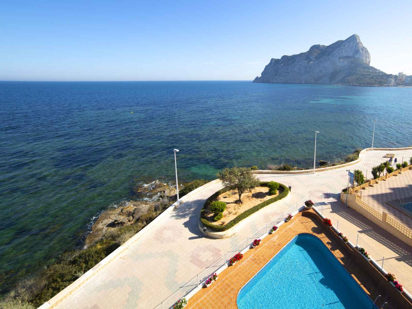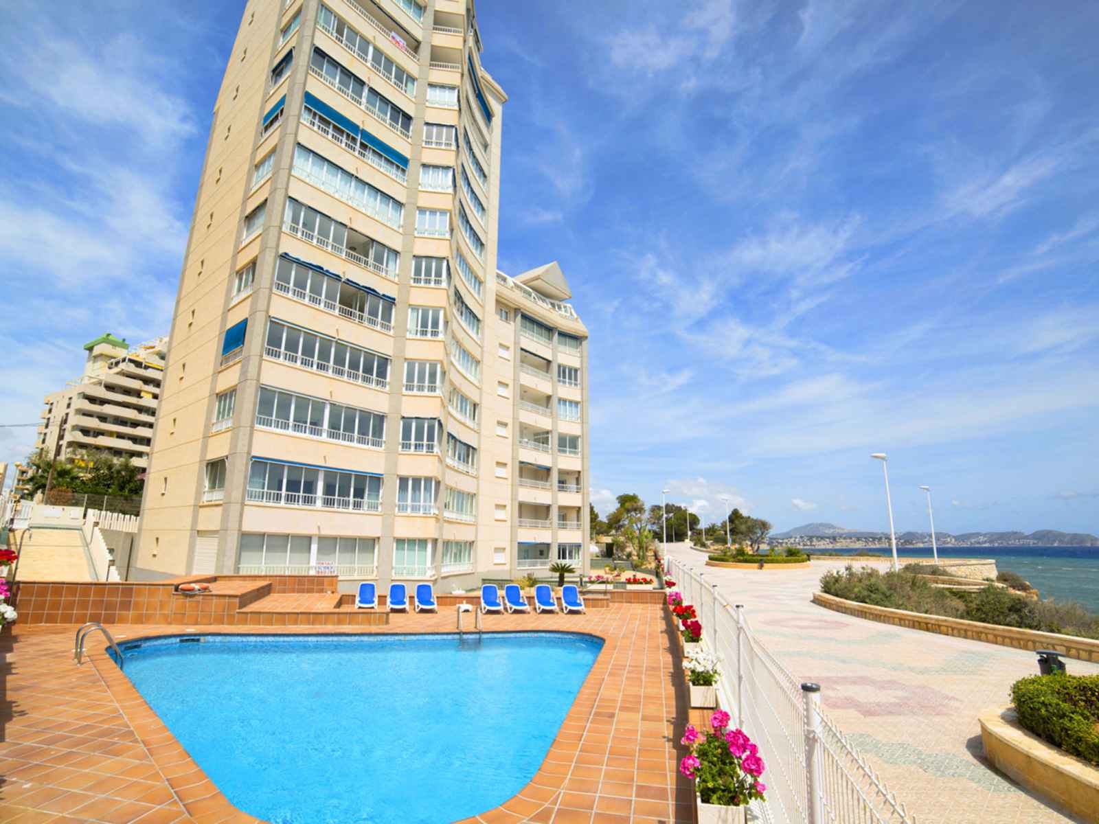 Playa levante: belle petite résidence "orellana", de 13 étages. dans la localité, à 3 km du centre de calpe, situation tranquille, ensoleillée, zone avec peu de trafic, juste au bord de la mer, à 50 m de la plage, dans une impasse. en commun: terrain (clôturé), piscine (10 x 10 m, disponibilité saisonnière: 01.jan. - 31.dec.). douche/wc