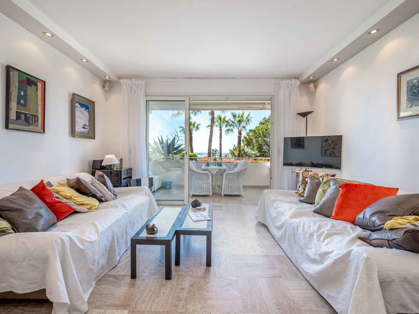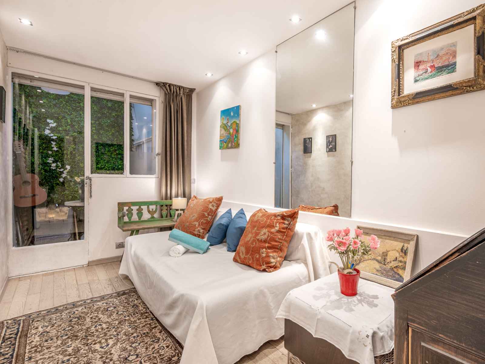 Apt 3 pièces 85 m2, au rez-de-chaussée. aménagement confortable et agréable: séjour/salle à manger avec 1 divan-lit double (130 cm, longueur 190 cm), tv (écran plat), lecteur cd, chaîne stéréo et air-conditionné. sortie sur la terrasse. 1 chambre avec 1 grand-lit (160 cm, longueur 200 cm), air-conditionné. sortie sur la terrasse. 1