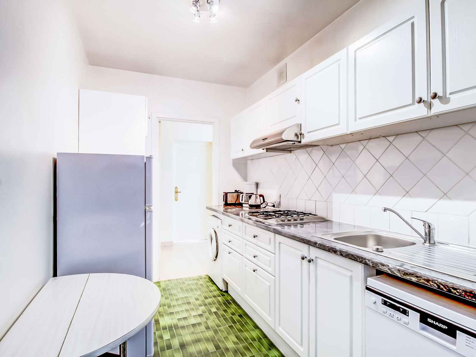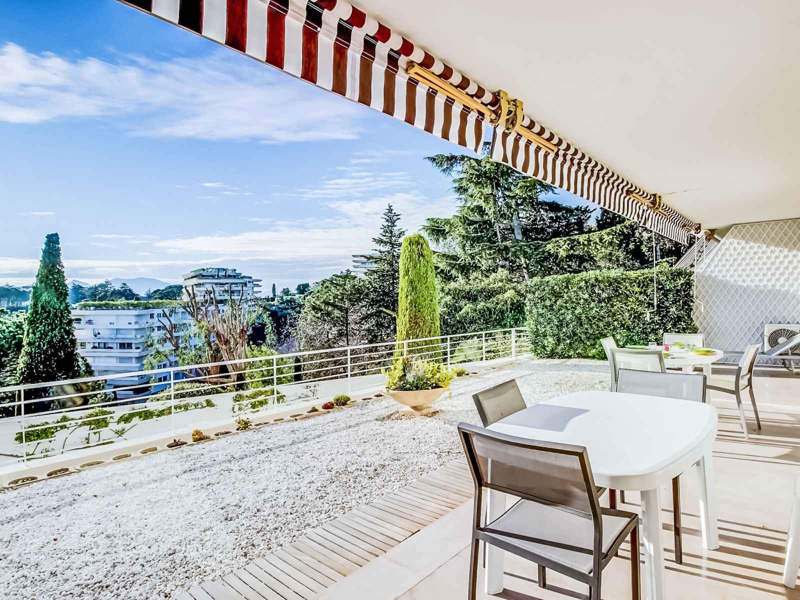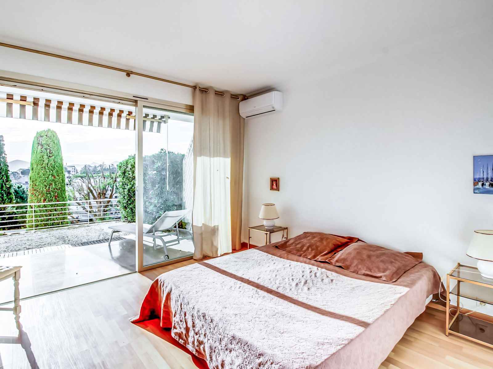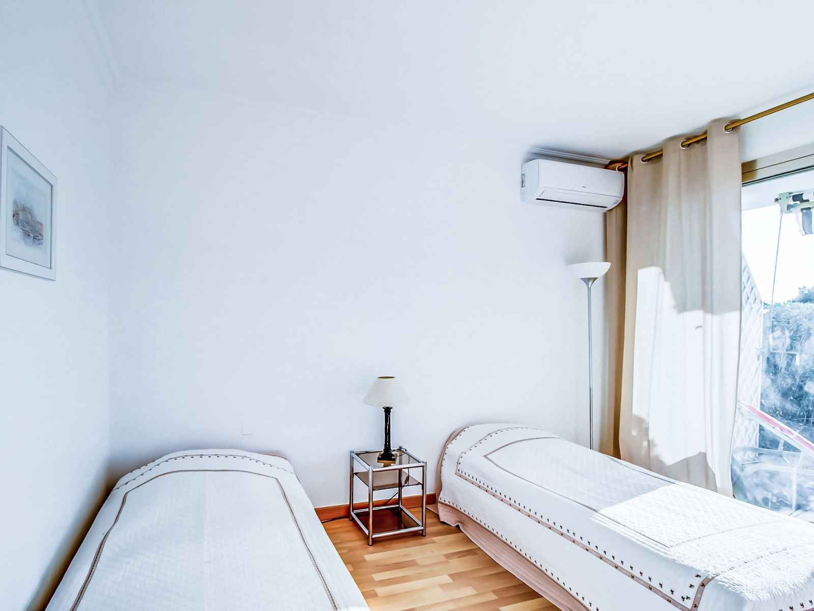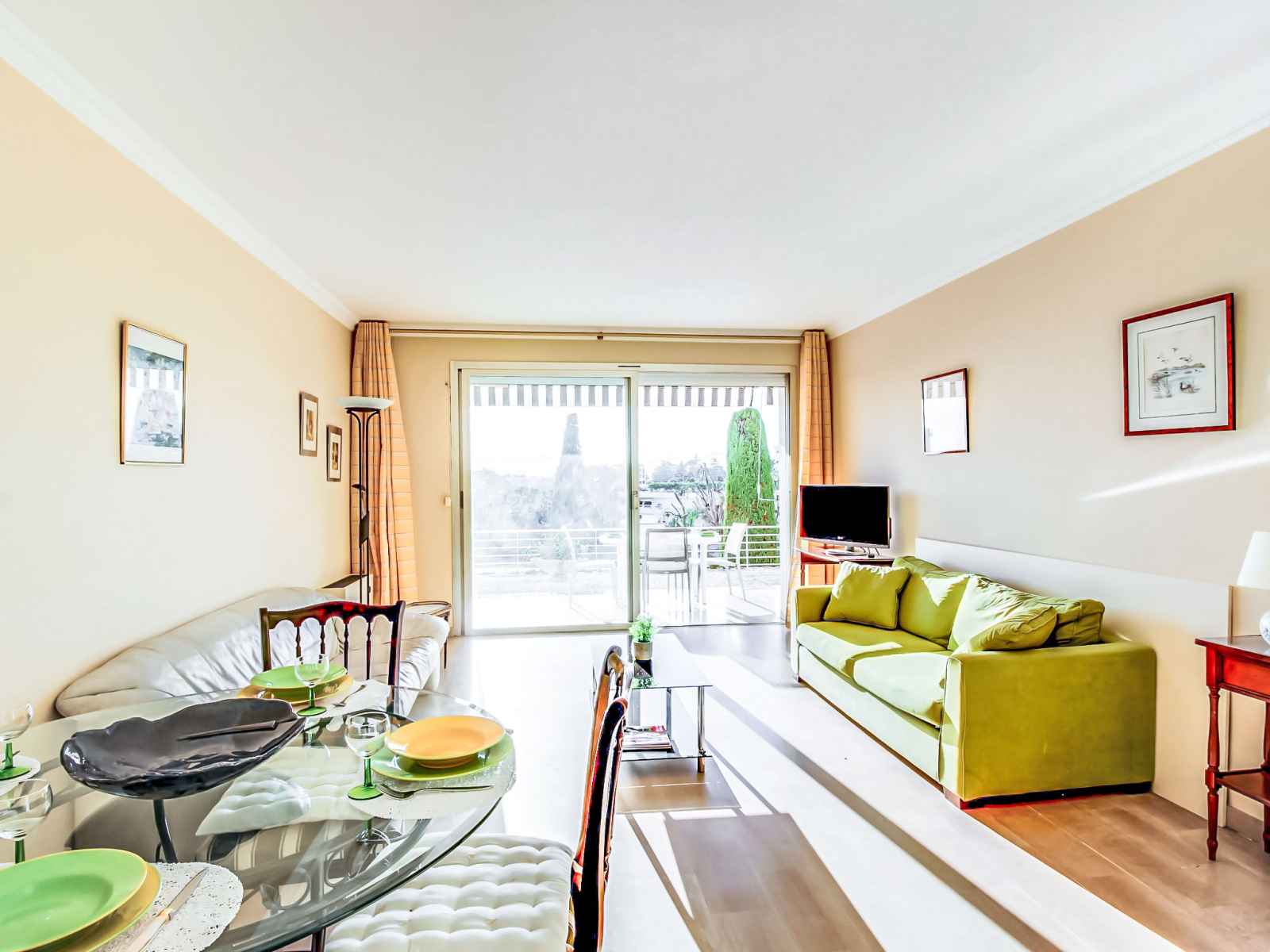 Apt 3 pièces 110 m2, au rez-de-chaussée. séjour/salle à manger avec 1 divan-lit double (160 cm, longueur 195 cm), tv. sortie sur la terrasse. 1 chambre avec 1 grand-lit (160 cm, longueur 200 cm), bain/wc et air-conditionné. sortie sur la terrasse. 1 chambre avec 2 lits (80 cm, longueur 190 cm), bain/wc et air-conditionné. sortie sur la
