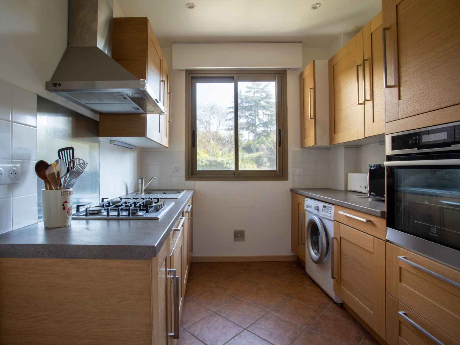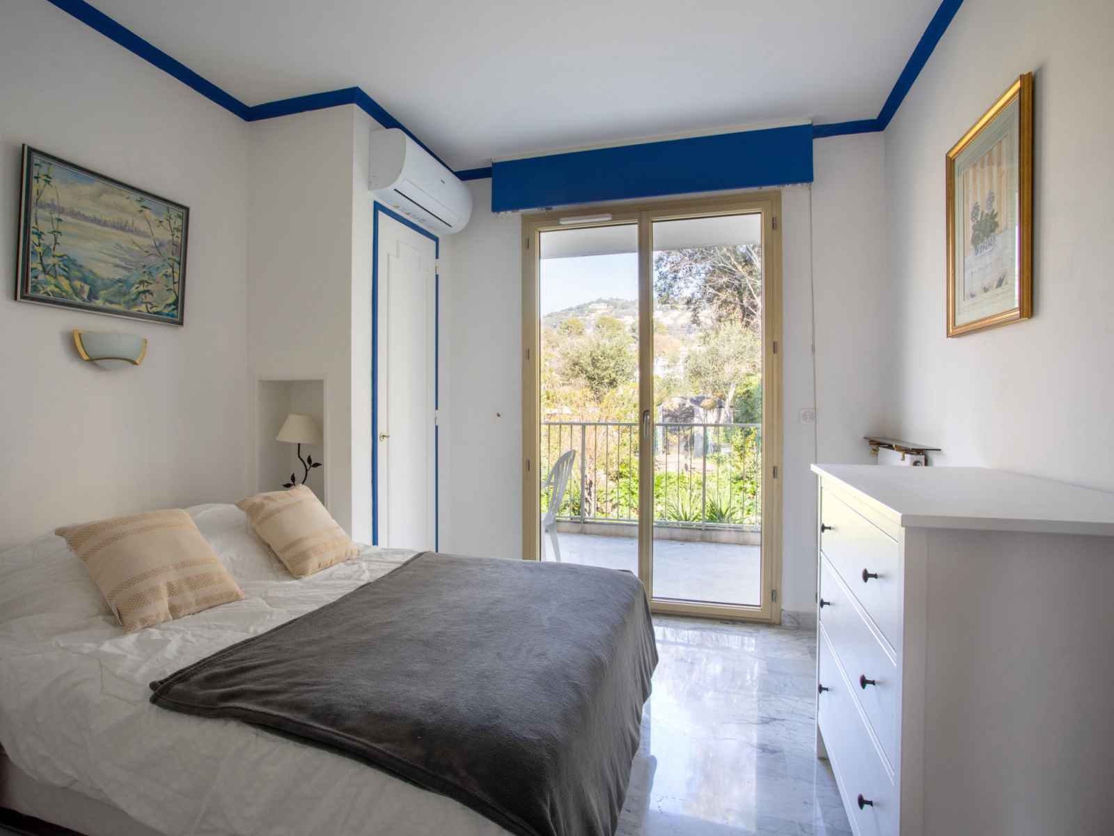 longueur 190 cm), air-conditionné. Sortie sur la terrasse. Cuisine (5 plaques de cuisson, four, lave-vaisselle, grille-pain, bouilloire électrique, micro-ondes, congélateur, cafetière électrique). Douche, WC séparé. Terrasse 15 m2, situation sud terrasse 18 m2, situation nord. Meubles de terrasse, chaises longues (2). Vue sur le jardin. A disposition: lave-linge. Internet (Connexion WIFI, gratuit). Veuillez noter: logement non-fumeur. Détecteur de fumée. Annonce d'un particulier (art 155, IV du CGI). 06029028138MX