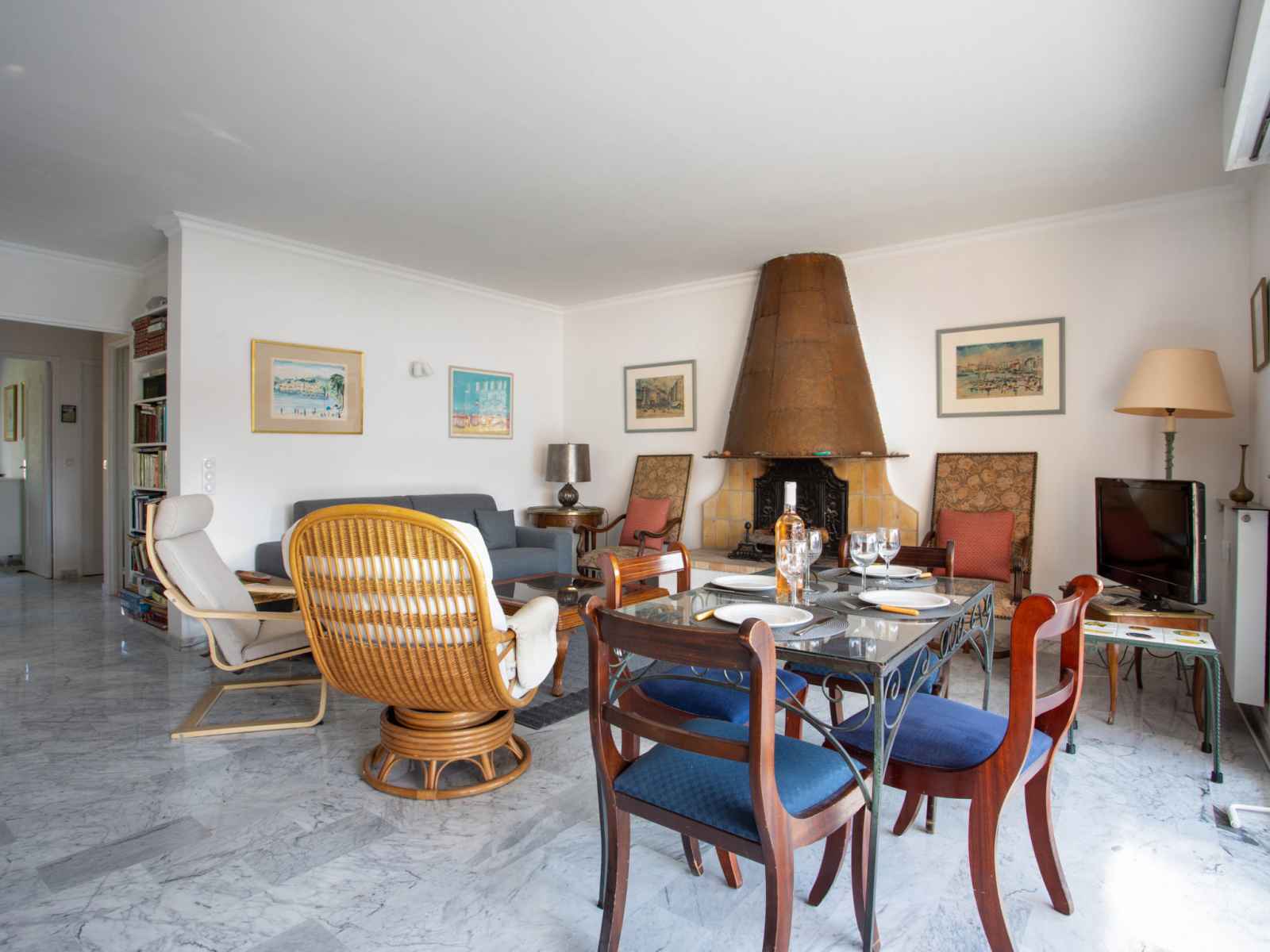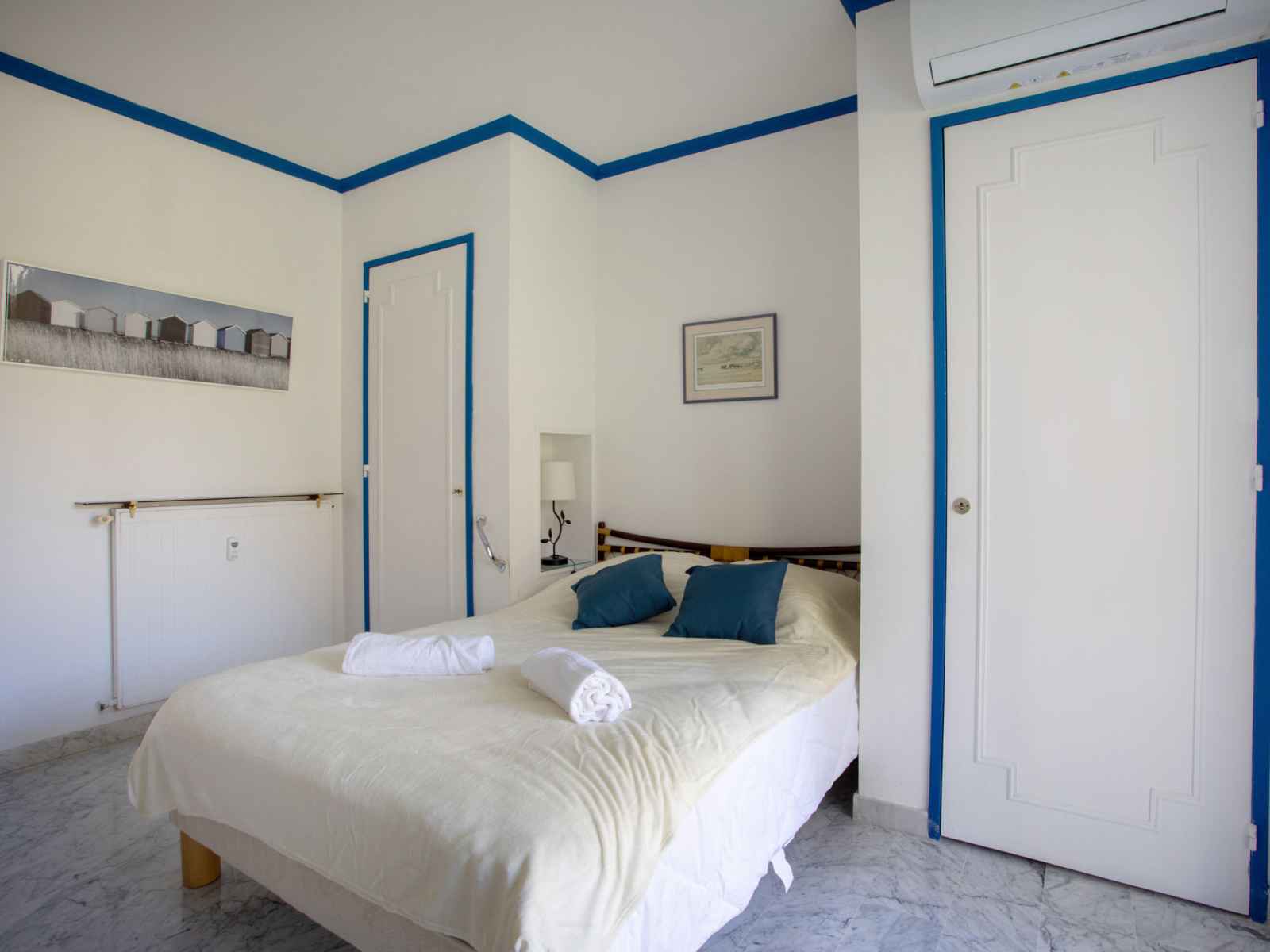 Apt 3 pièces 80 m2 au 3ème étage. aménagement confortable: séjour/salle à manger avec baie vitrée avec 1 divan-lit double (140 cm, longueur 190 cm), tv (écran plat). sortie sur la terrasse. 1 chambre avec 1 grand-lit (140 cm, longueur 190 cm), bain/douche/wc et air-conditionné. sortie sur la terrasse. 1 chambre avec 1 grand-lit (140 cm,