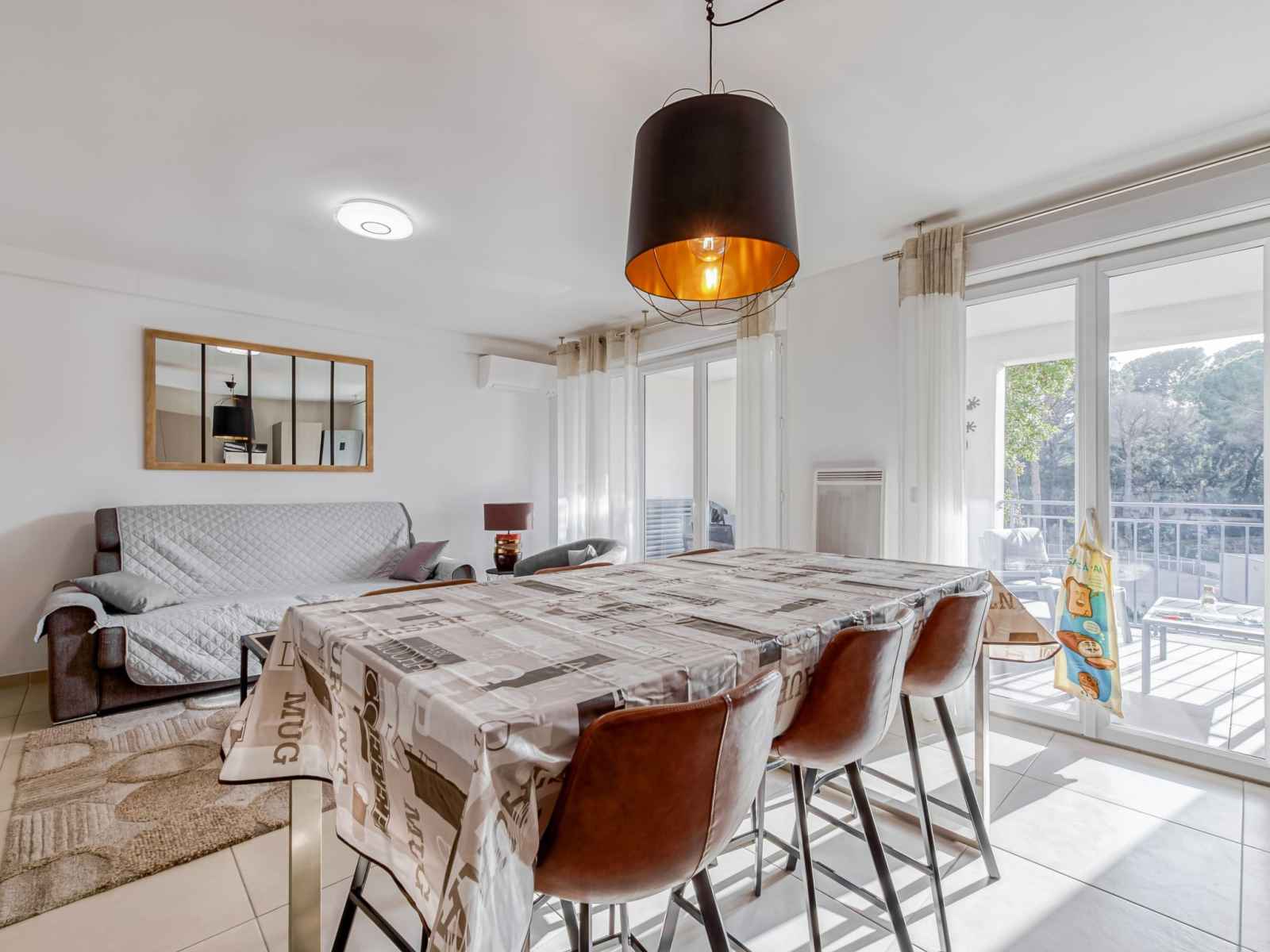 Apt 3 pièces 67 m2 au 1er étage, situation sud-ouest. aménagement agréable et moderne: séjour avec 1 divan-lit double (160 cm, longueur 200 cm), table pour les repas, tv et chaînes de tv internationales (écran plat), lecteur cd, dvd et volet roulant électrique. sortie sur la terrasse. 1 chambre avec 1 grand-lit (160 cm, longueur 200 cm),