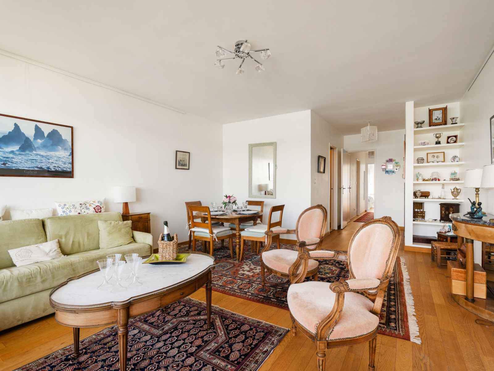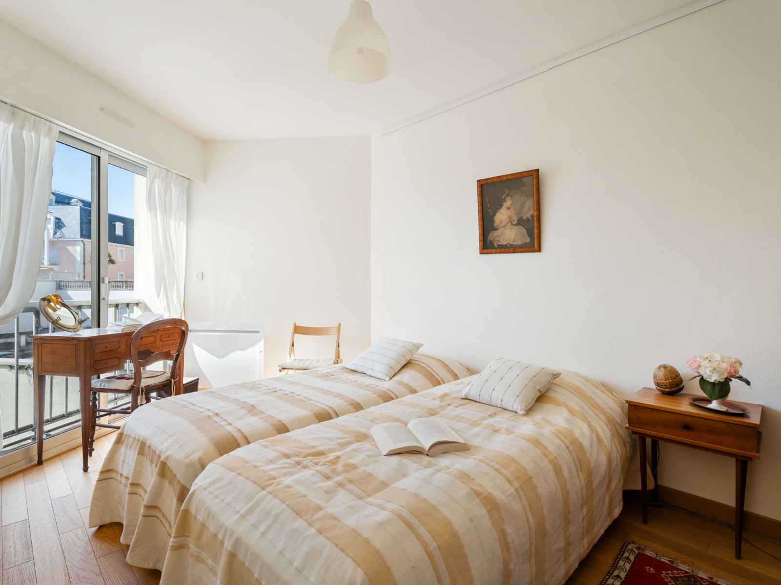 Apt 3 pièces 70 m2 au 2ème étage. aménagement confortable: séjour/salle à manger avec 1 divan-lit double (160 cm, longueur 190 cm), tv. 1 chambre avec 1 grand-lit (140 cm, longueur 200 cm), tv. 1 chambre avec 2 lits (90 cm, longueur 200 cm). cuisine 20 m2 (four, lave-vaisselle, 4 plaques à induction, grille-pain, bouilloire électrique,