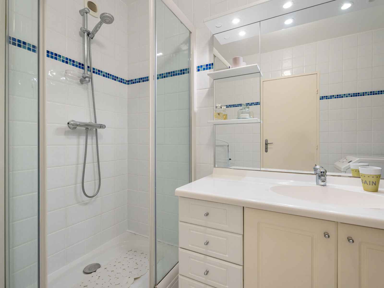 micro-ondes, cafetière électrique, Capsules pour machine à café (Nespresso) (NON INCLUSES)). Douche, WC séparé. Chauffage électrique. Balcon 8 m2. Meubles de terrasse. Vue sur la mer. Place de parking No 18. Veuillez noter: détecteur de fumée. Annonce d'un particulier (art 155, IV du CGI).