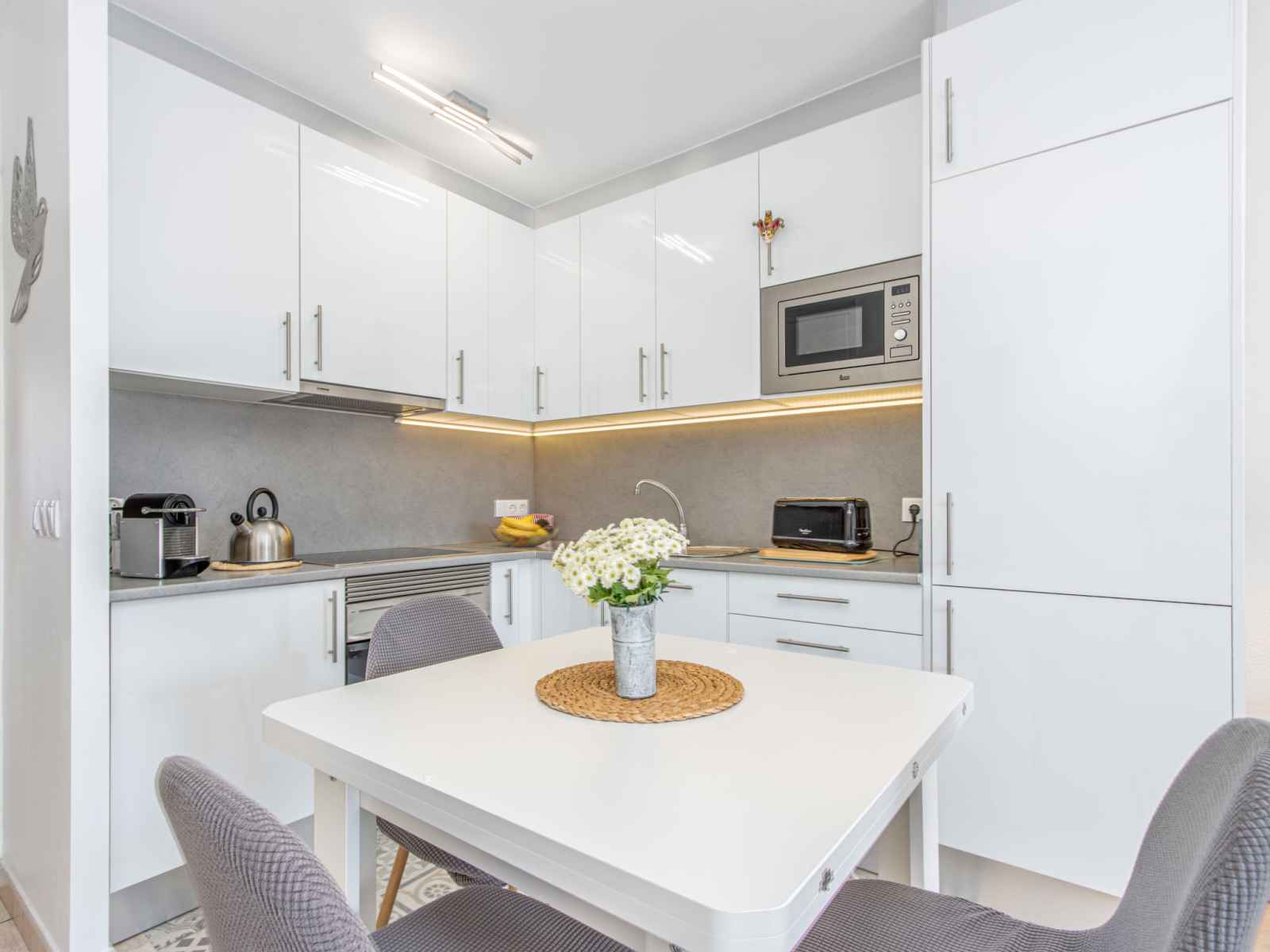 balcon. 1 chambre avec 1 x 2 lits superposés (140 cm, longueur 190 cm). Cuisine (four, lave-vaisselle, 4 plaques vitrocéramiques, grille-pain, bouilloire électrique, micro-ondes, congélateur, gril, cafetière électrique). Douche/WC, WC séparé. Terrasse 15 m2. Meubles de terrasse. Vue sur la localité. A disposition: lave-linge, fer à repasser, sèche-cheveux. Internet (Connexion WIFI, gratuit). Veuillez noter: logement non-fumeur. TV seulement FR, ES. Sans ascenseur. HUTG-064800 // Reg. Nr.: ESFCTU00001702000015296700000000000000000HUTG-0648001