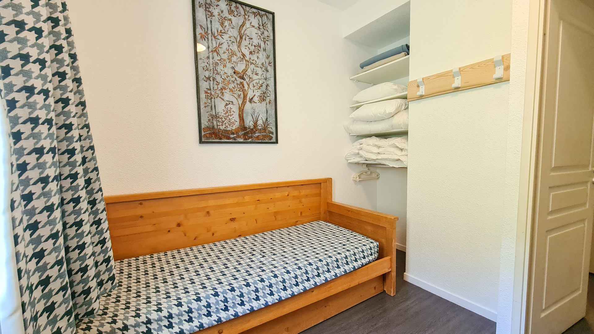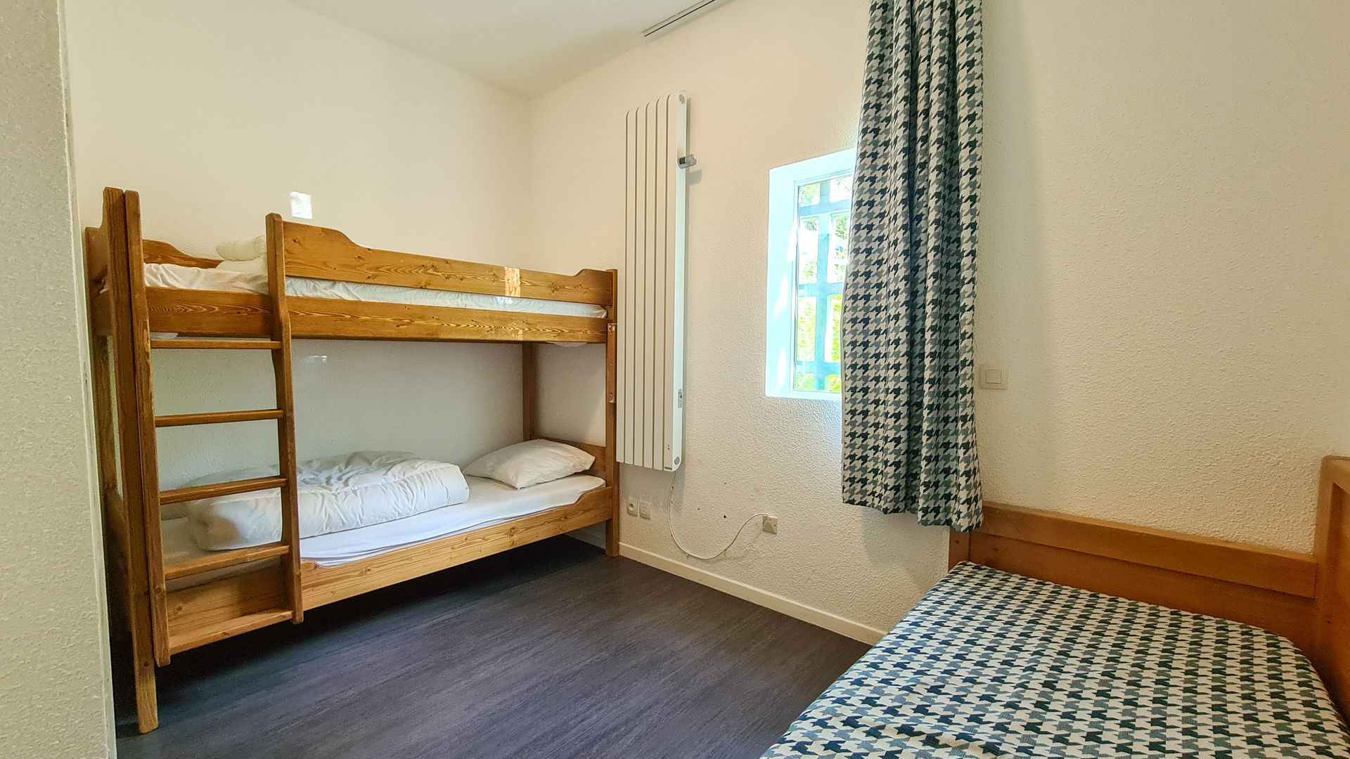 - chambre 2 nord : 1 jeu de lits superposés, lit simple+lit gigogne (en rez de jardin)