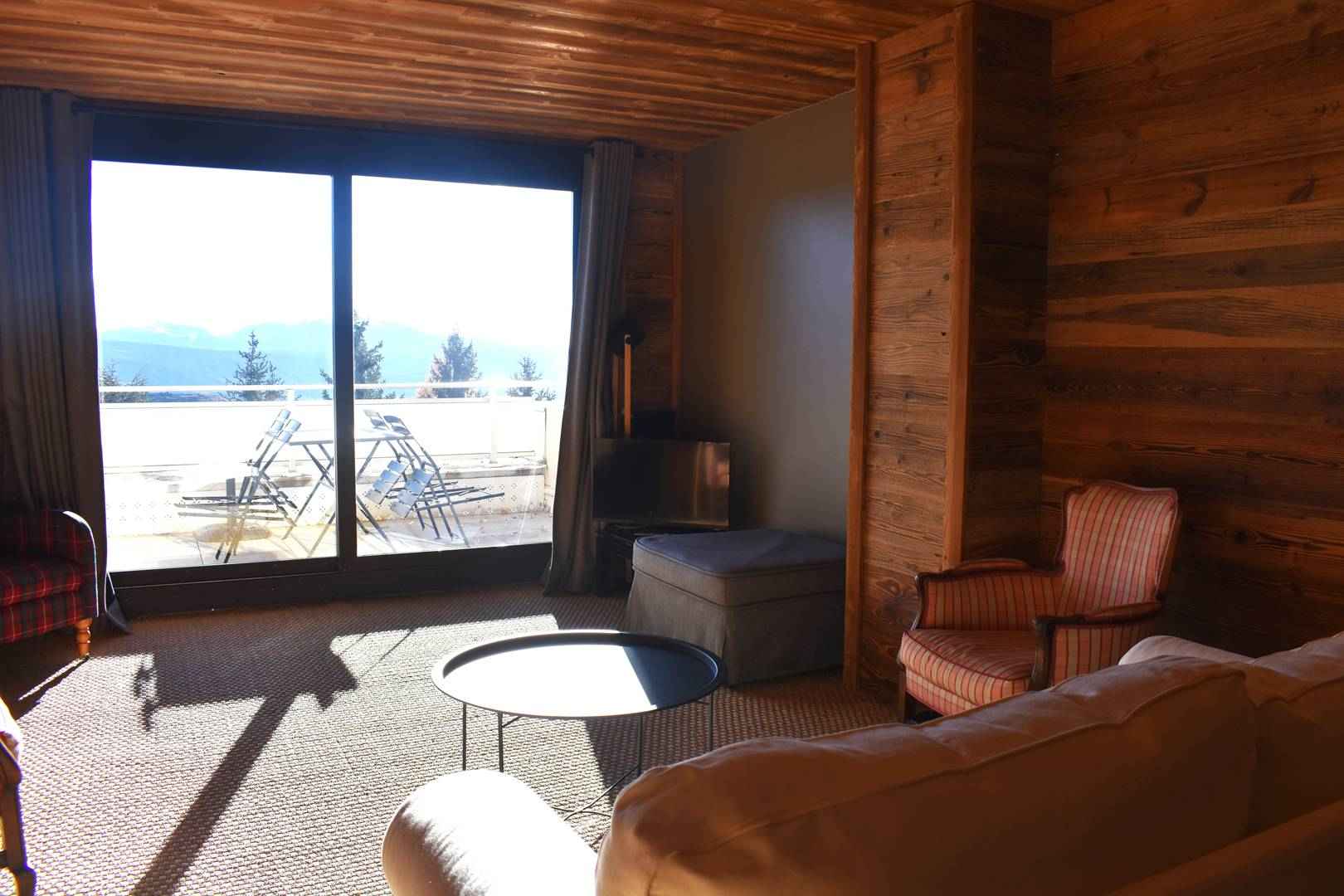 il est composé d'une pièce de vie comprenant: une grande table à manger ainsi que d'un canapé, de 3 fauteuils, d'une télévision, tout cela donnant sur la grande terrasse afin de profiter de la vue