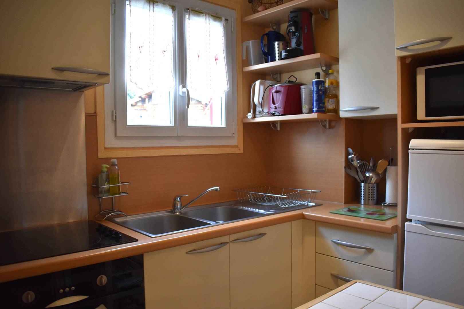 Cuisine indépendante équipée avec fenêtre.