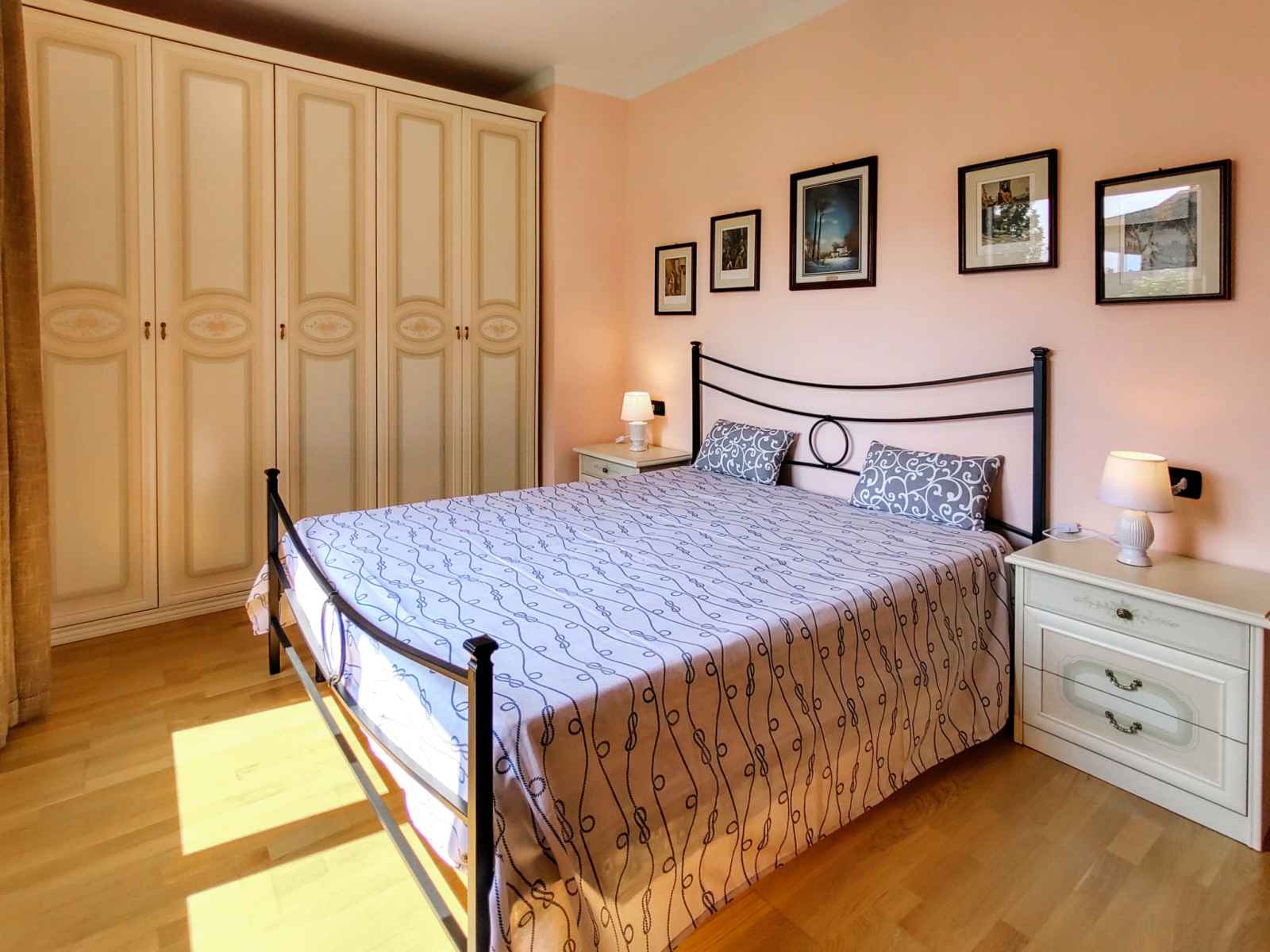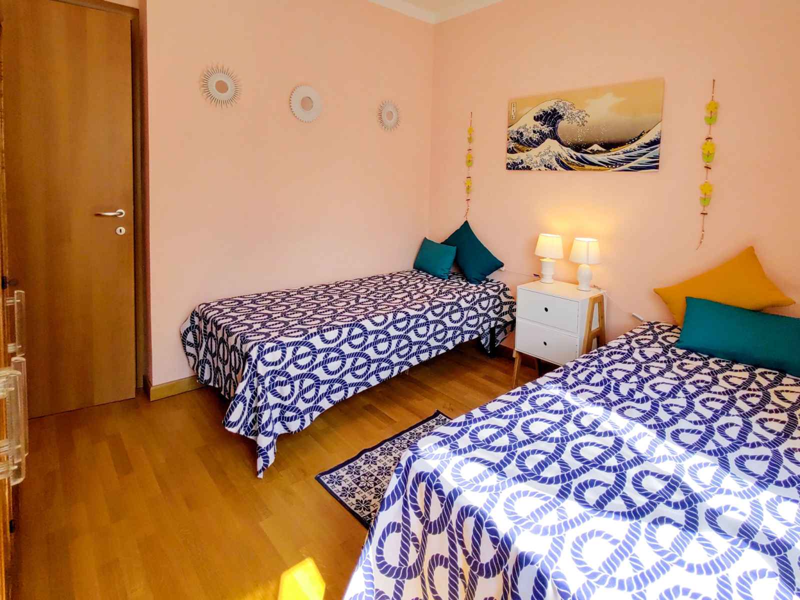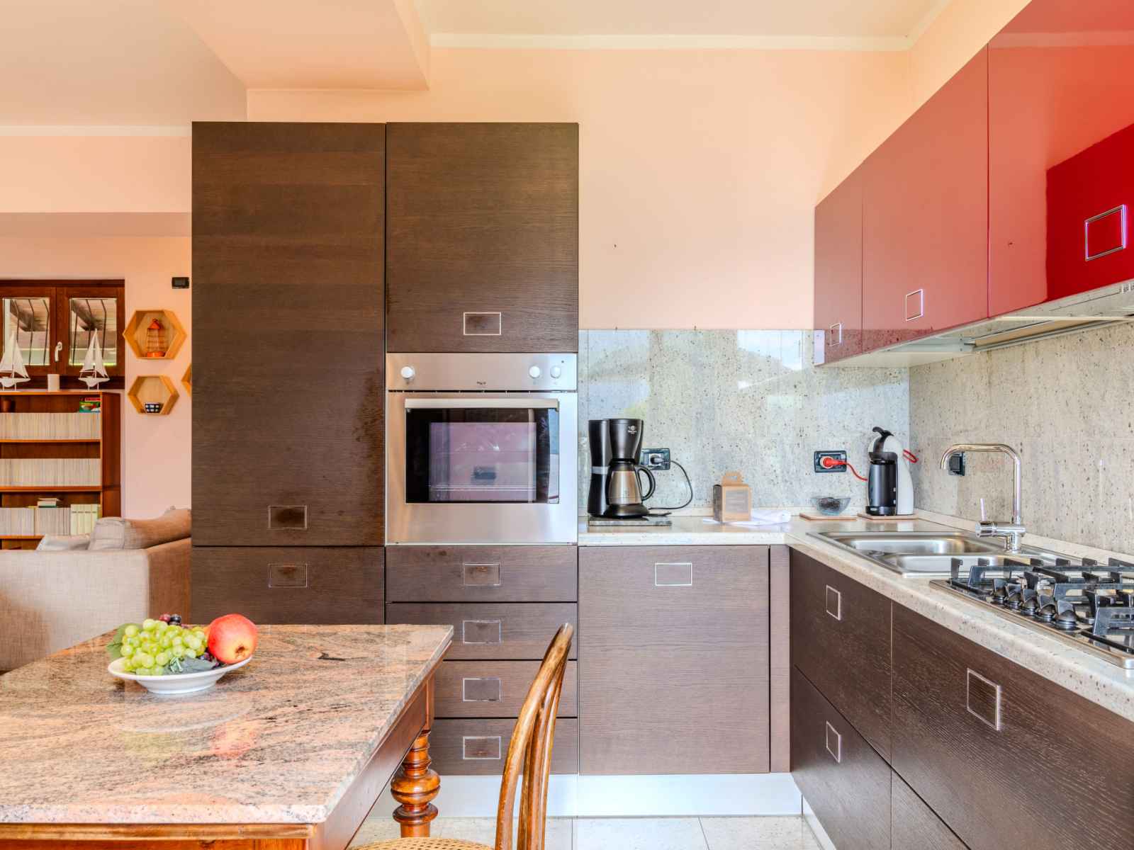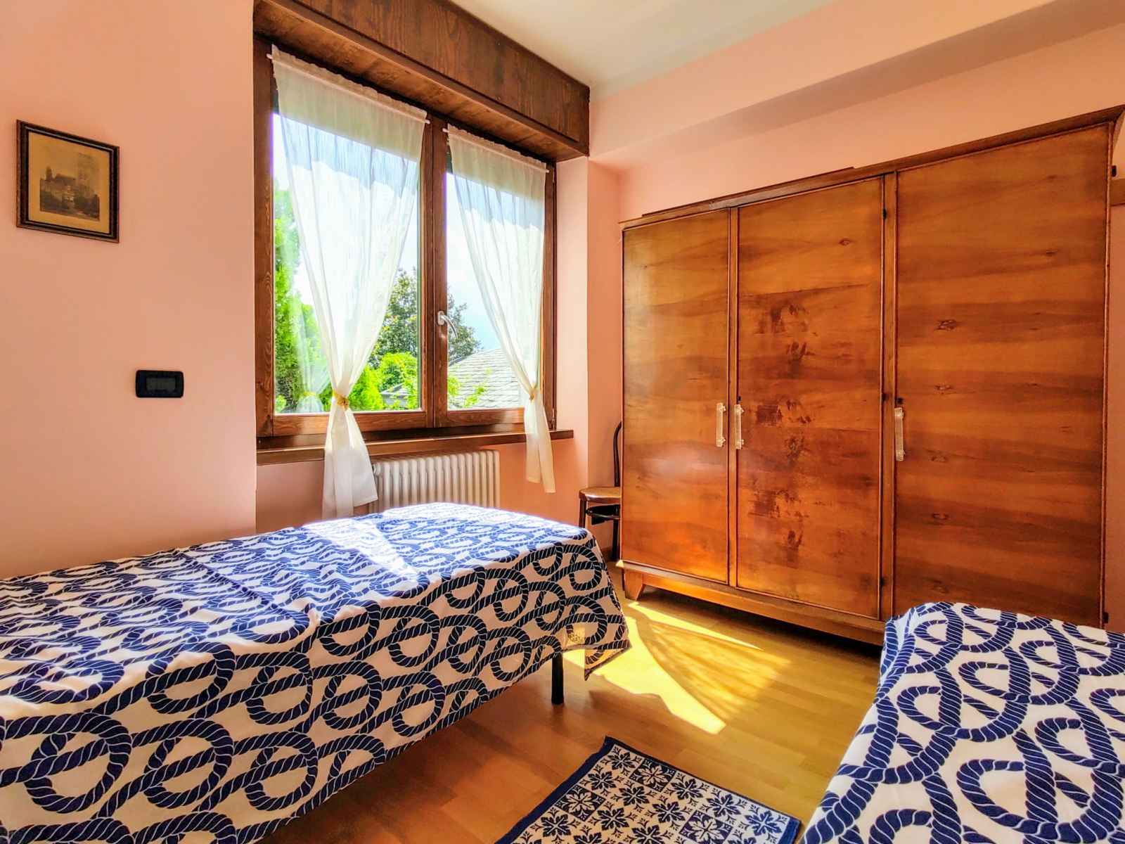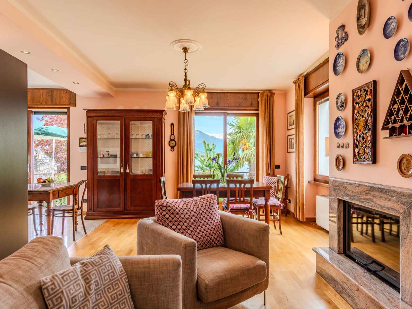 "bruna", apt 3 pièces 85 m2 au 1er étage. séjour/salle à manger avec porte coulissante avec cheminée (uniquement à titre de décoration), tv. sortie sur le balcon. 1 chambre avec 2 lits. 1 chambre double. cuisine ouverte (5 plaques de cuisson, four, lave-vaisselle, grille-pain, micro-ondes, cafetière électrique). sortie sur le balcon.