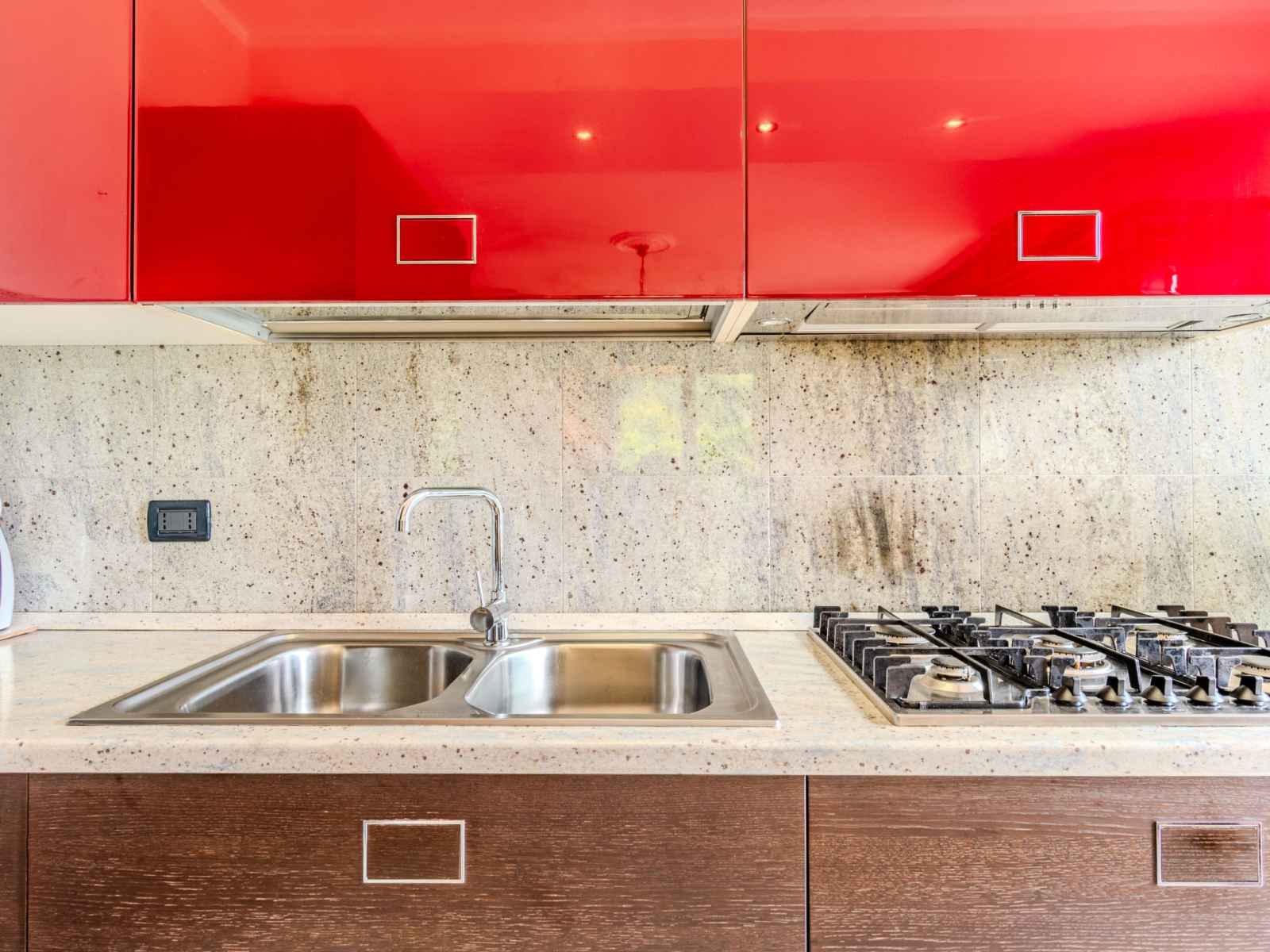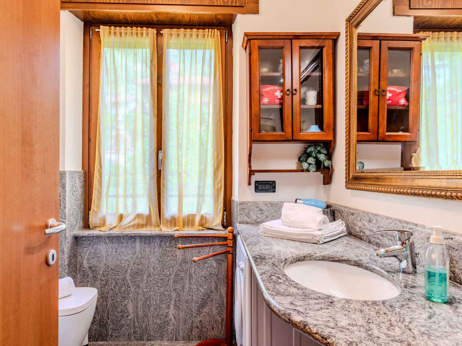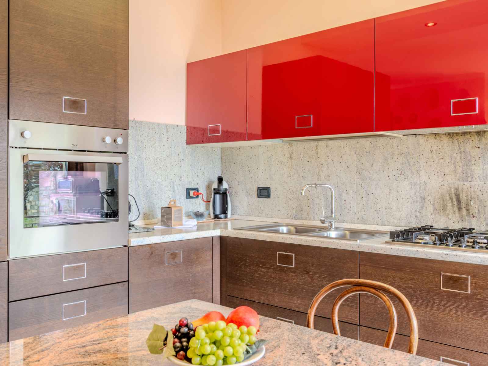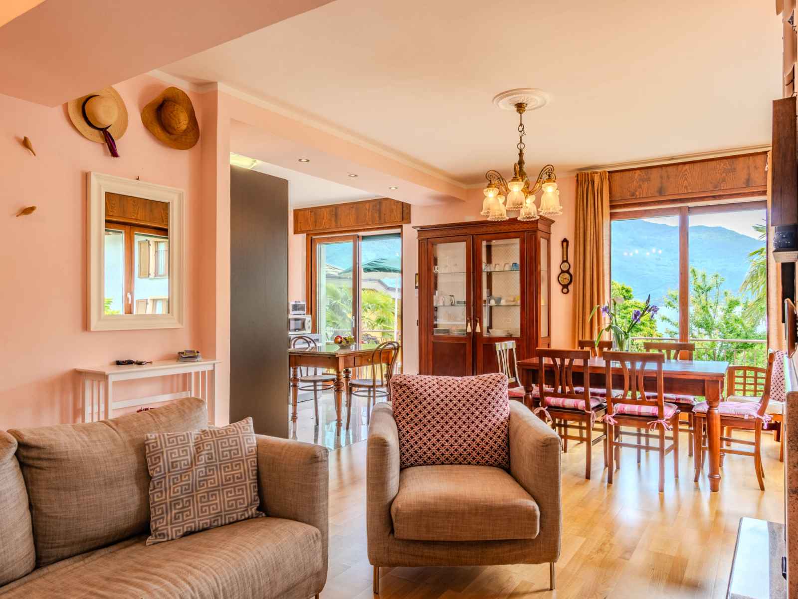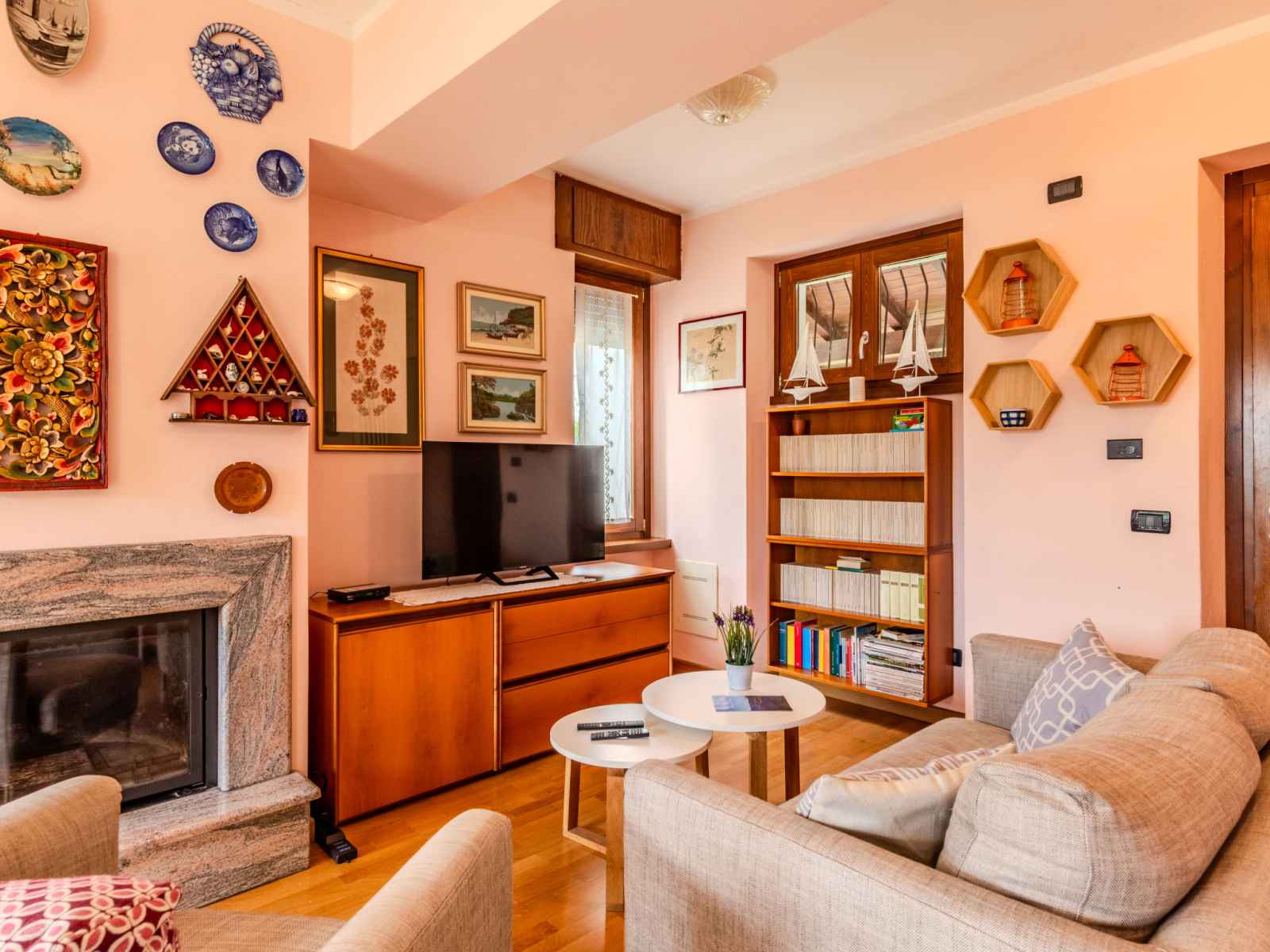 "bruna", apt 3 pièces 85 m2 au 1er étage. séjour/salle à manger avec porte coulissante avec cheminée (uniquement à titre de décoration), tv. sortie sur le balcon. 1 chambre avec 2 lits. 1 chambre double. cuisine ouverte (5 plaques de cuisson, four, lave-vaisselle, grille-pain, micro-ondes, cafetière électrique). sortie sur le balcon.