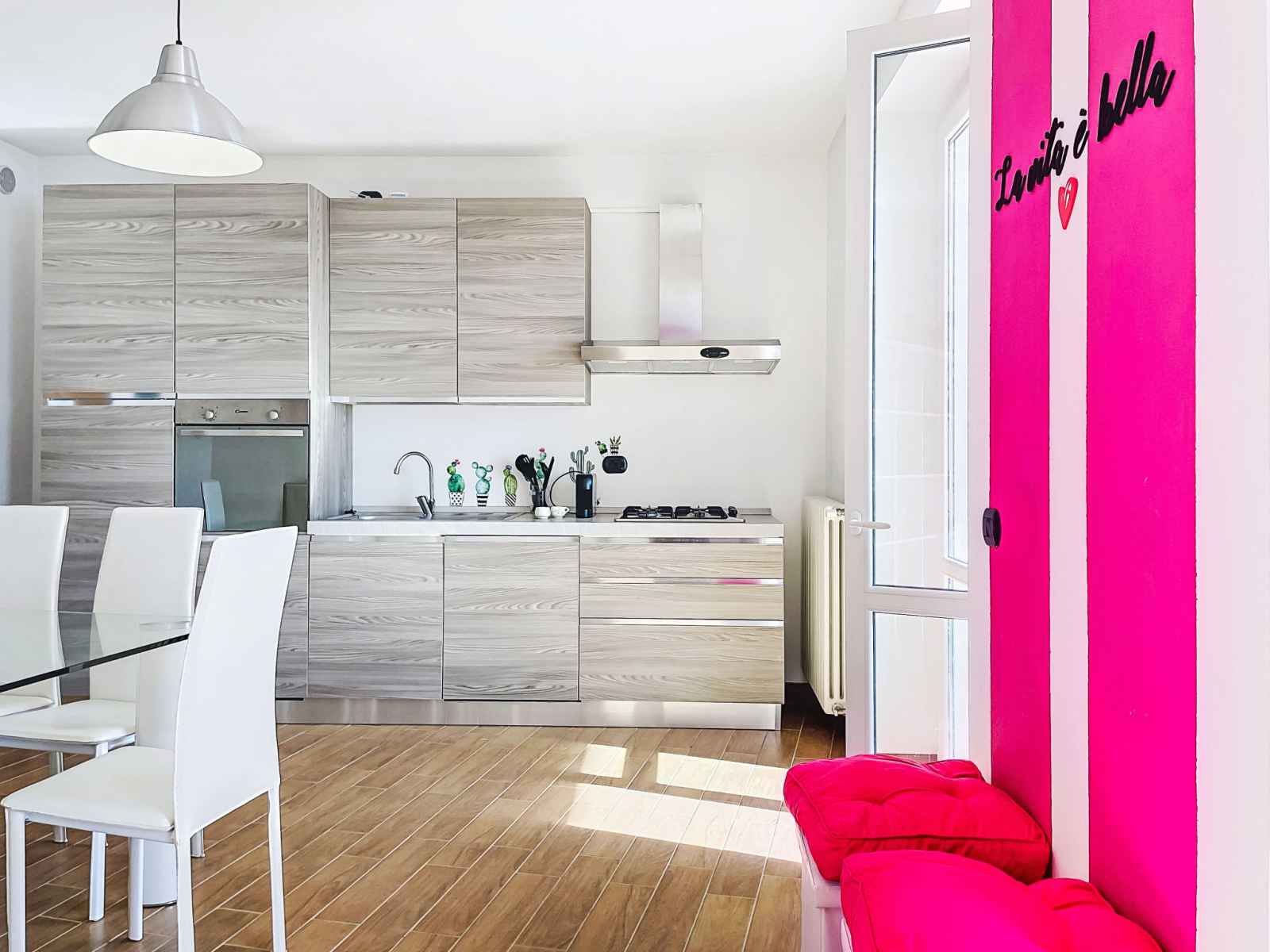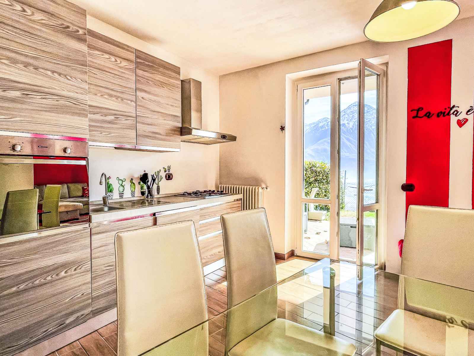 "libellula", apt 3 pièces 60 m2, rez-de-chaussée surélevé. aménagement confortable: séjour/salle à manger ouvert avec table pour les repas et tv. sortie sur le jardin. 1 chambre avec 1 lit double (160 cm). sortie sur le jardin. 1 chambre avec 1 lit double. cuisine ouverte (four, lave-vaisselle, 4 feux, grille-pain, bouilloire électrique,